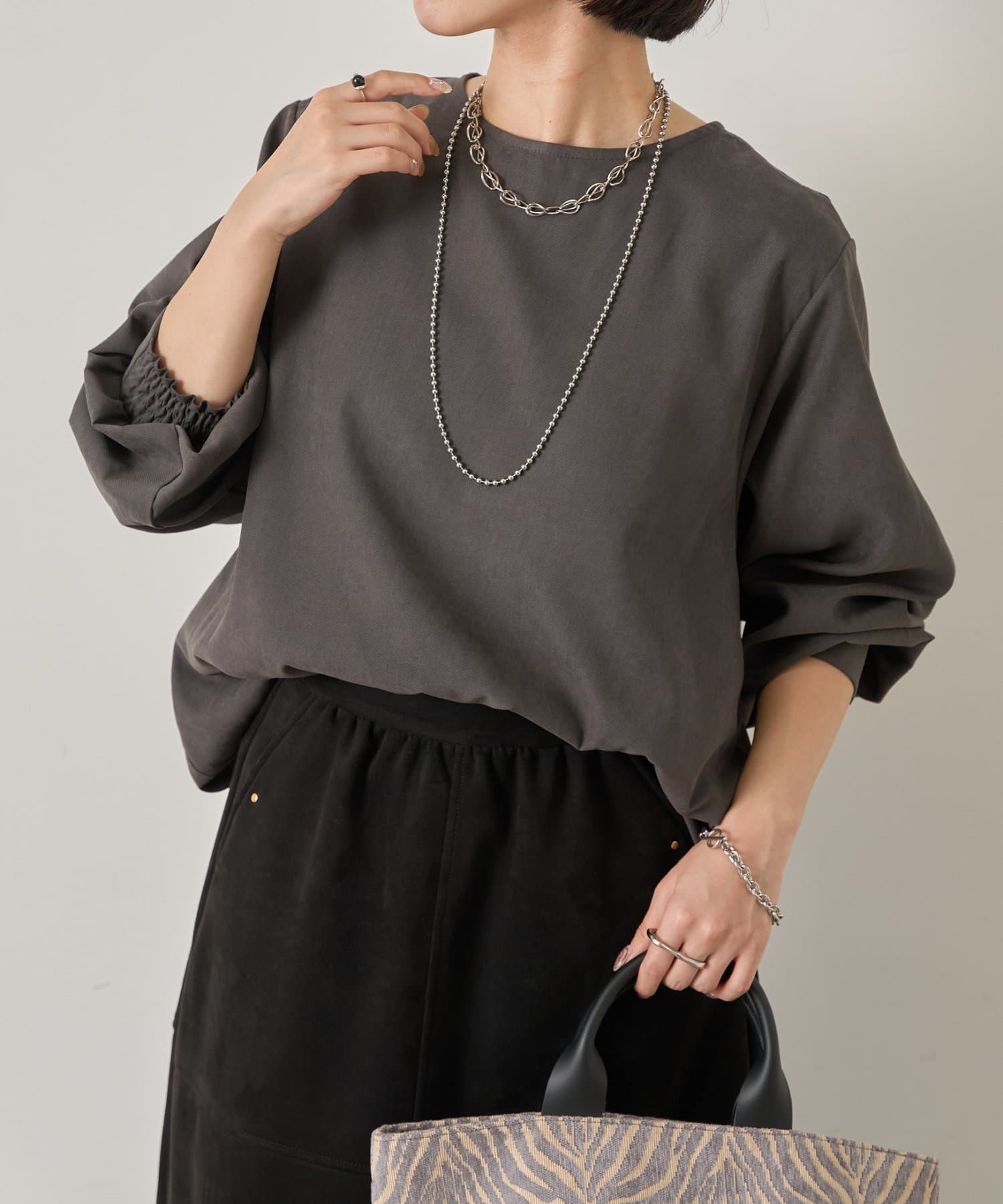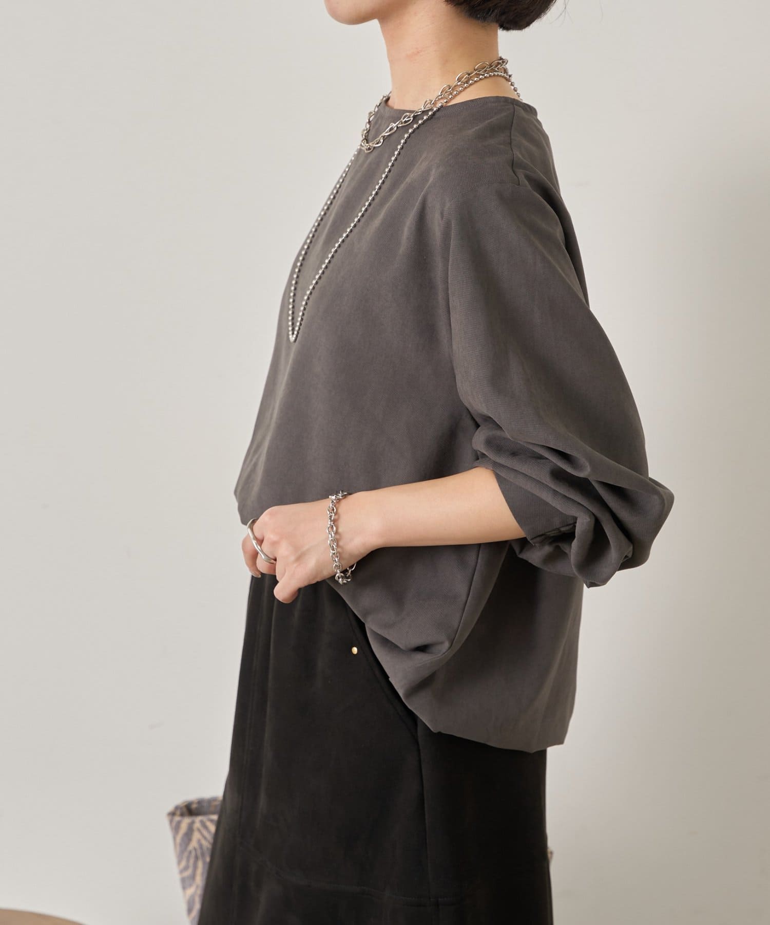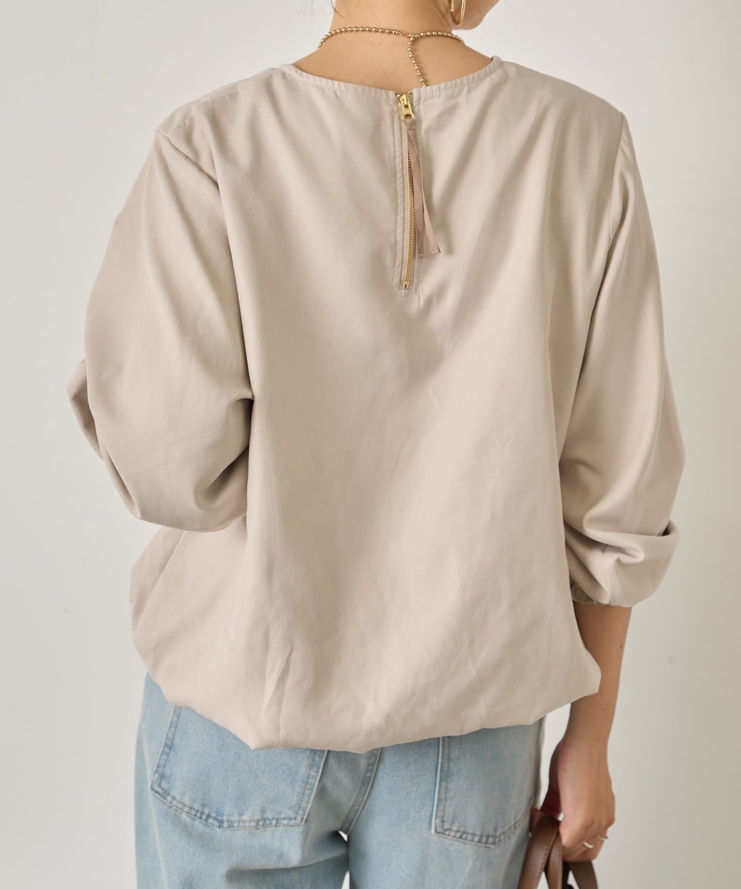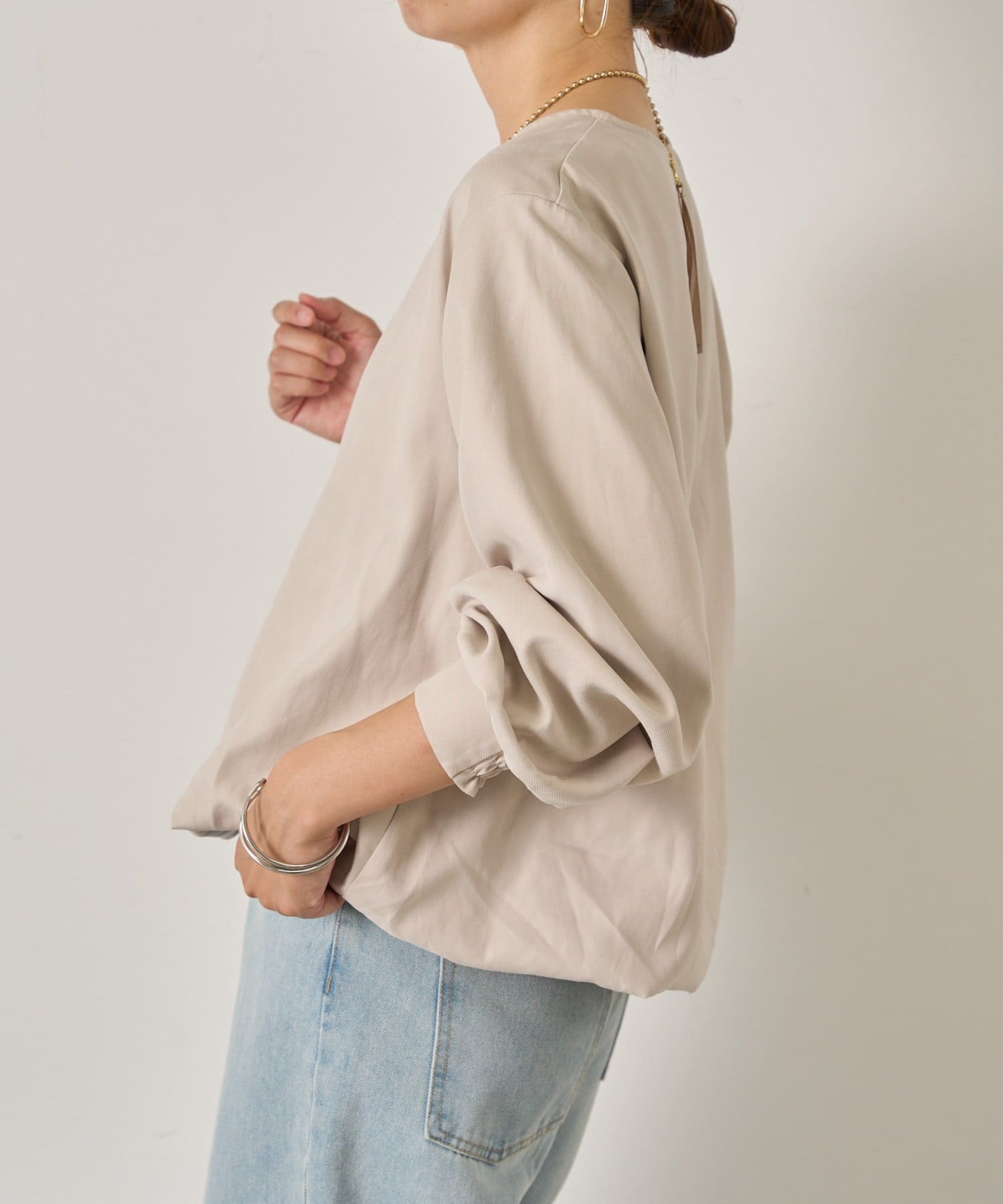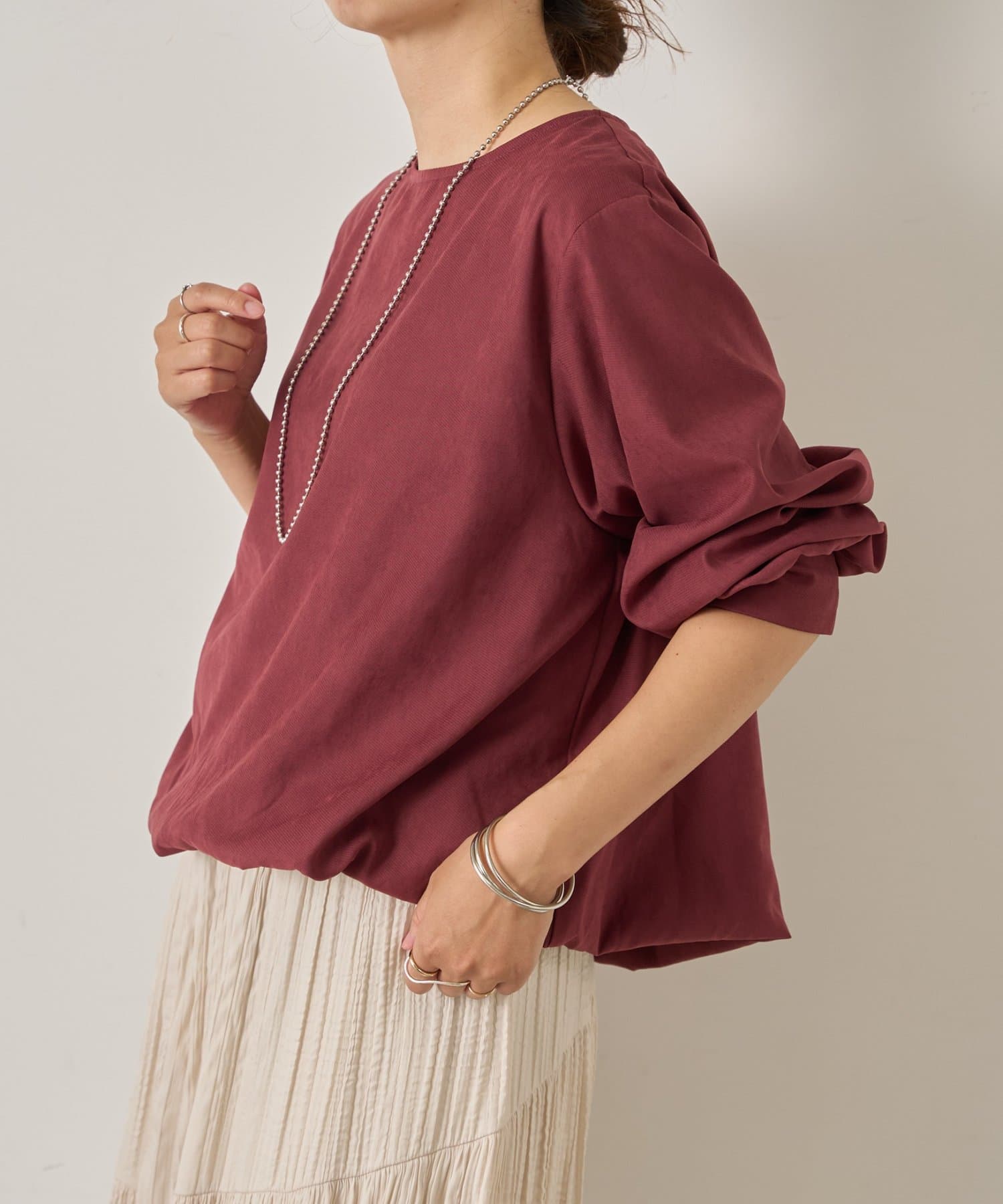 ・柔らかなピーチスキン素材を使用したふんわりとしたシルエットのバルーントップス。