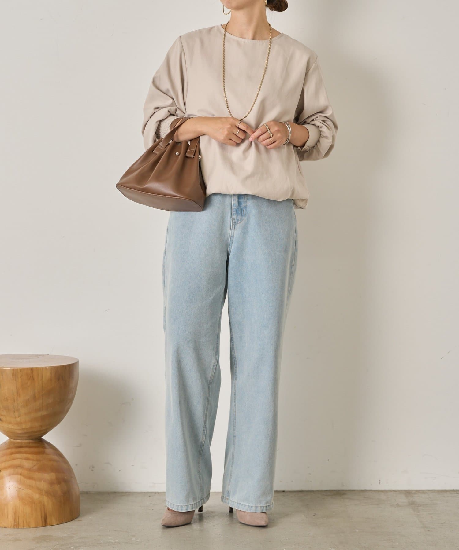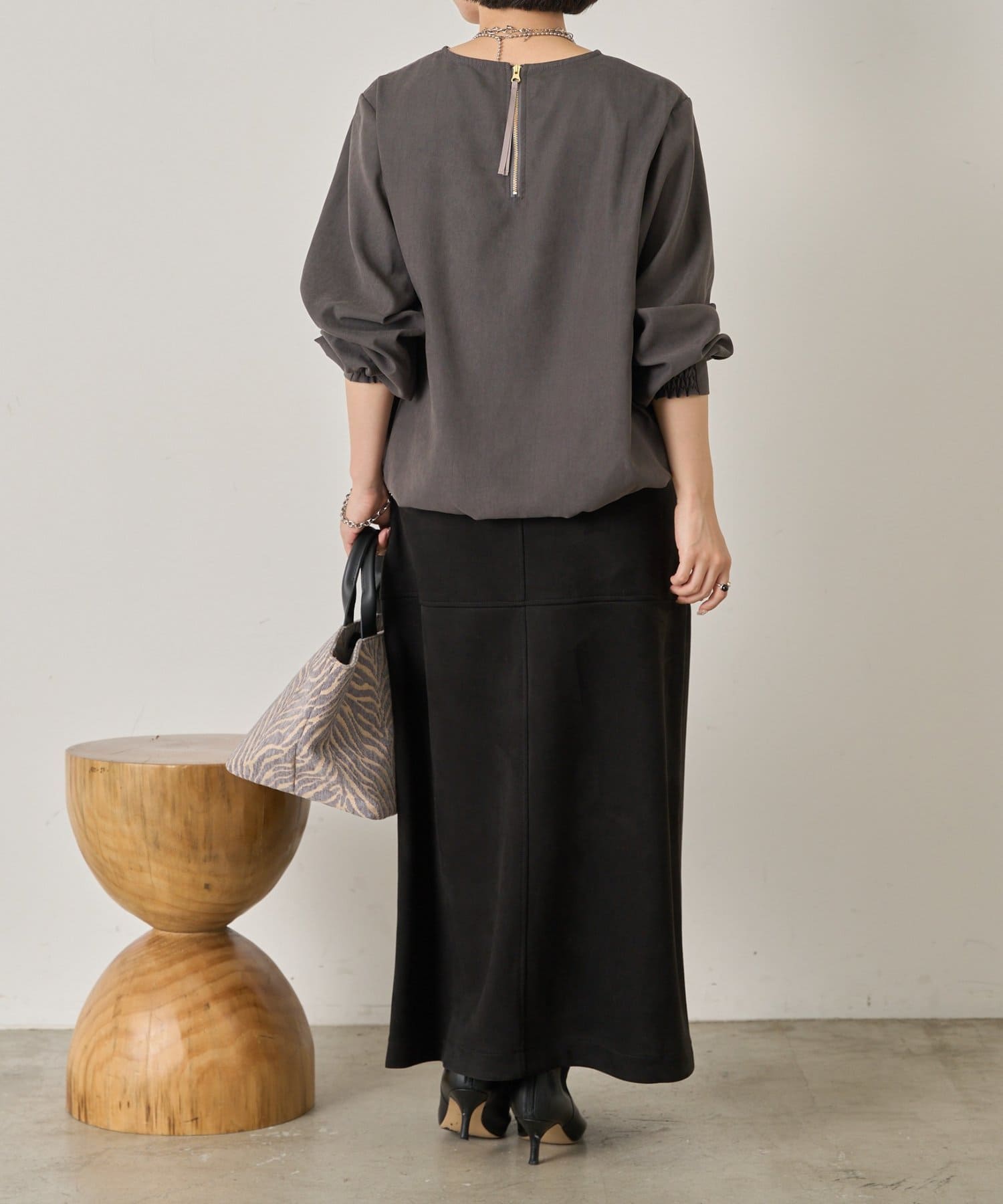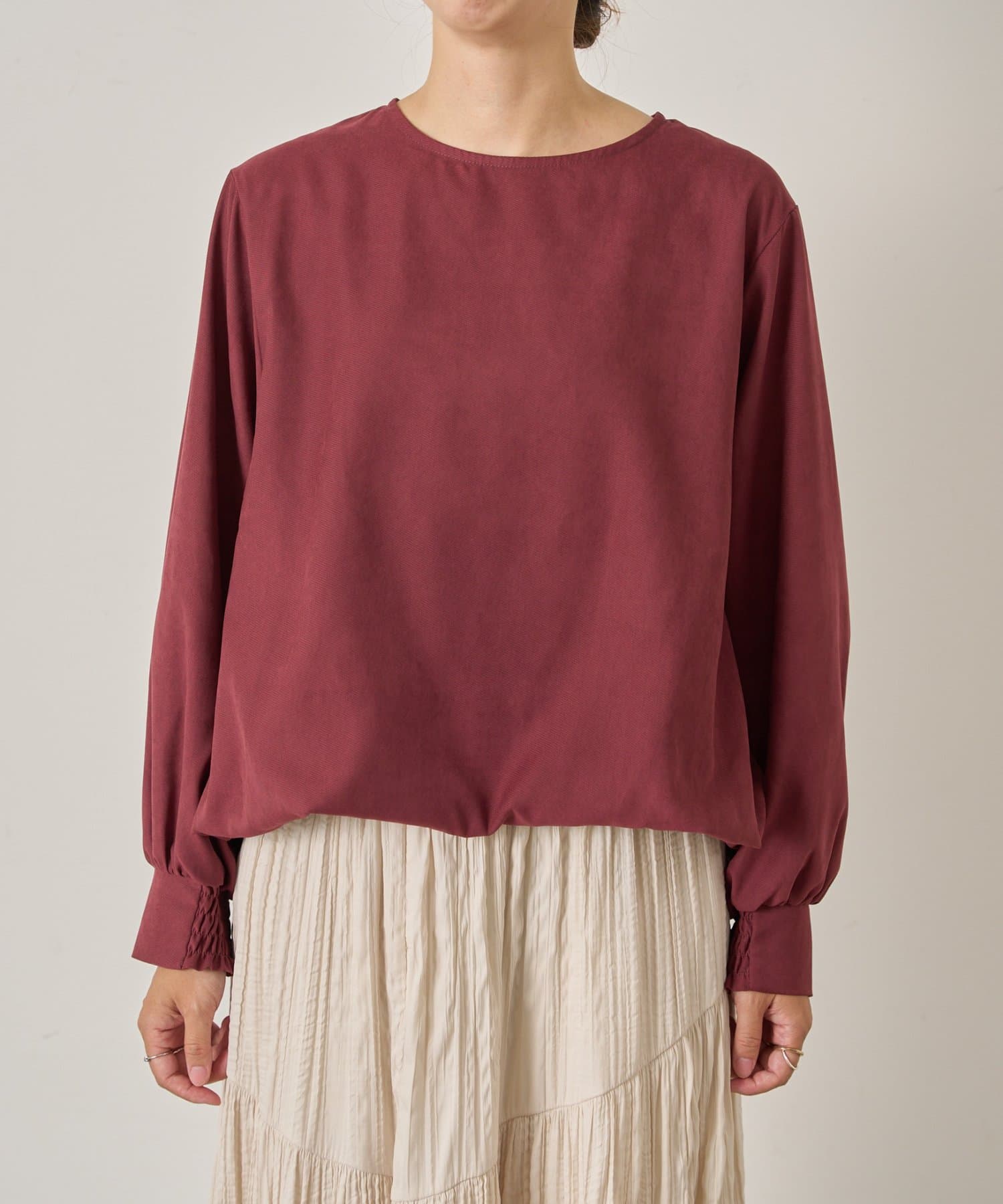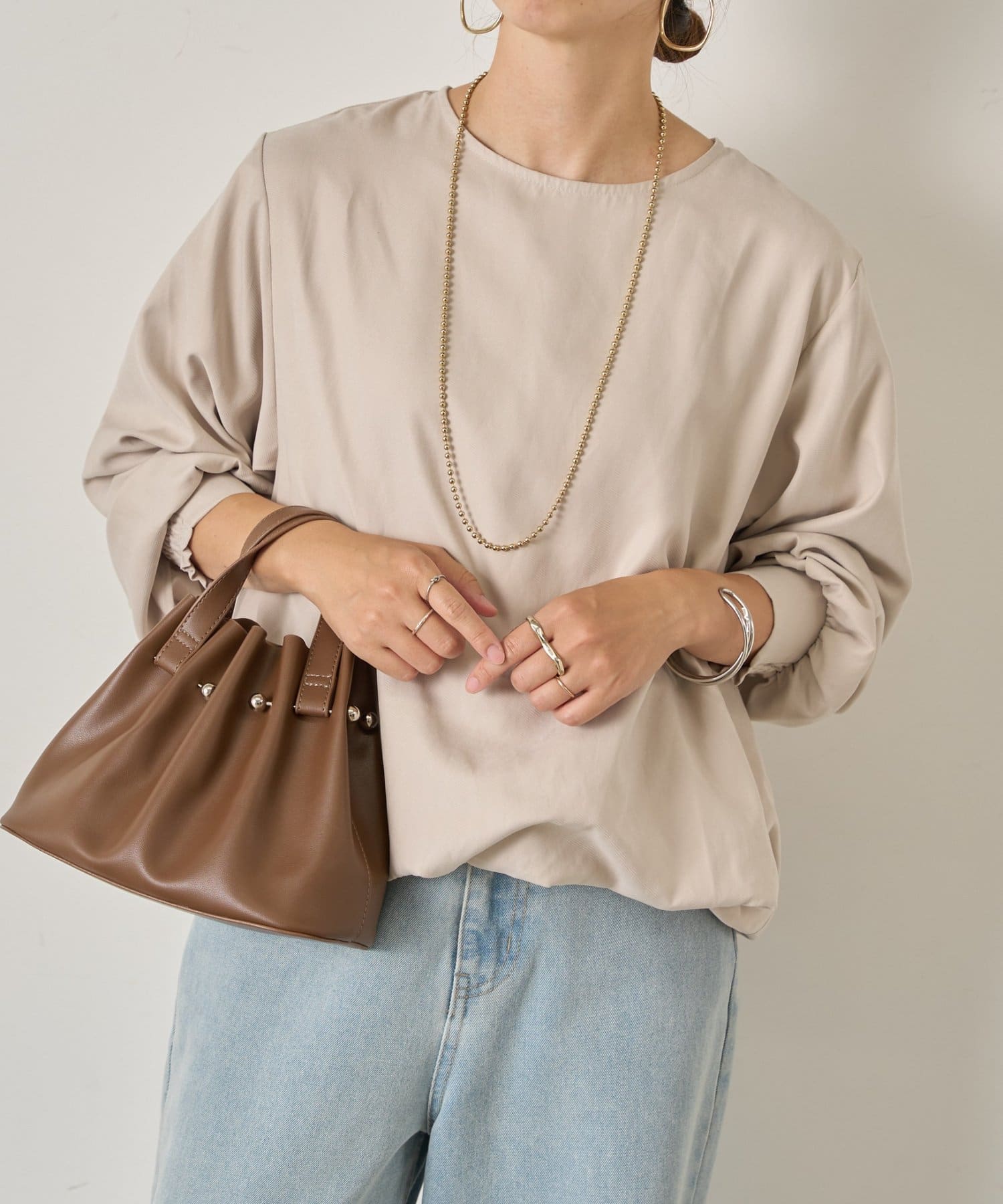 ・柔らかなピーチスキン素材を使用したふんわりとしたシルエットのバルーントップス。