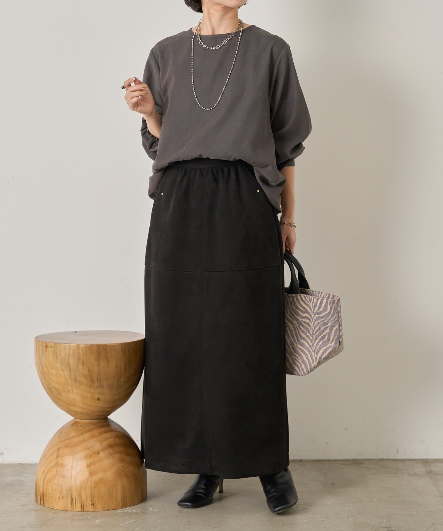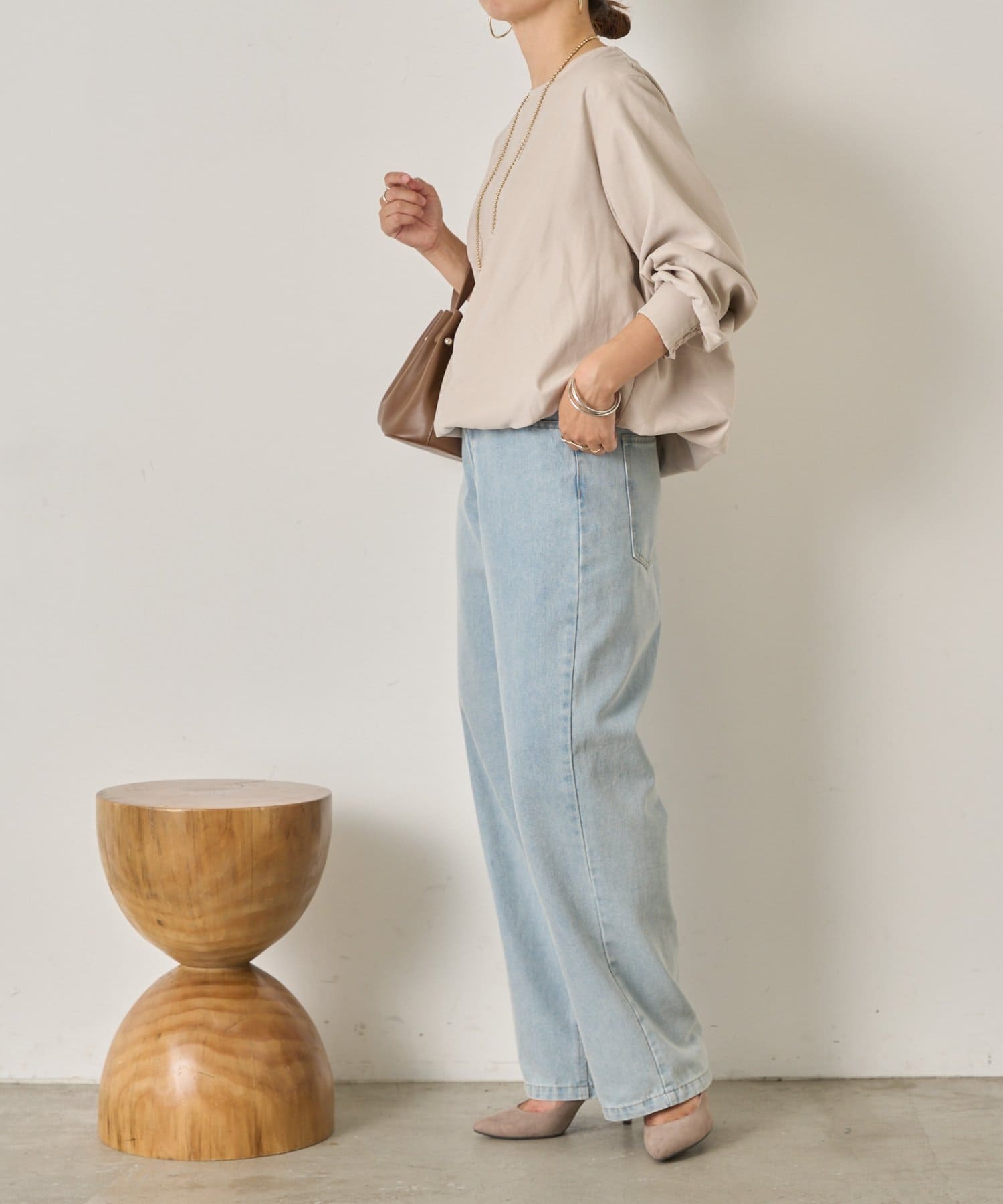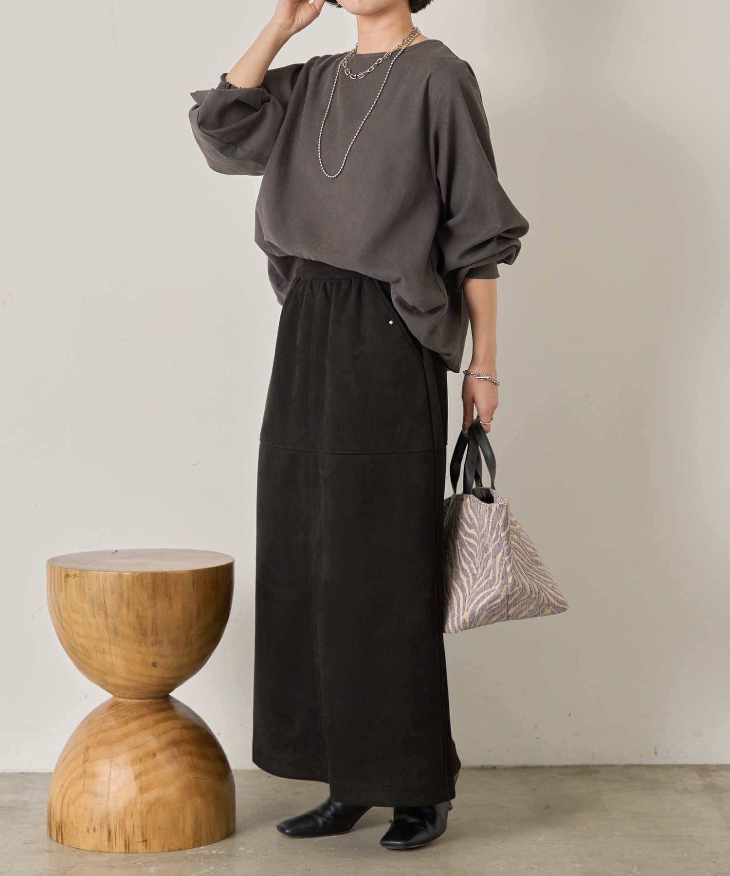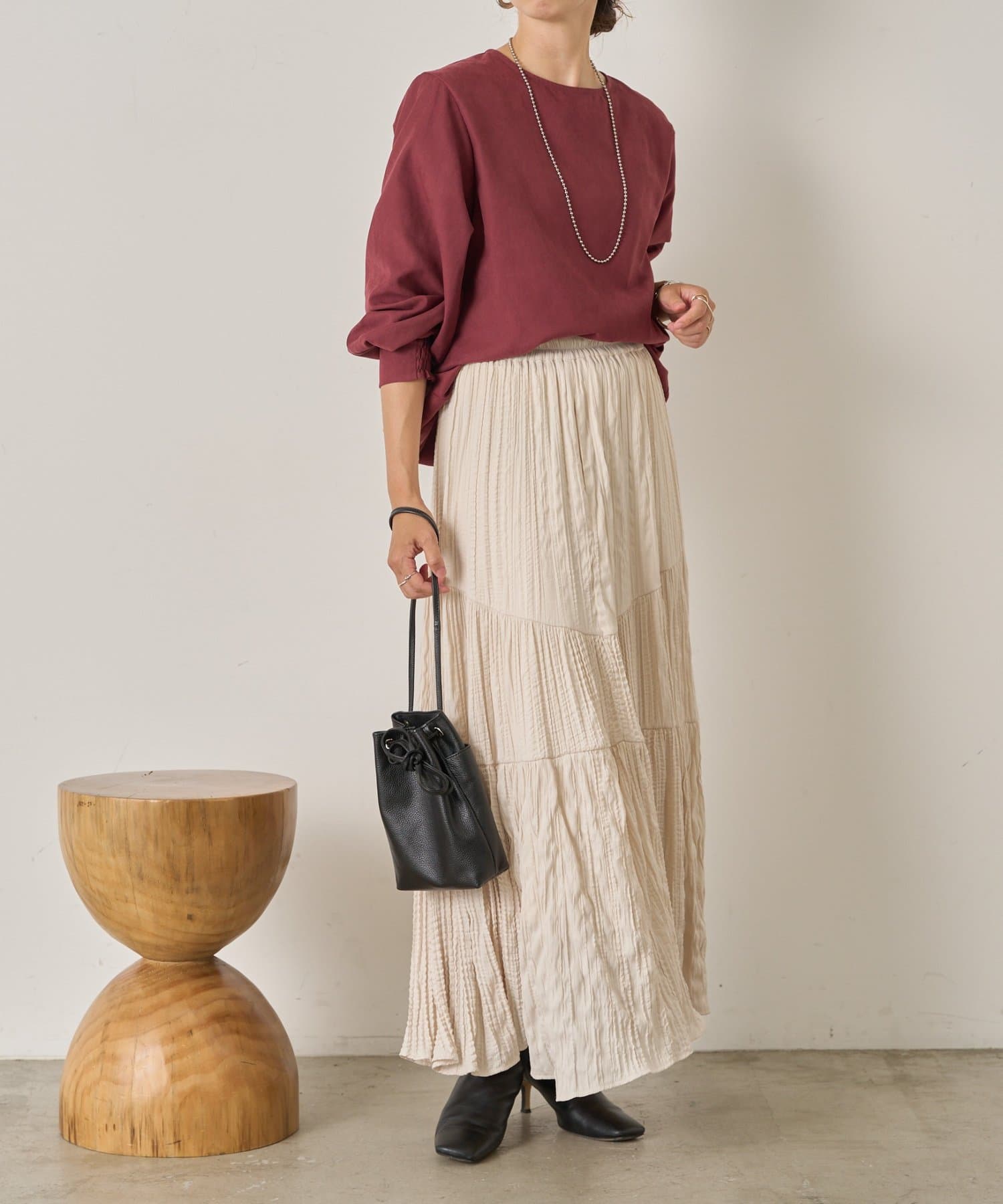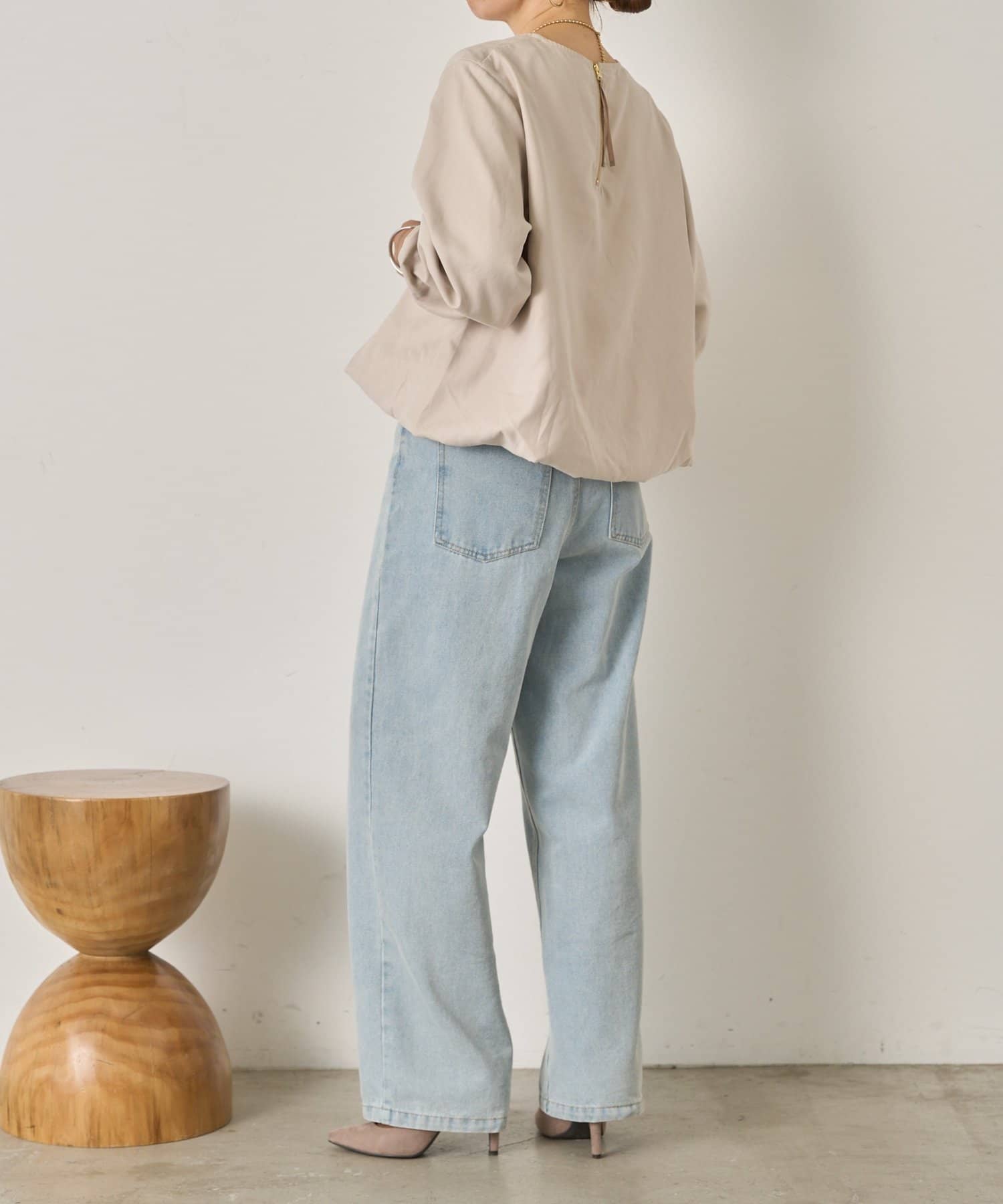 ・柔らかなピーチスキン素材を使用したふんわりとしたシルエットのバルーントップス。