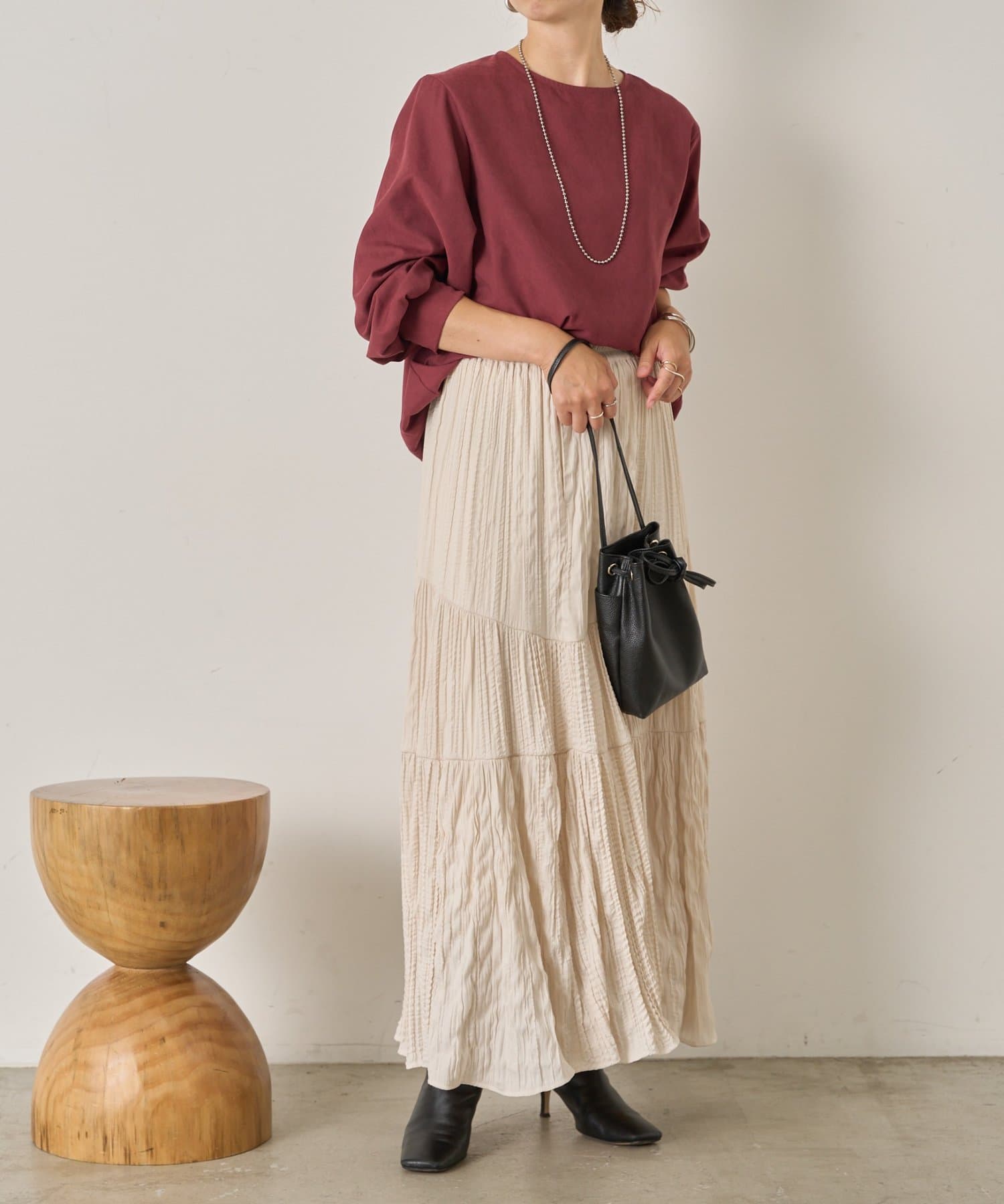 ・大人カジュアルなコーデからスカートで合わせてキレイめなコーデにも幅広く着回しの効くアイテムです。