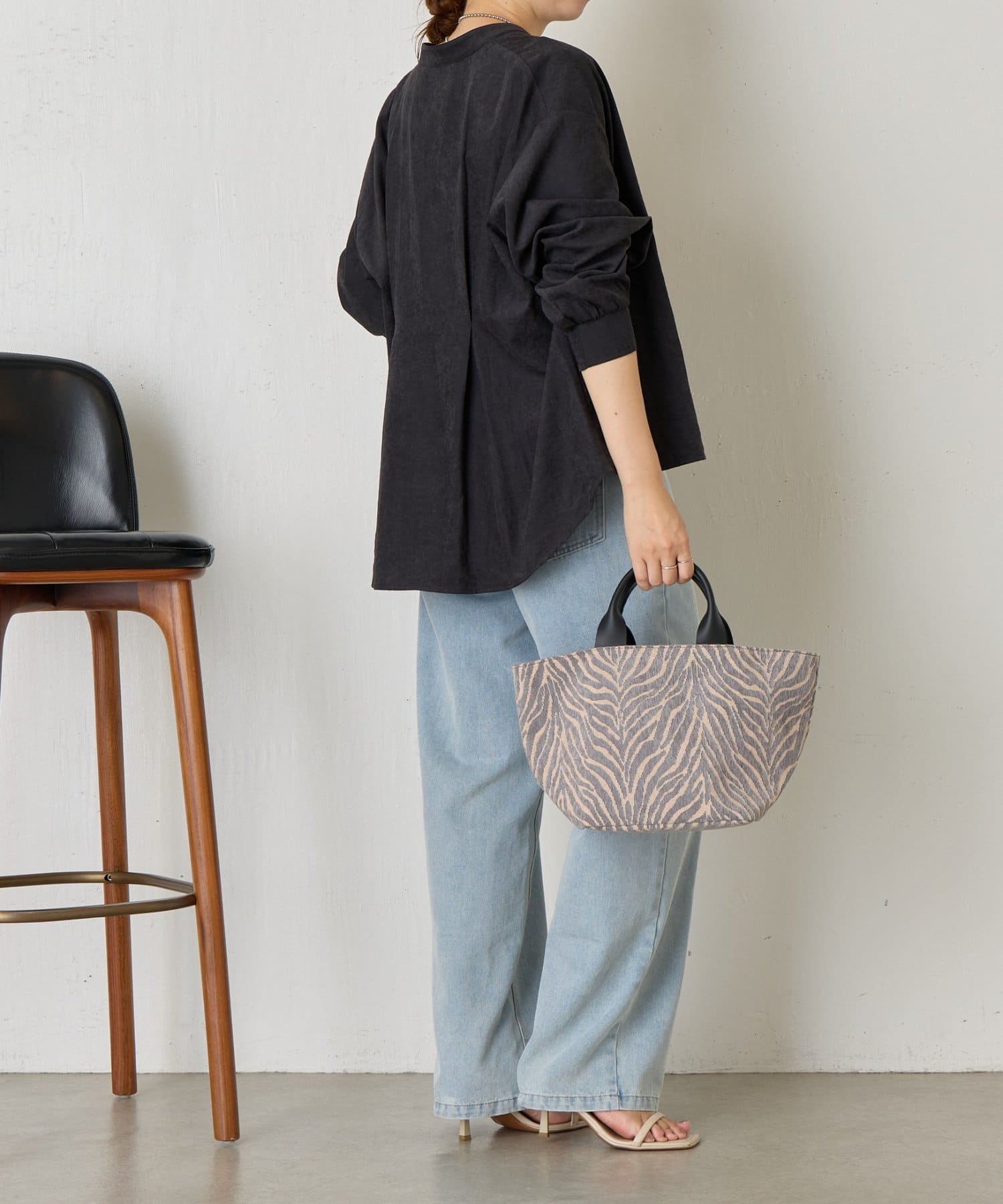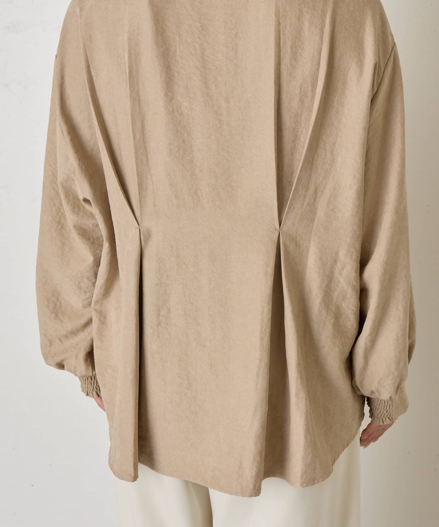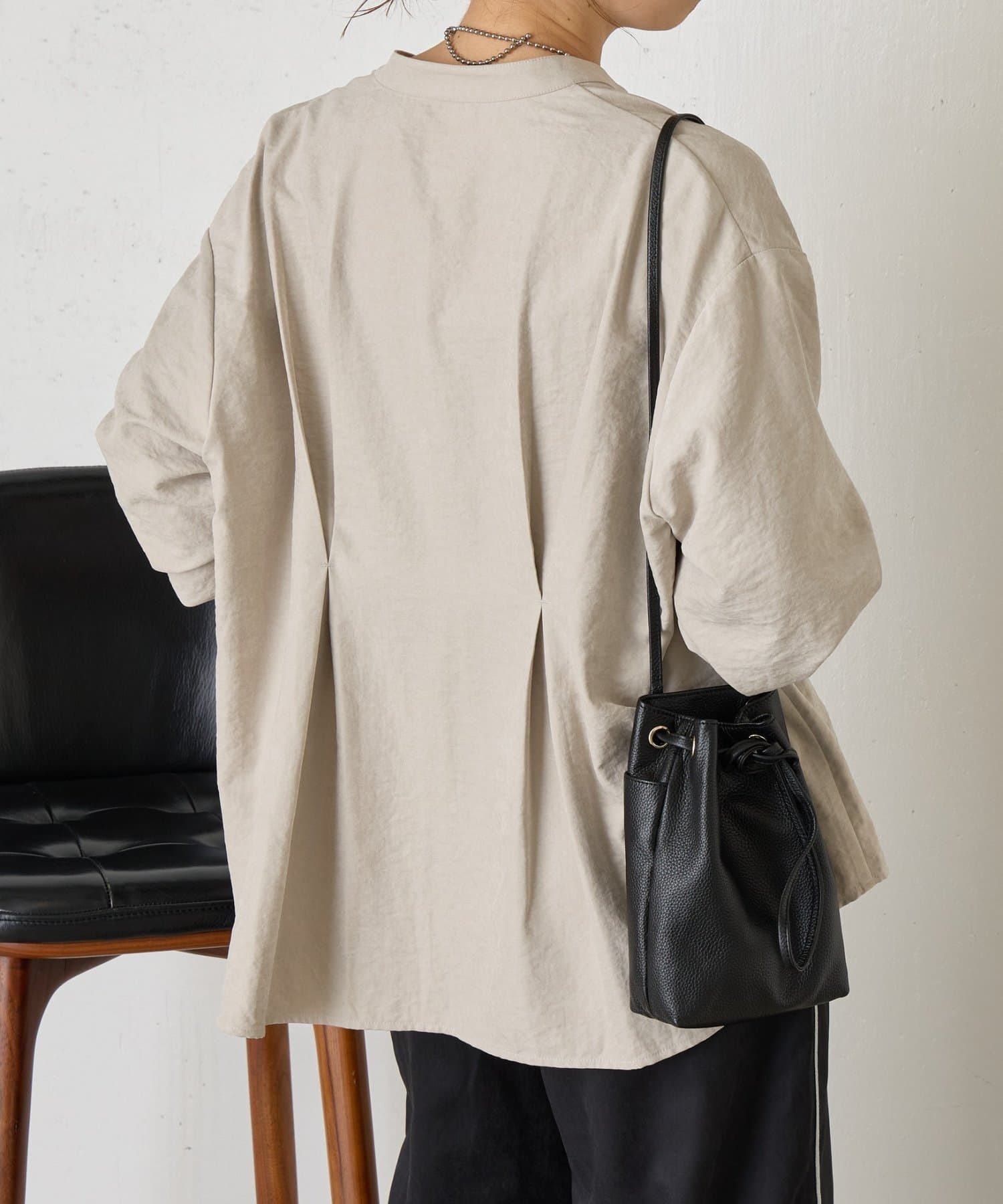 ・バックスタイルにはタックが施されており、後ろ姿にも立体感と動きをプラス。