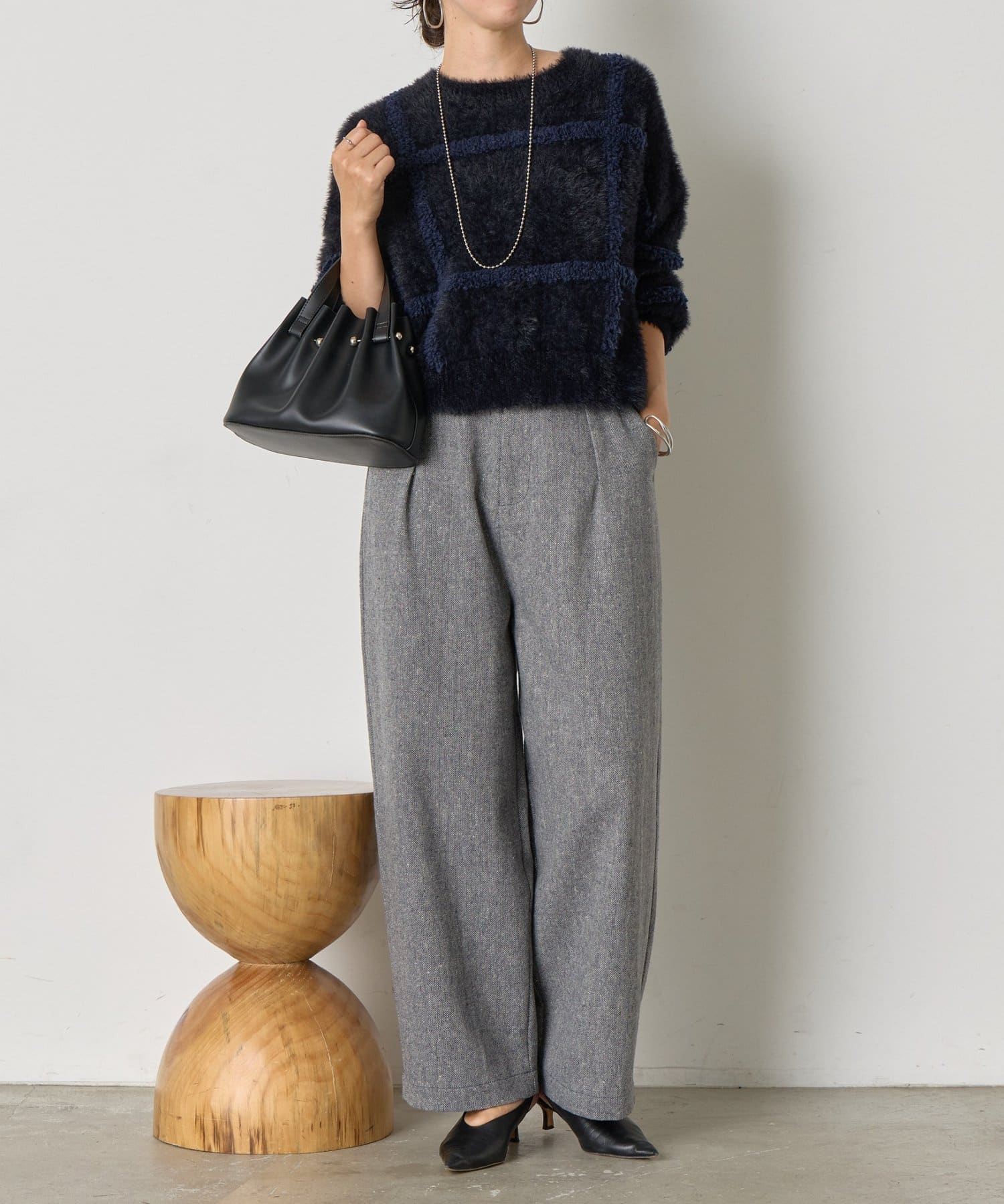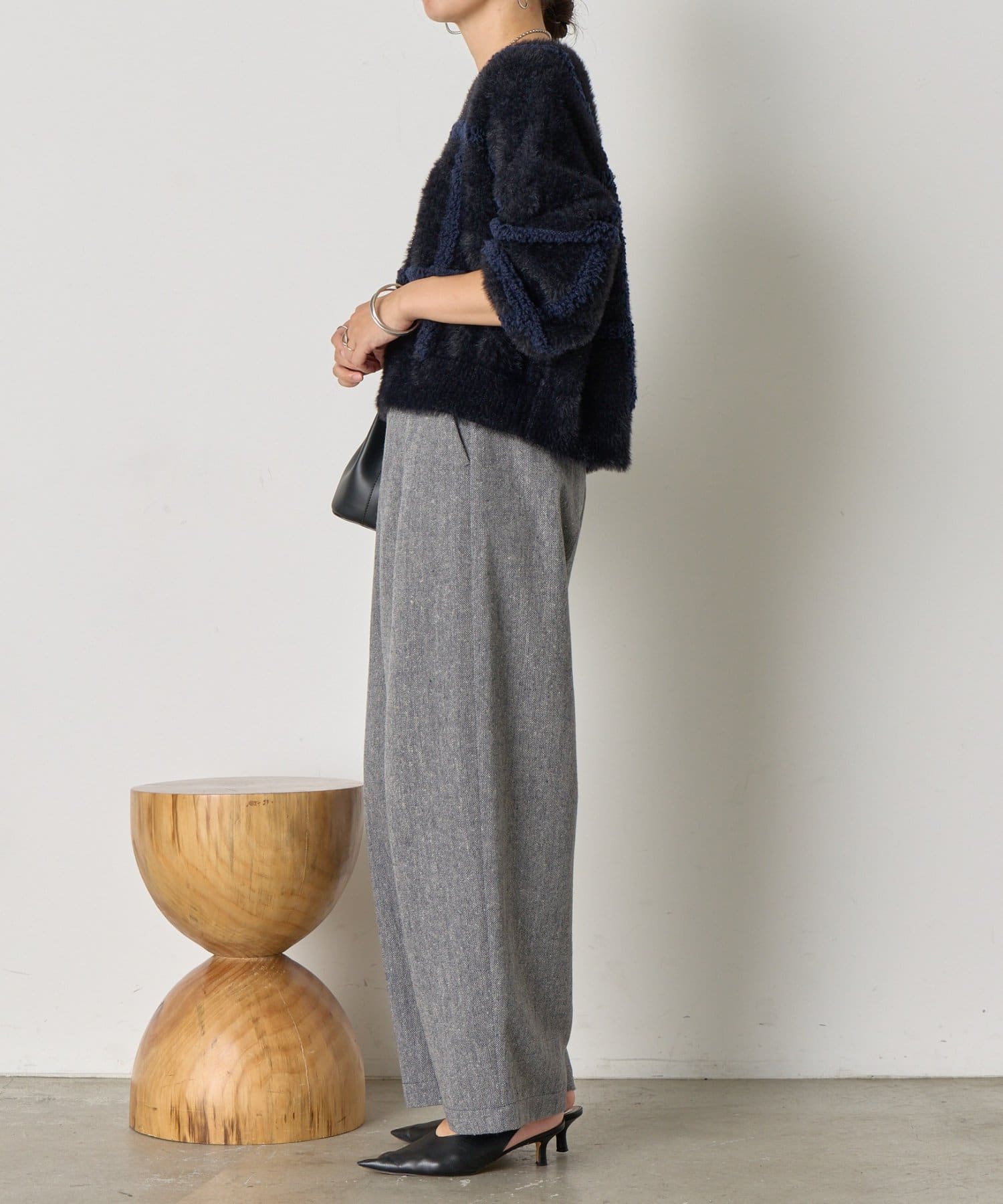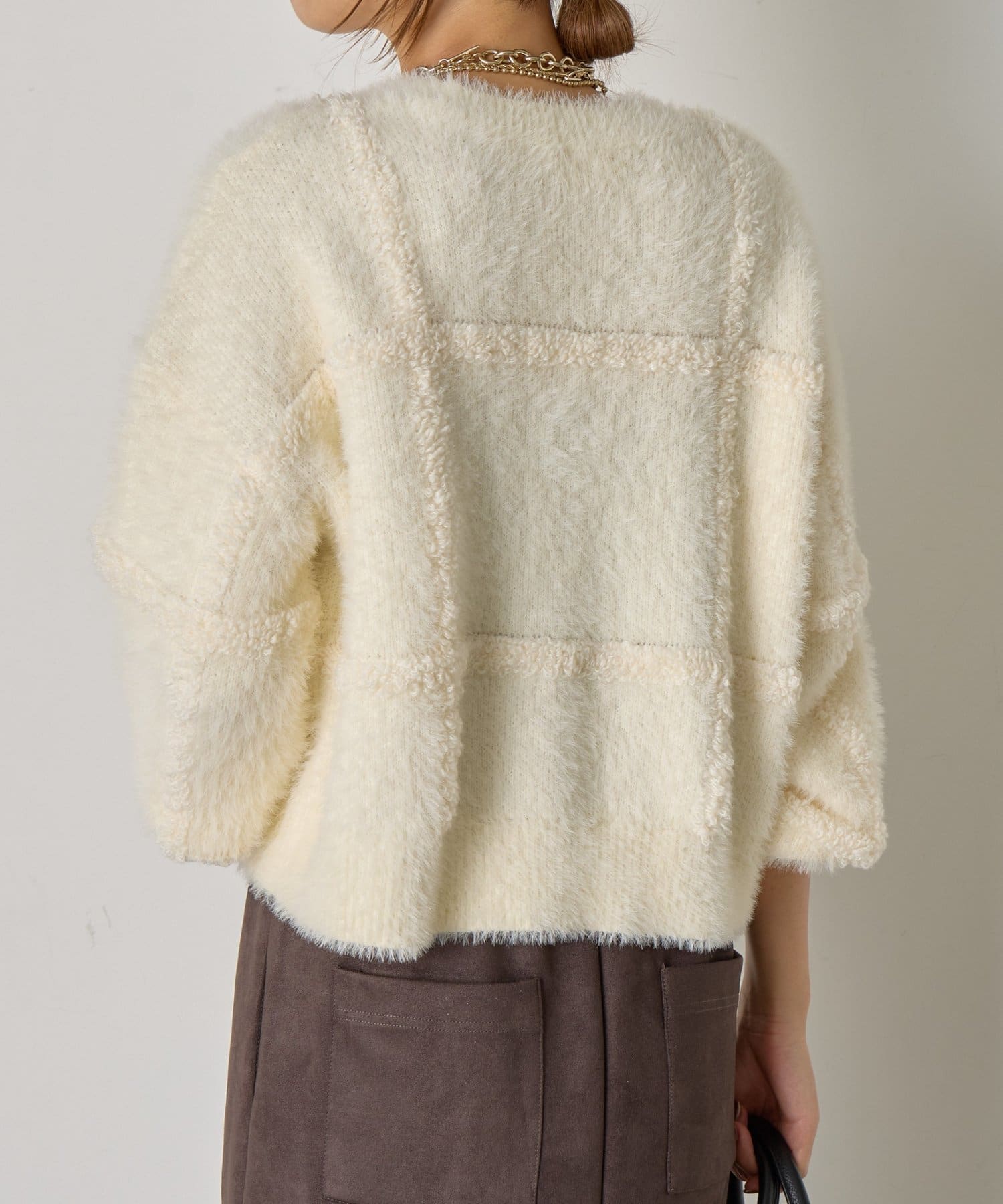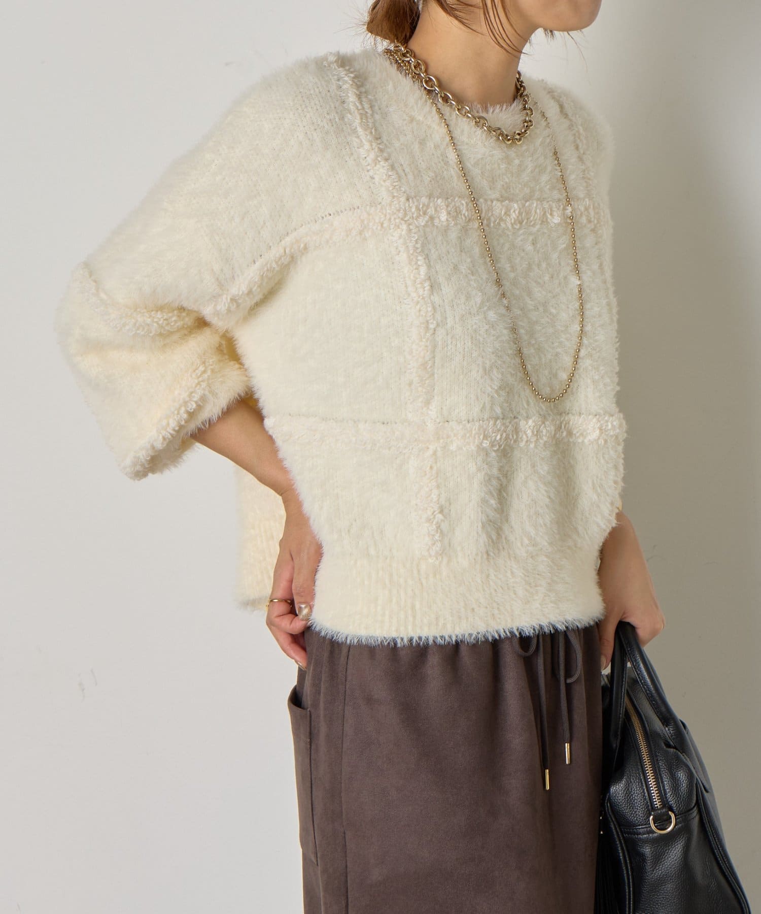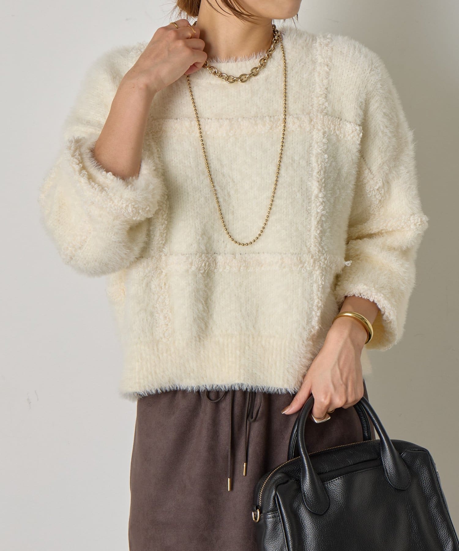 ・ふわっとする毛足のシャギー素材が存在感があり、インパクトのあるデザイン。