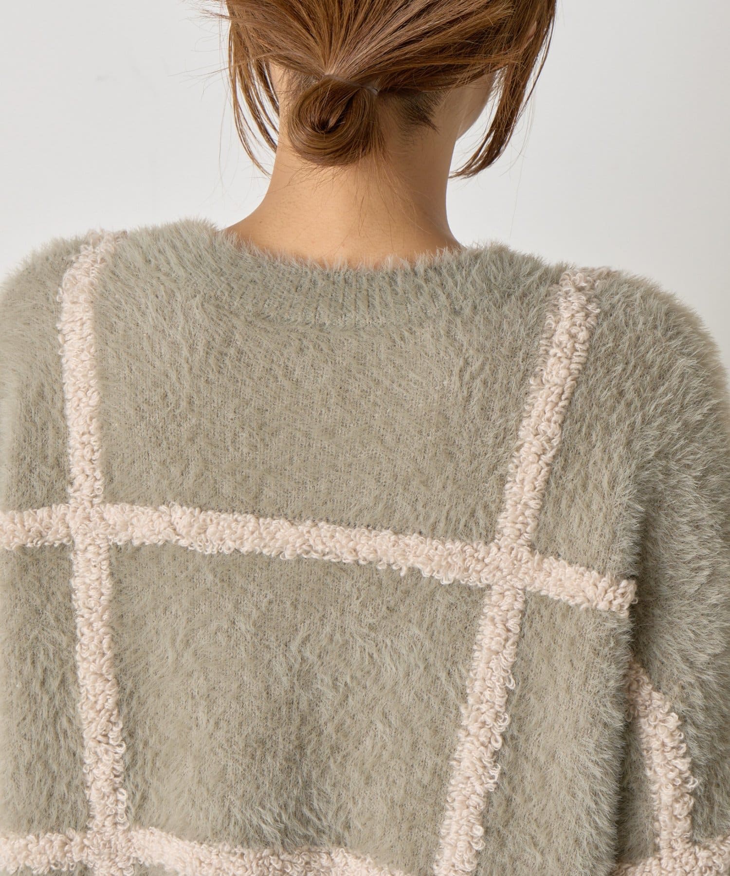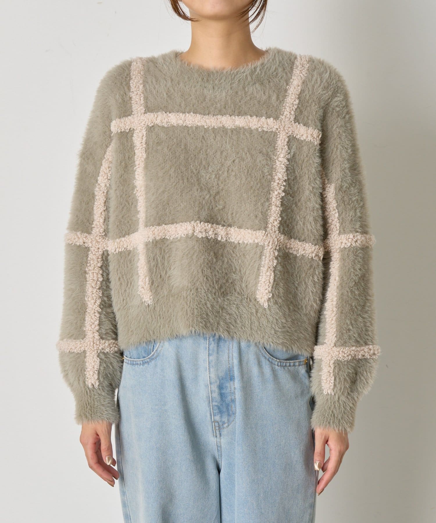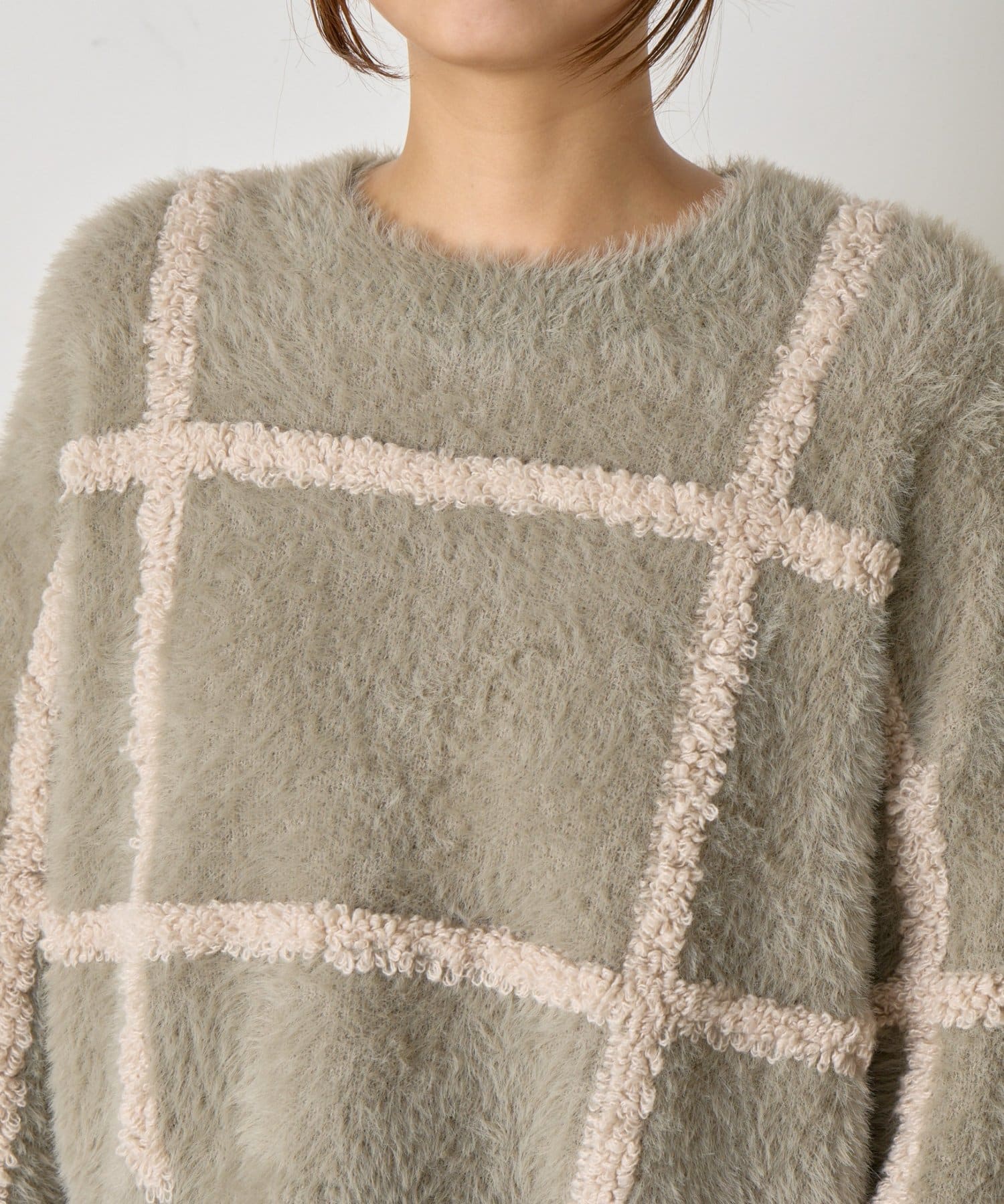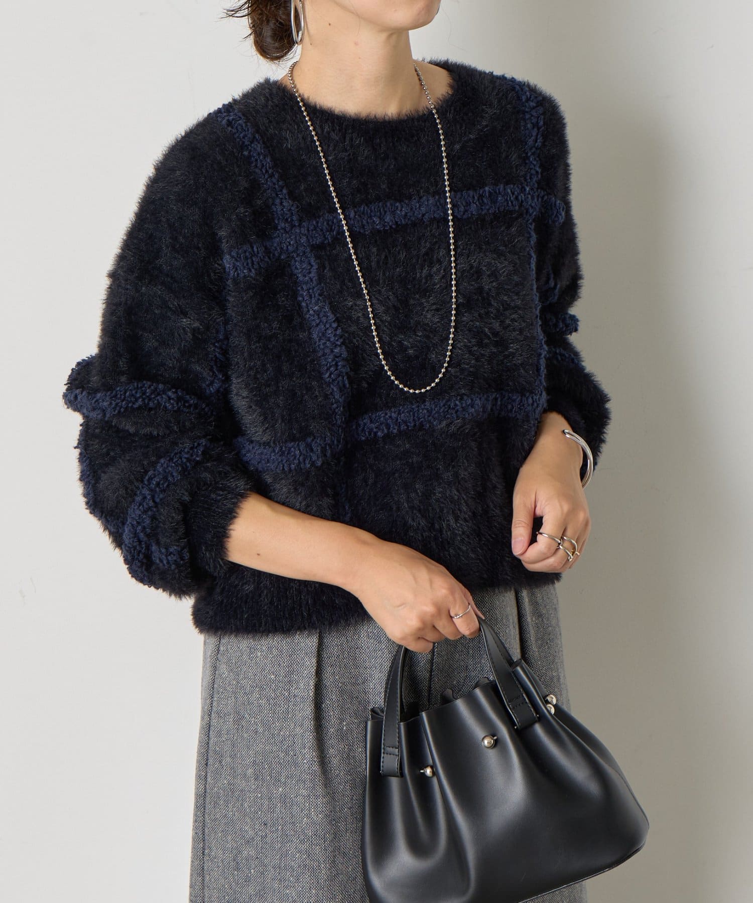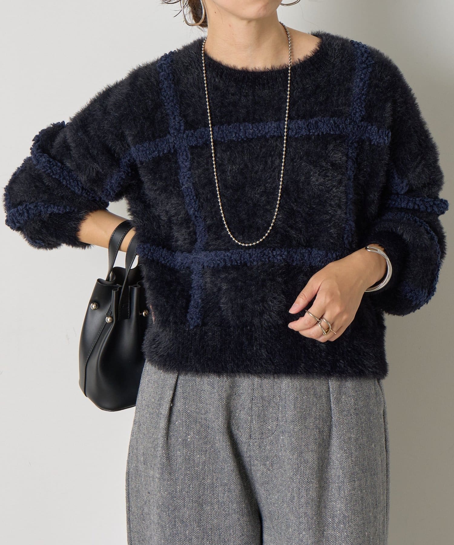 ・目を惹くチェック柄デザインがトレンド感のあるニット。