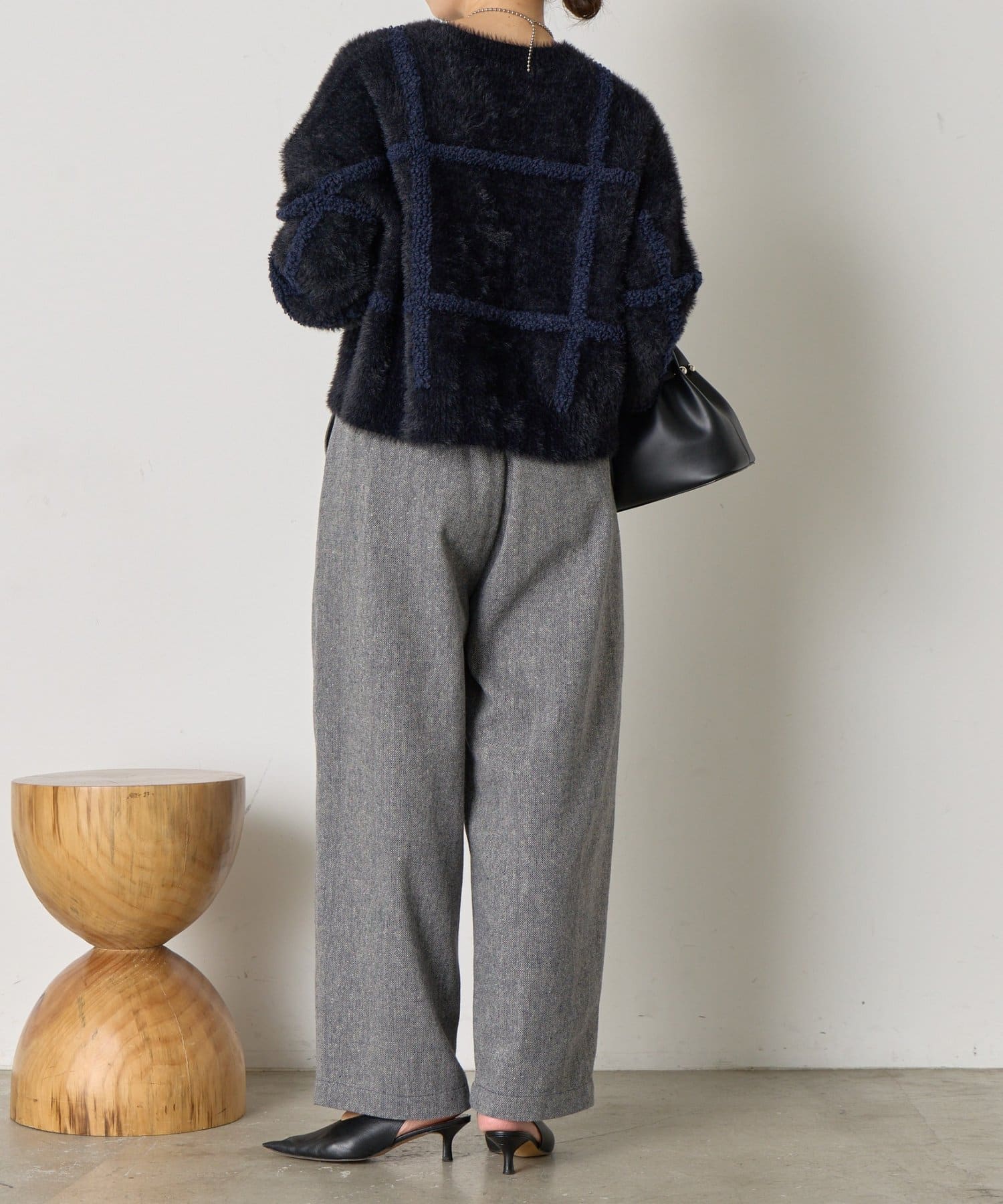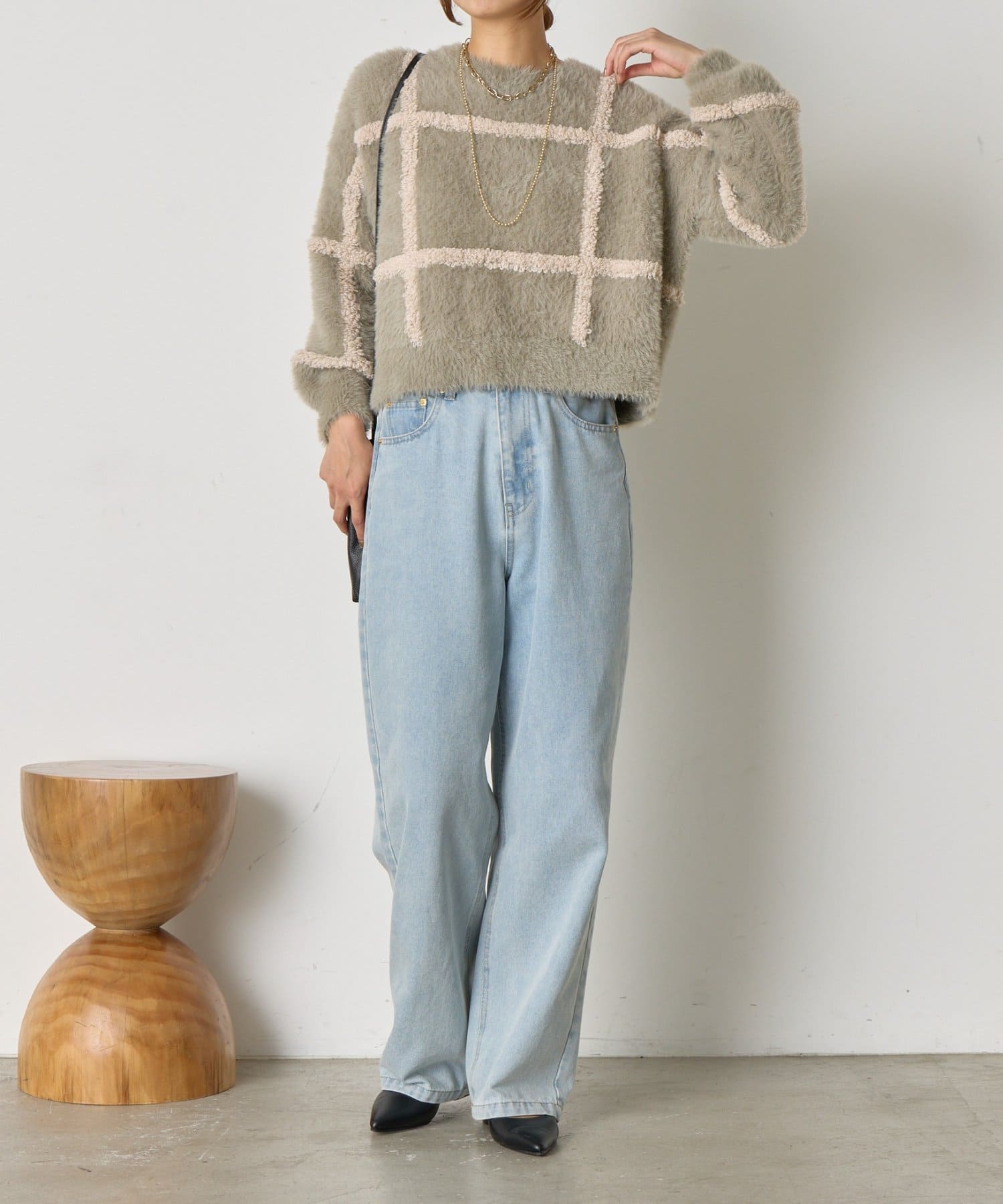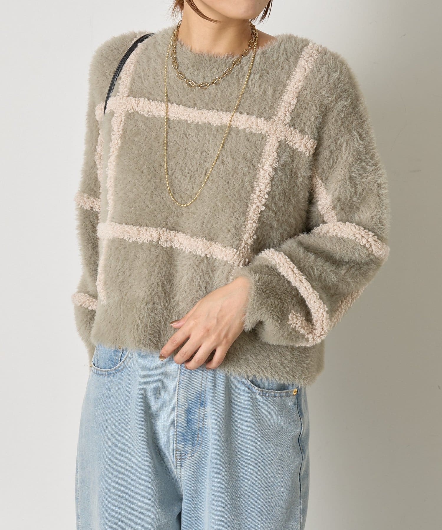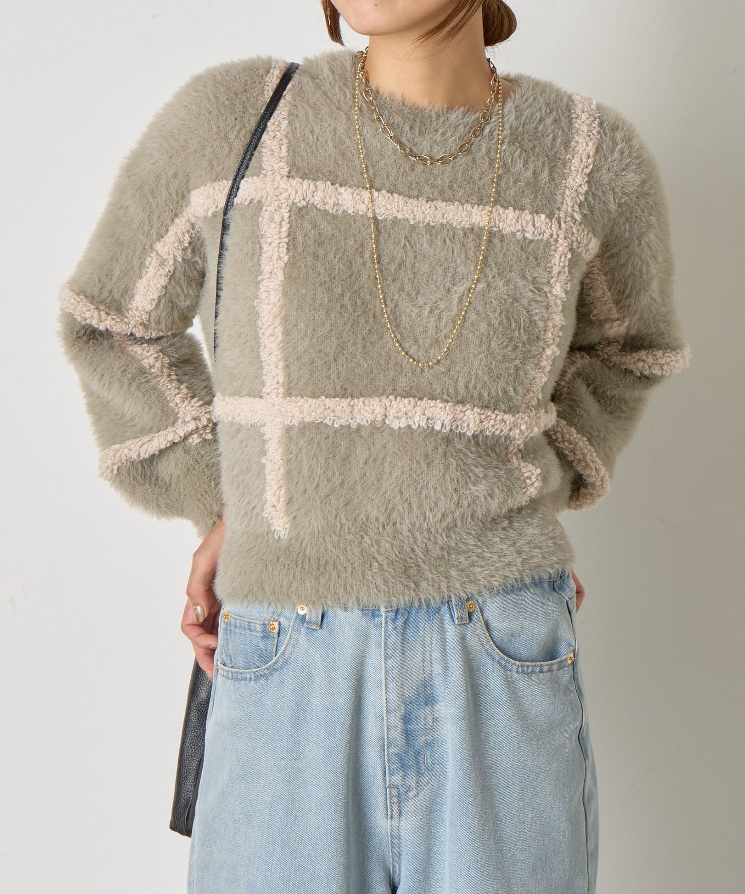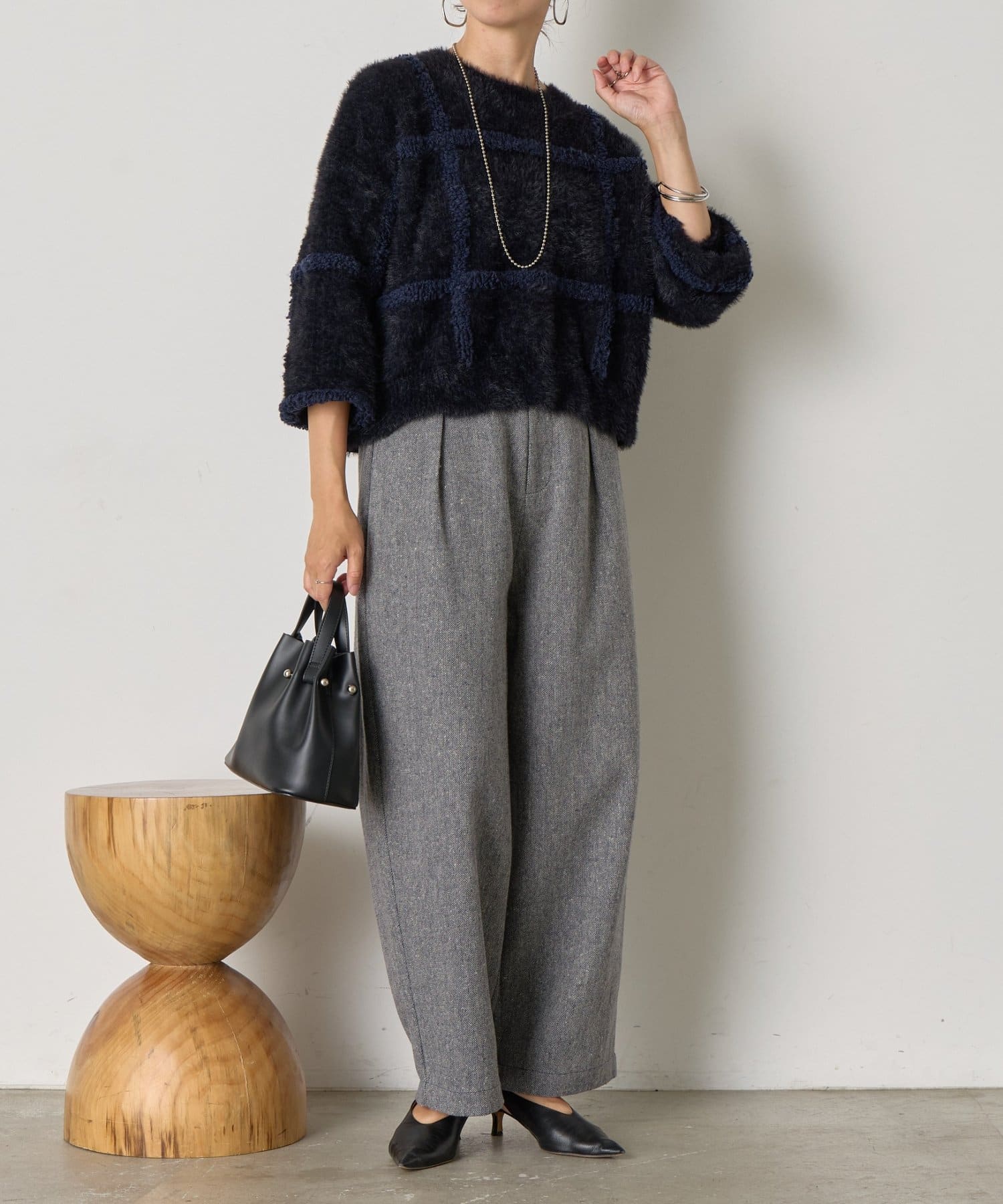 ・目を惹くチェック柄デザインがトレンド感のあるニット。