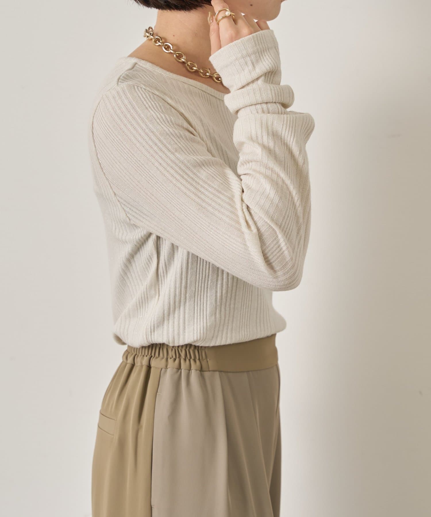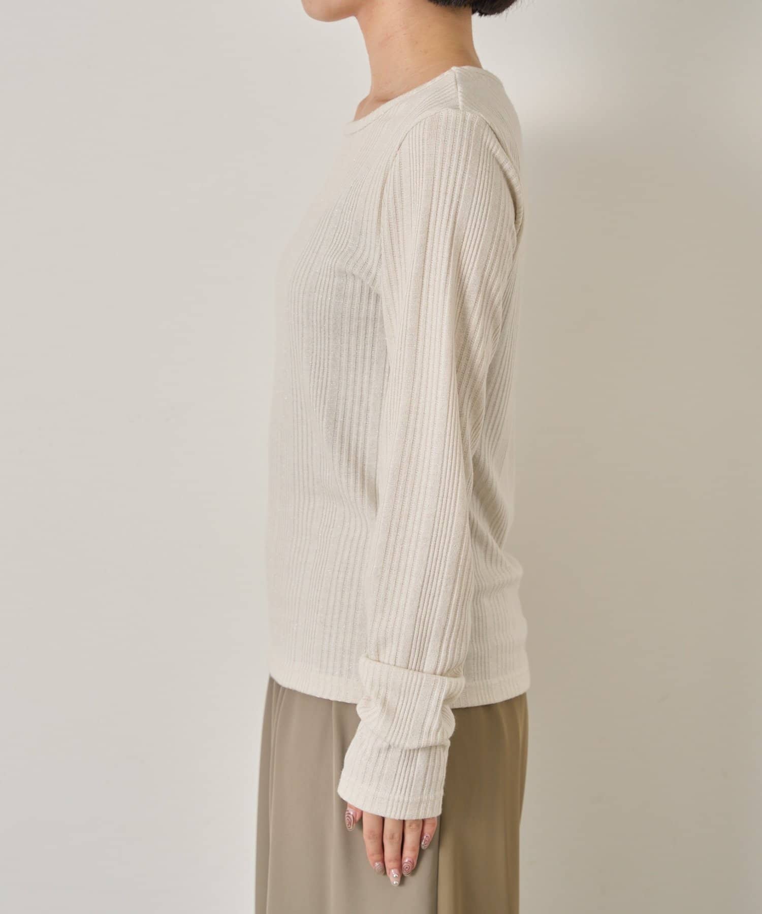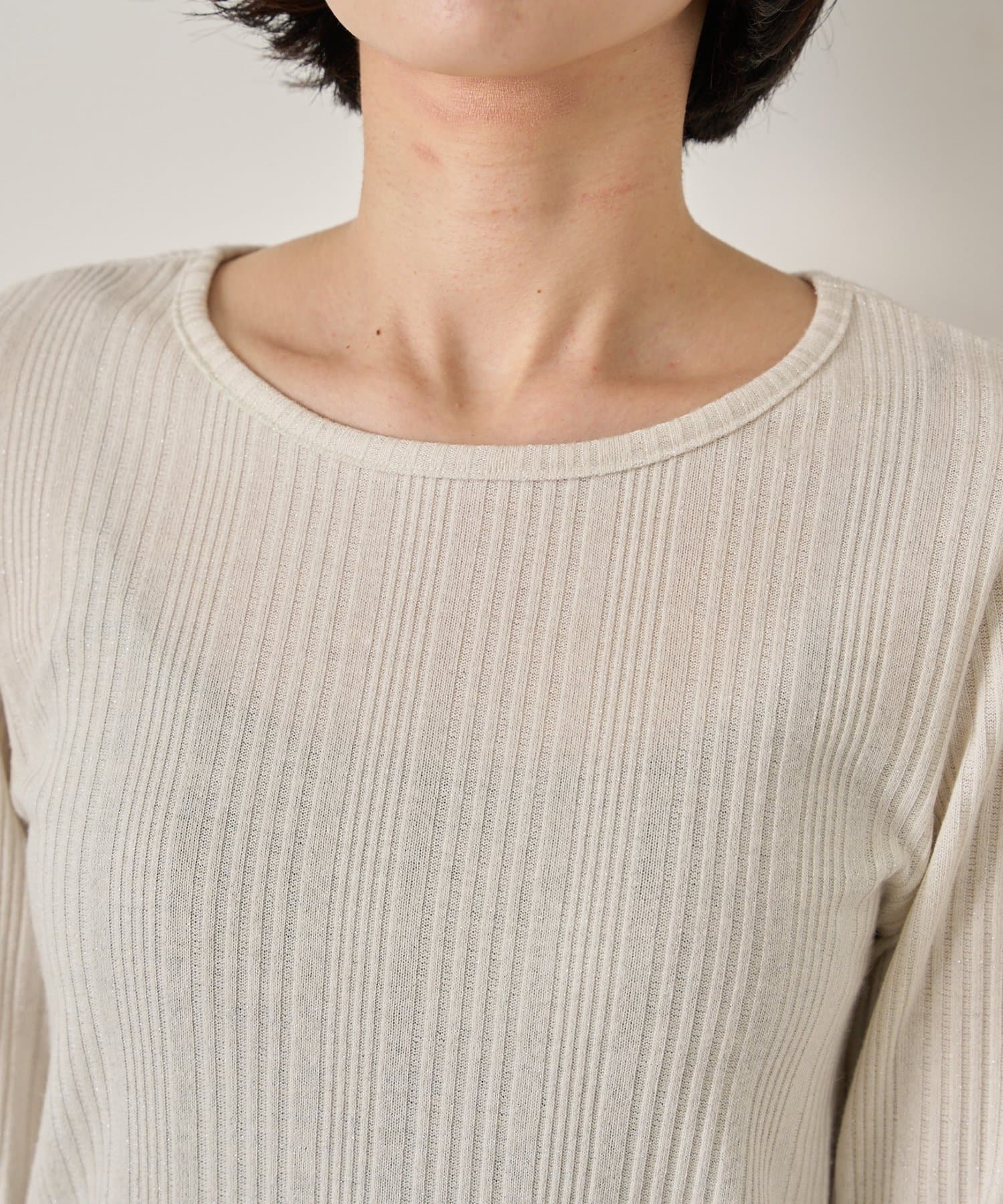 ・さりげないラメが織り込まれた上品な輝きが魅力のリブカットソー。