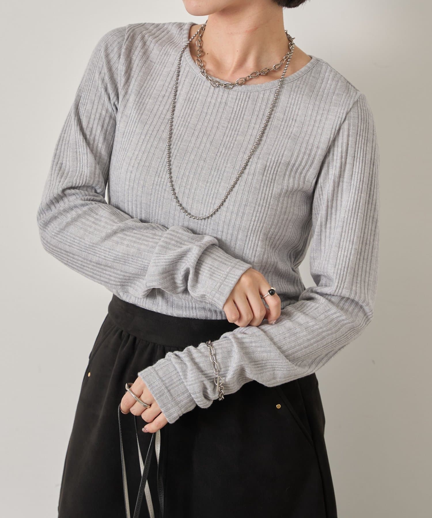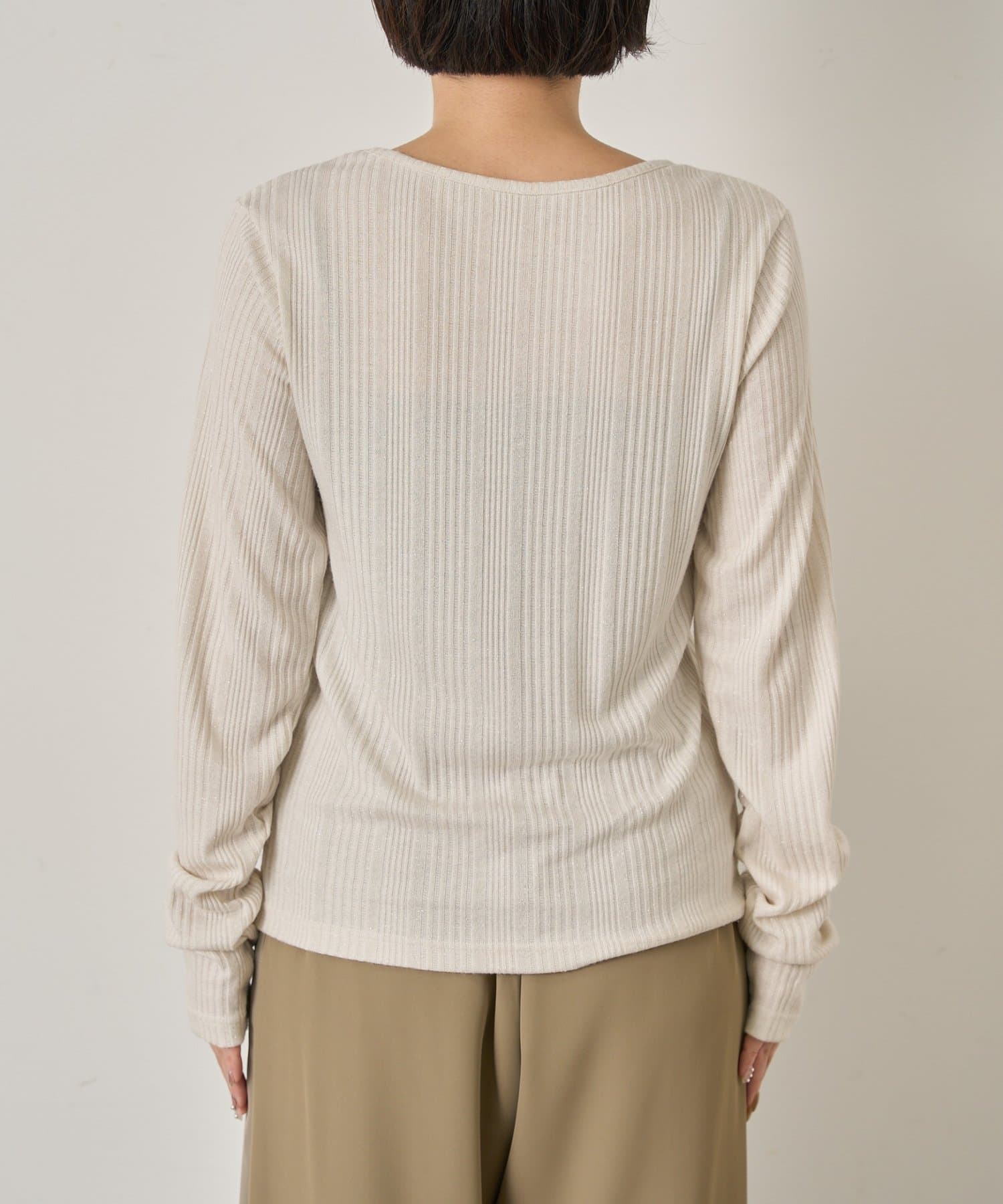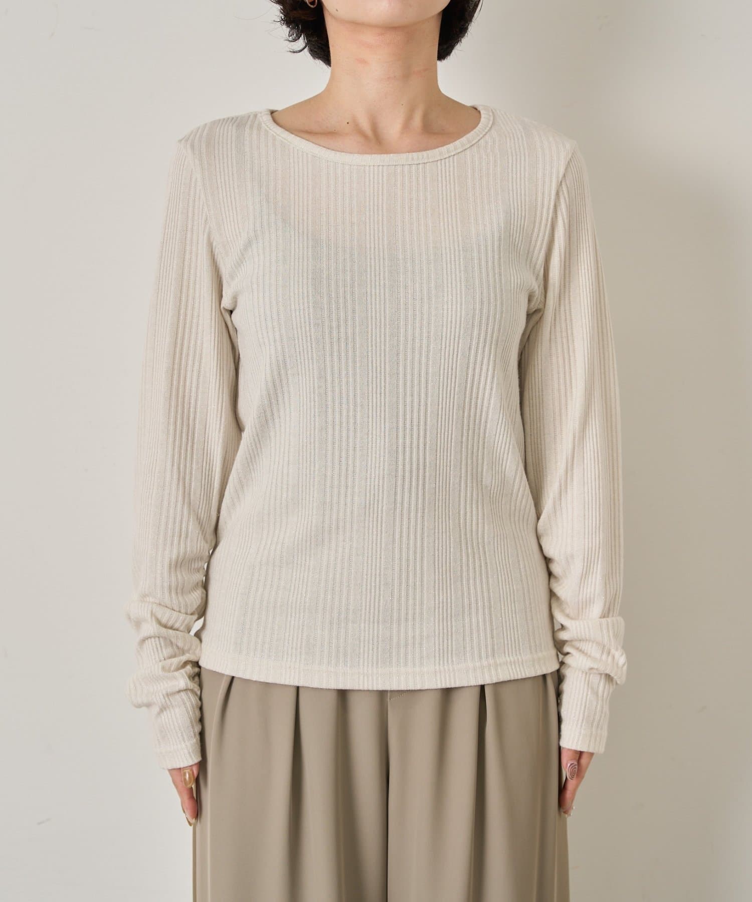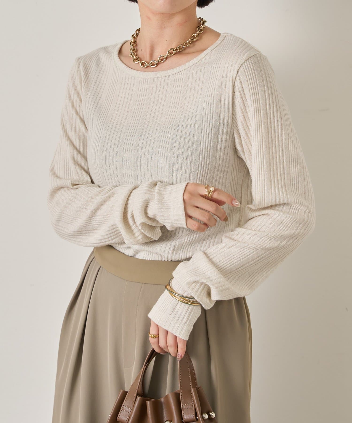 ・さりげないラメが織り込まれた上品な輝きが魅力のリブカットソー。