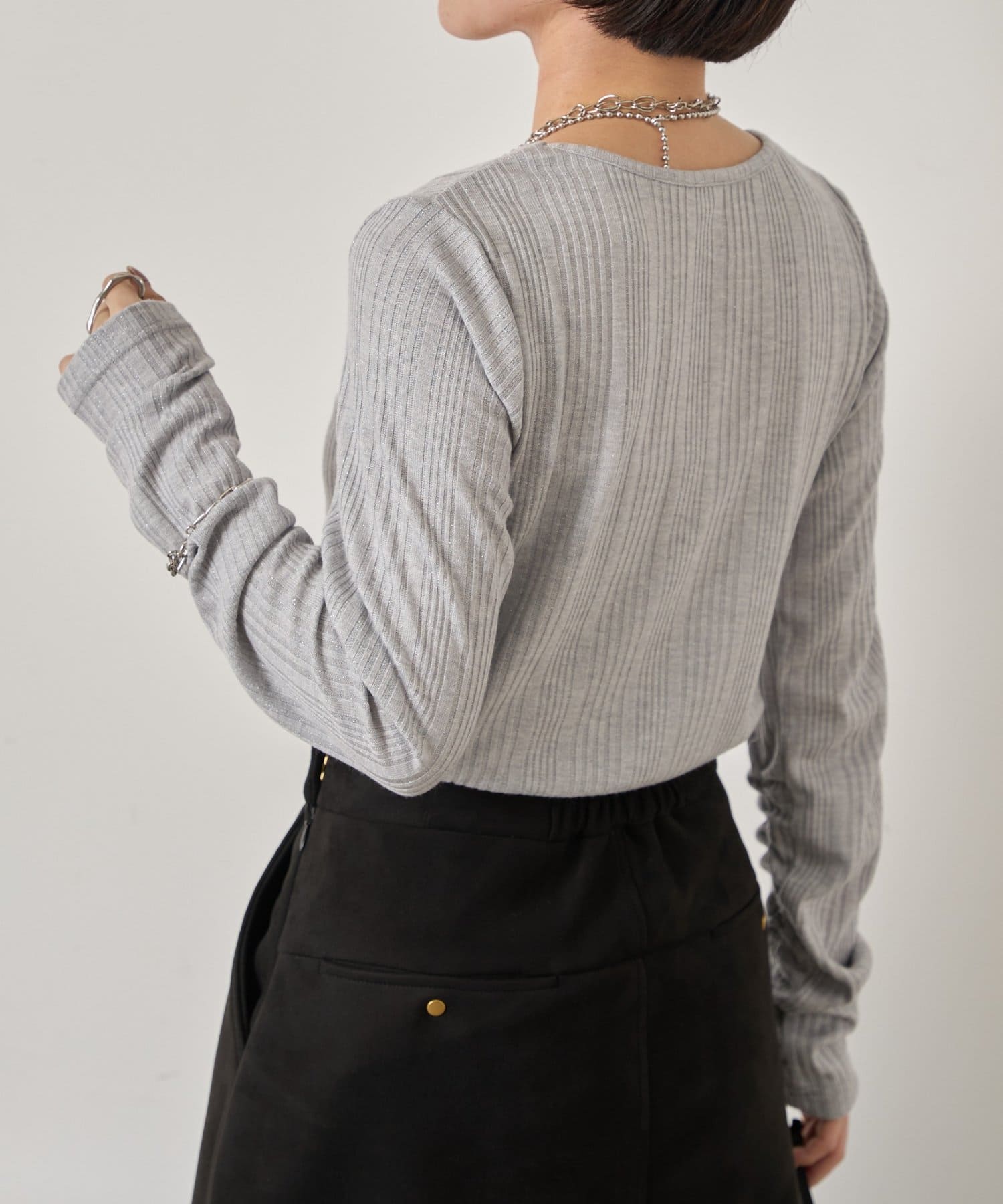 ・柔らかく伸縮性のあるIラインのリブ編みがボディラインをすっきり見せてくれます。