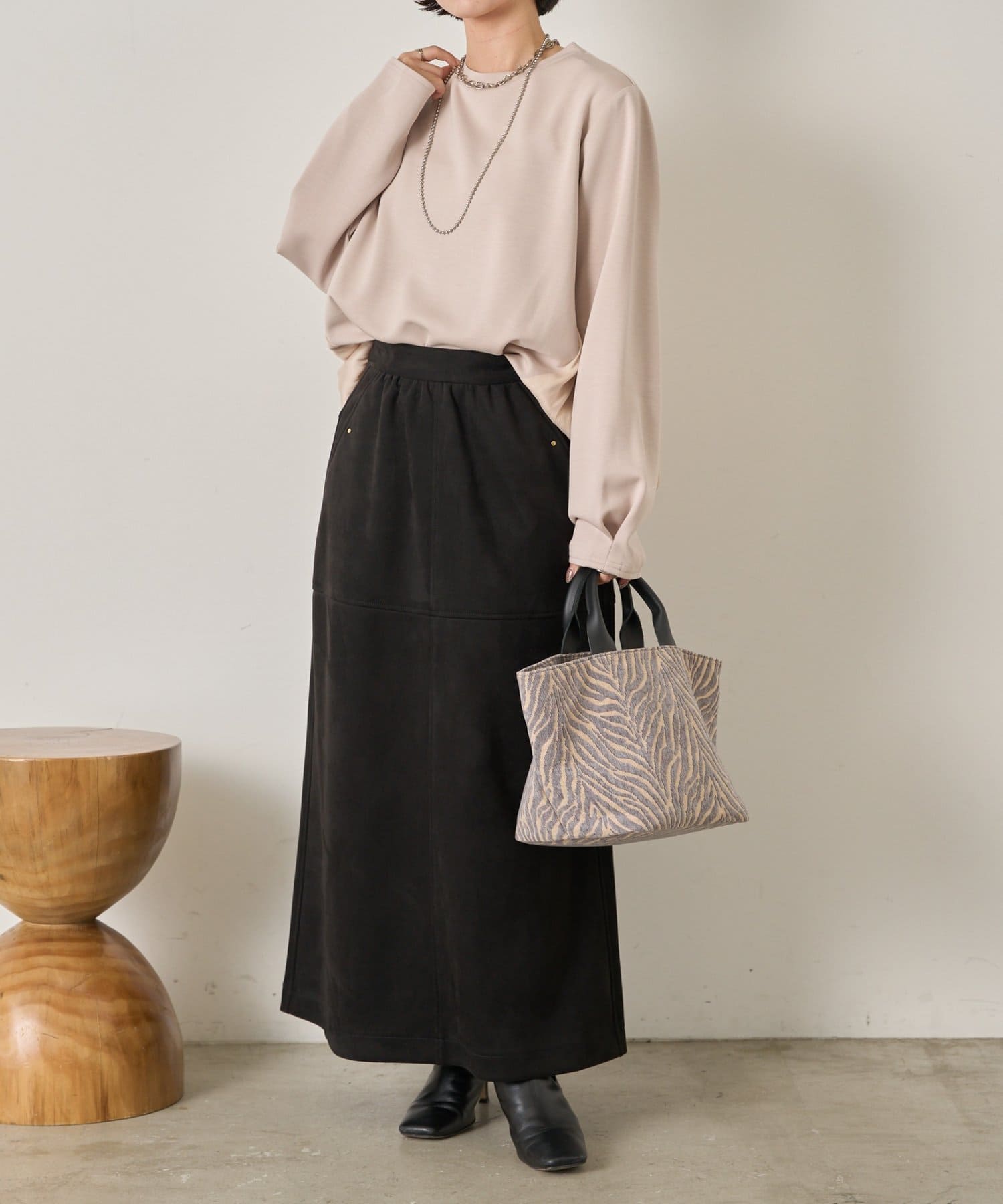 ・動くたびに揺れる柔らかな素材感が、女性らしいニュアンスを演出します。