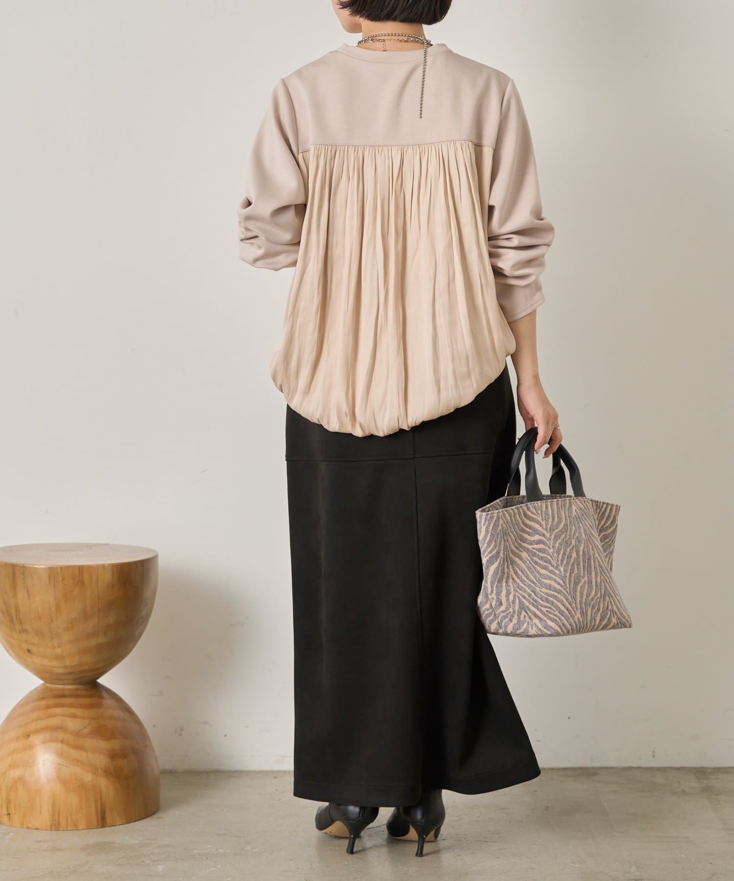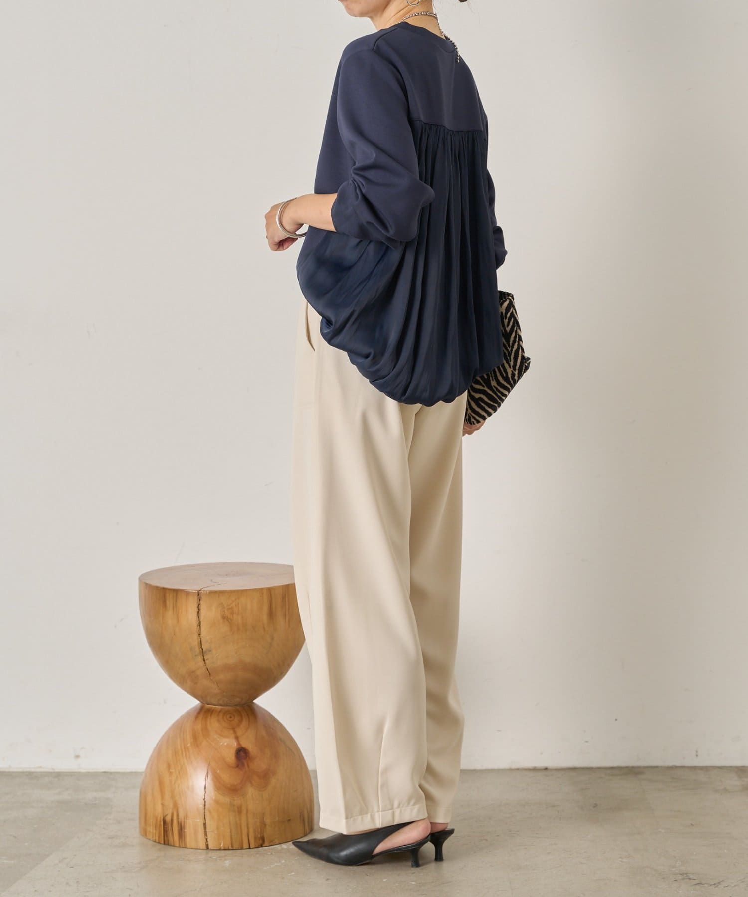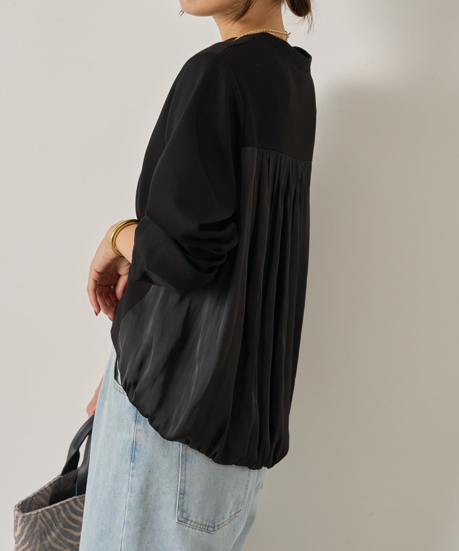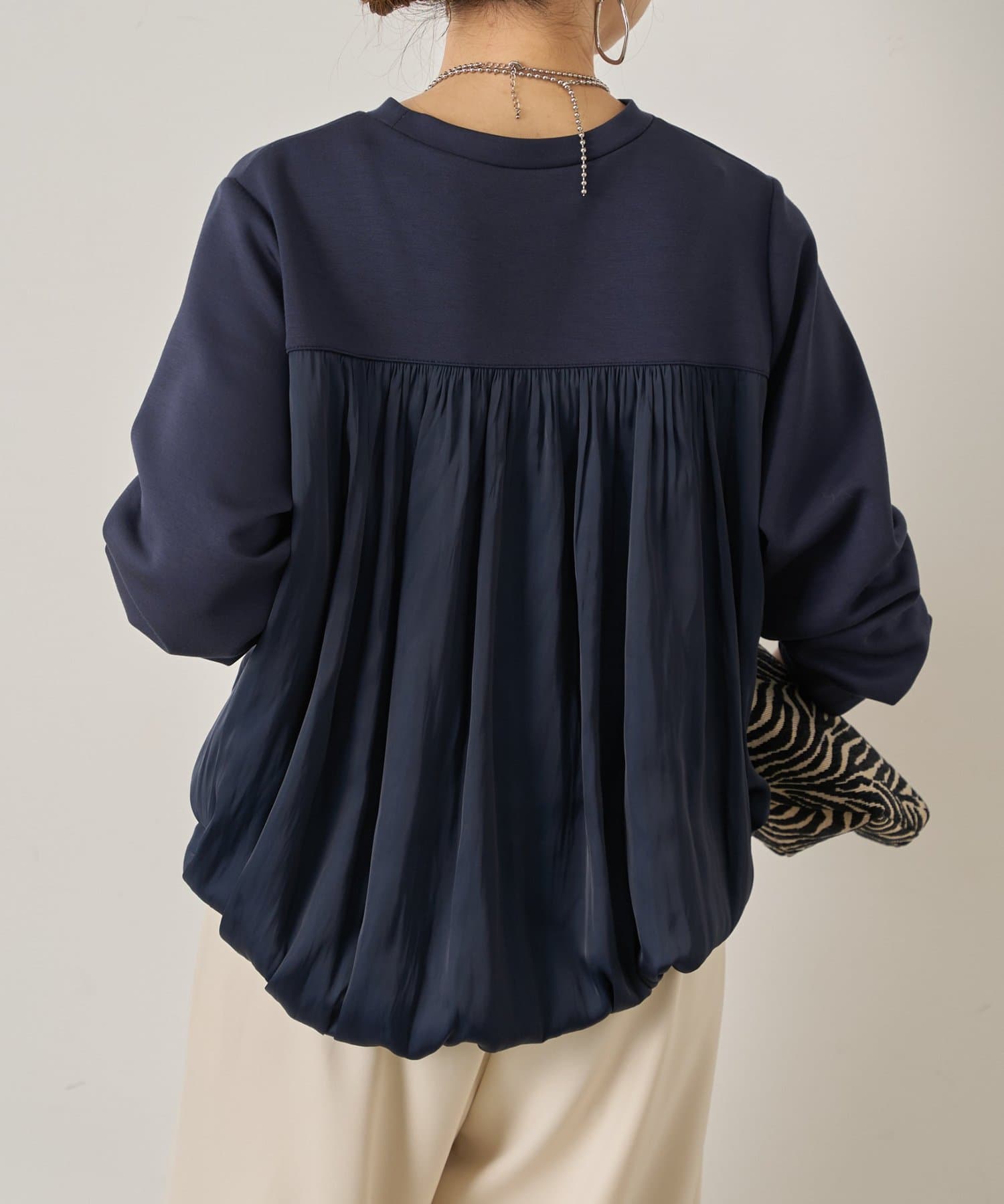 ・ふんわりと立体感のあるバックシルエットが印象的な切替デザインのバルーントップス。