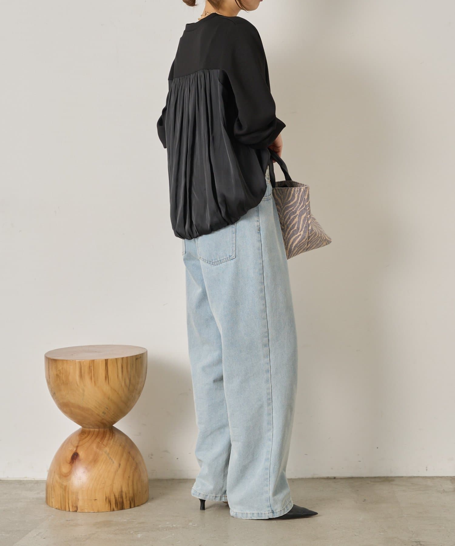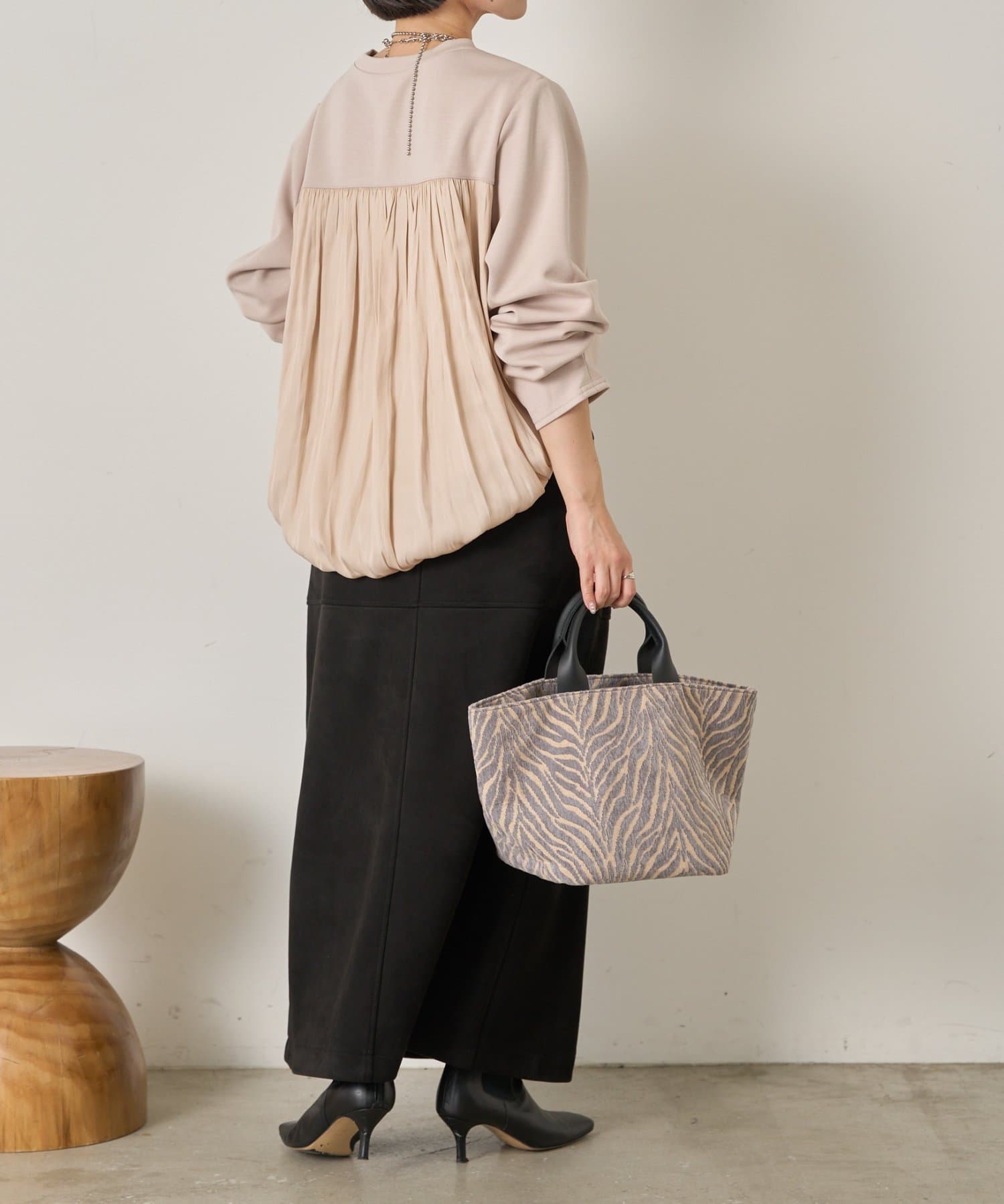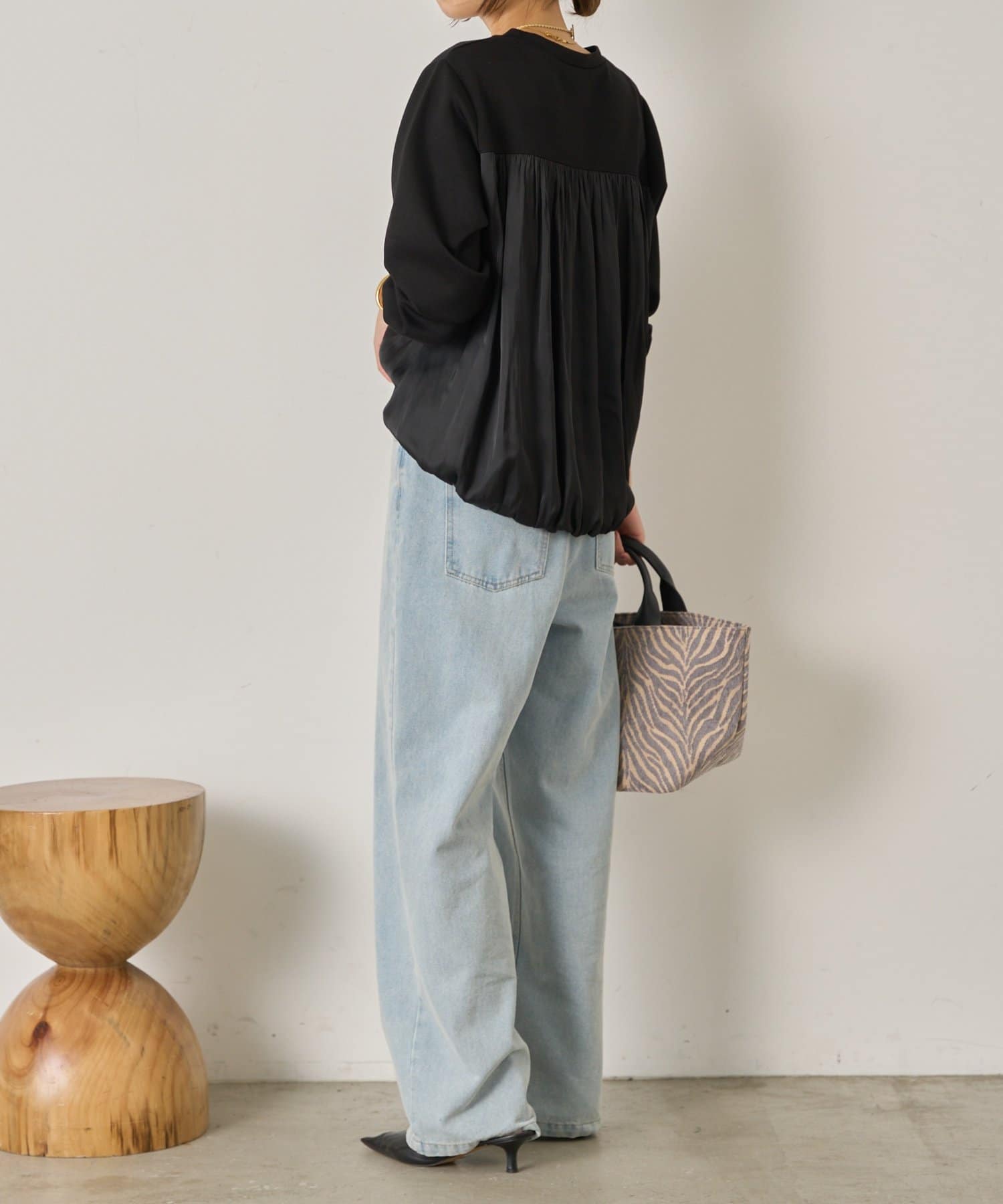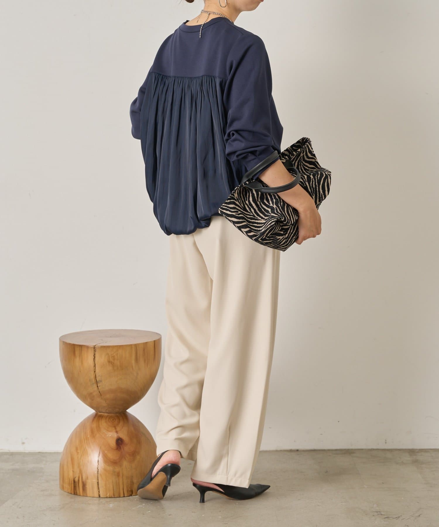 ・ふんわりと立体感のあるバックシルエットが印象的な切替デザインのバルーントップス。