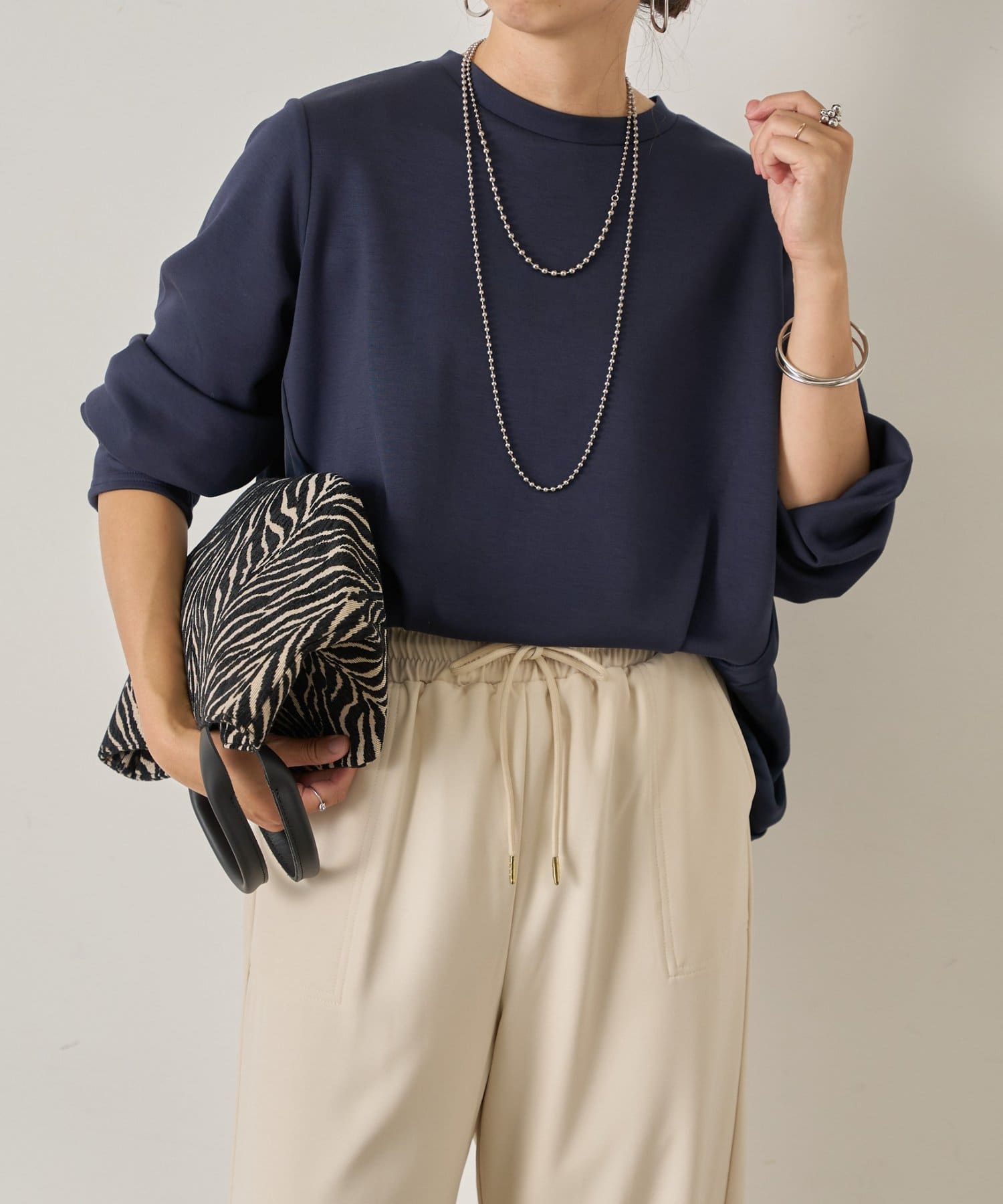 ・カジュアルなパンツスタイルに合わせればリラックス感のある大人カジュアルに。