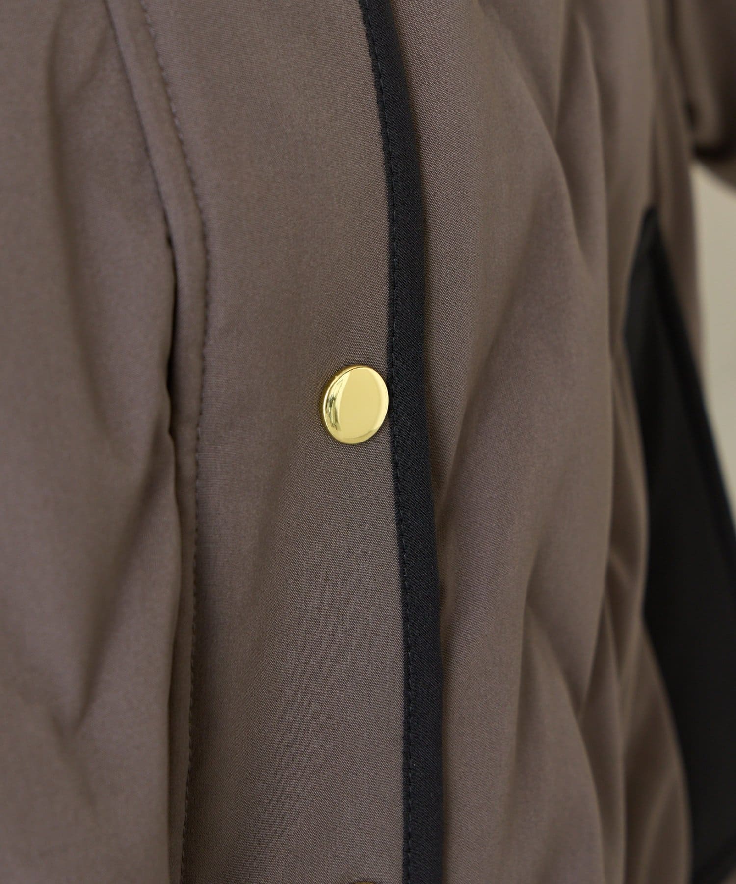 A : フロントはファスナーとスナップボタンの二重仕様で、防風性を高めています。