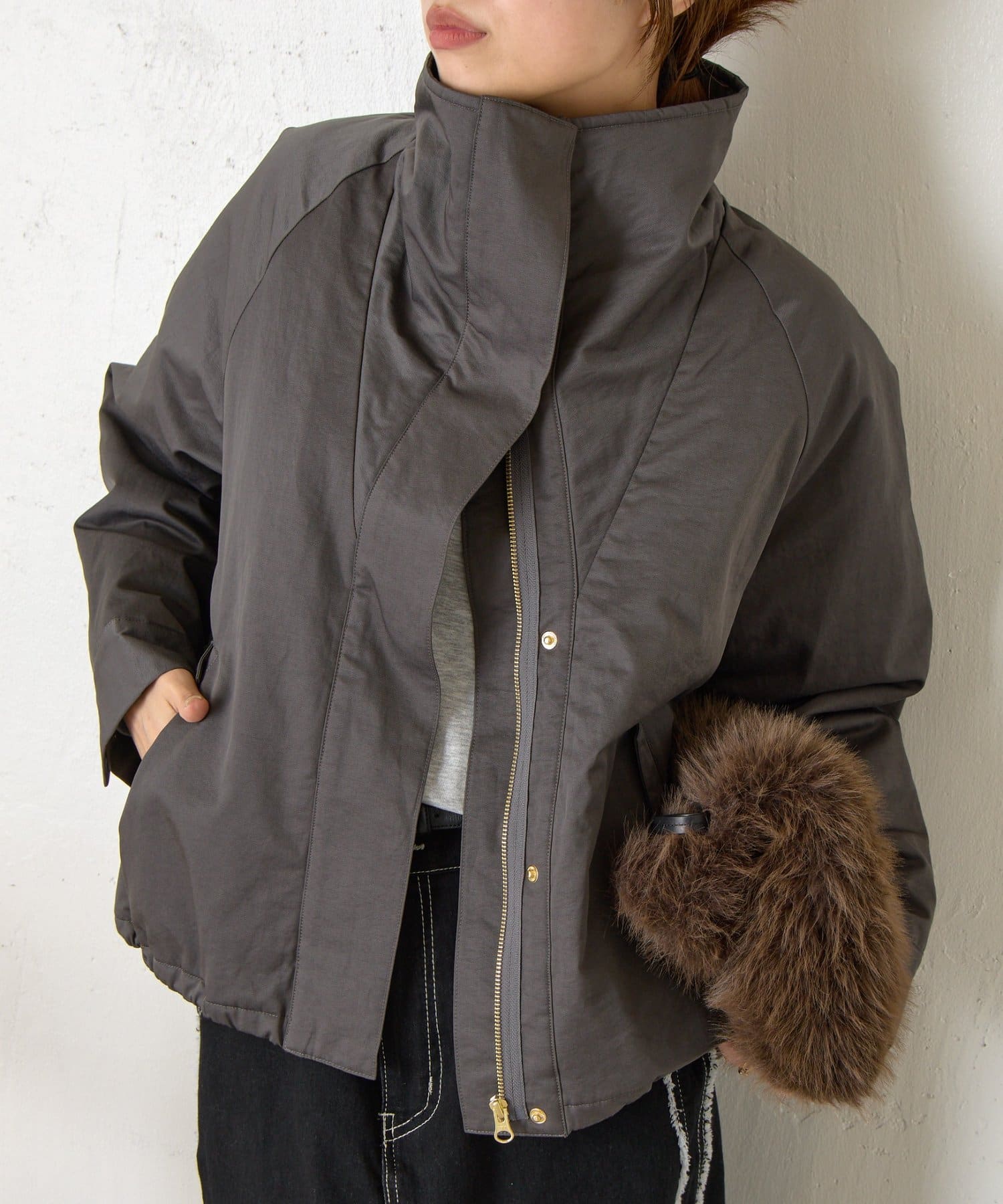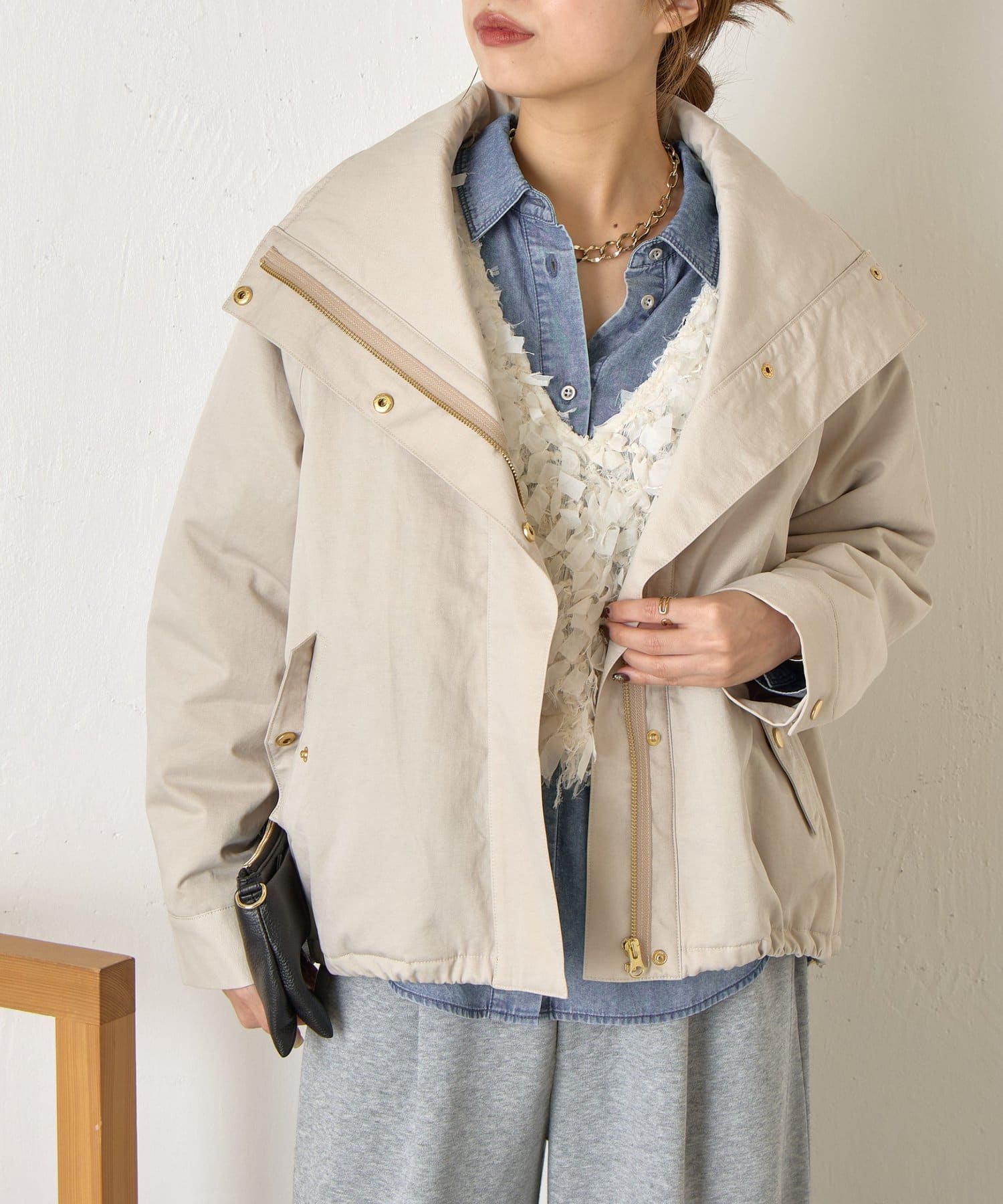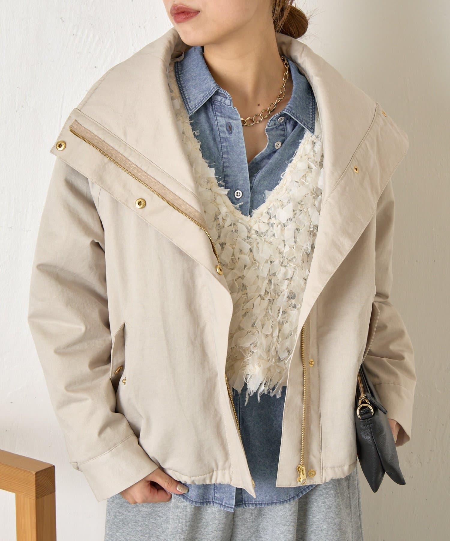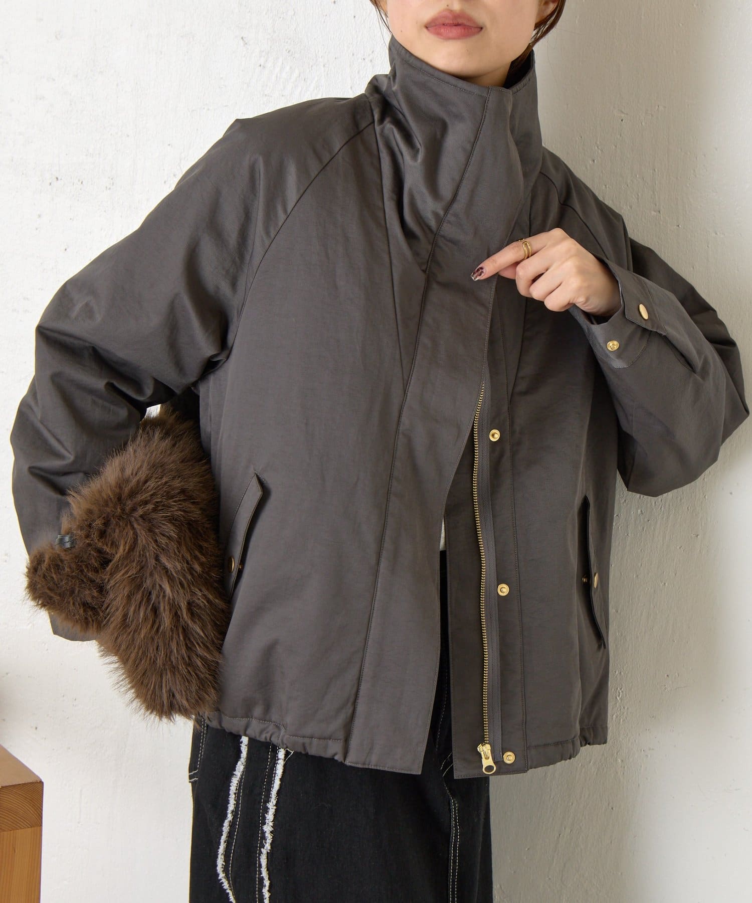 ・首元はお好みで襟を立てたり倒したりでき、雰囲気を変えて楽しめます◎