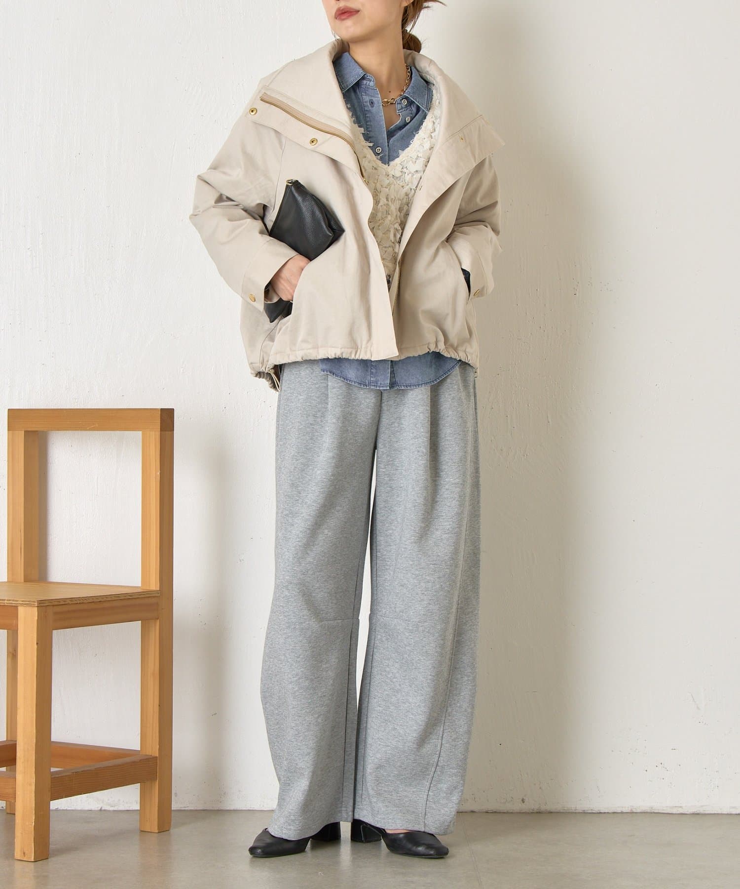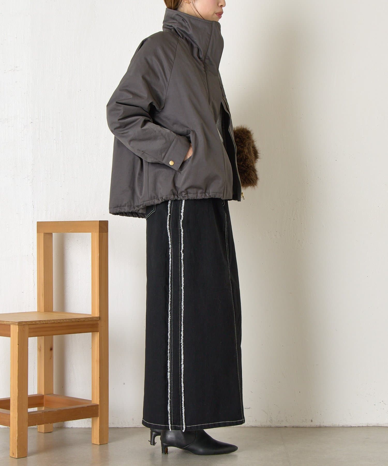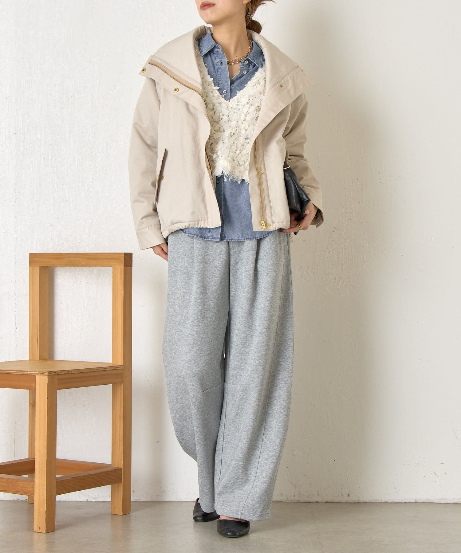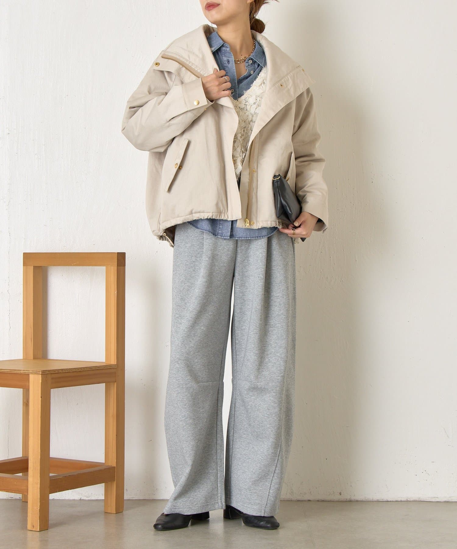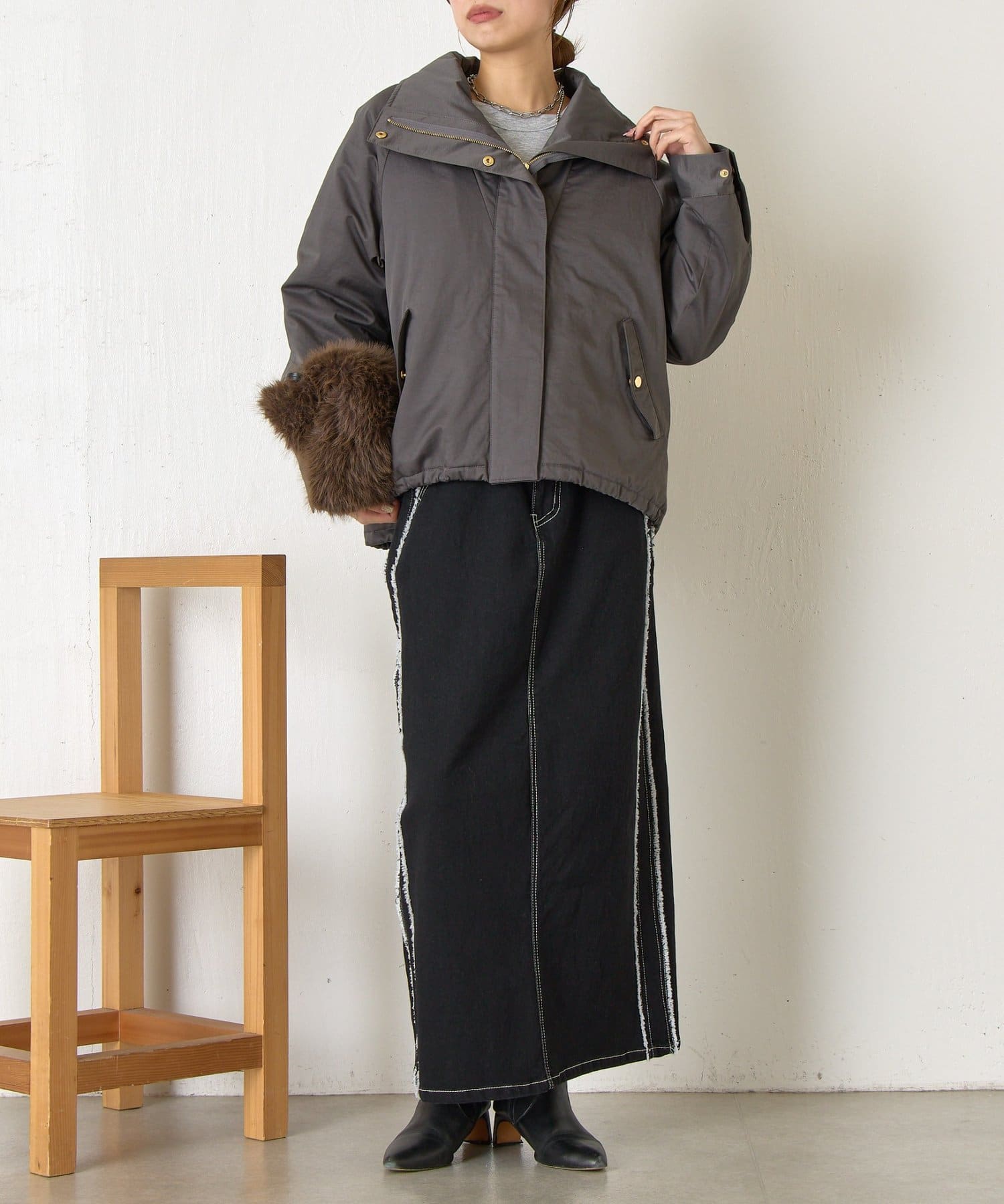 ・首元はお好みで襟を立てたり倒したりでき、雰囲気を変えて楽しめます◎