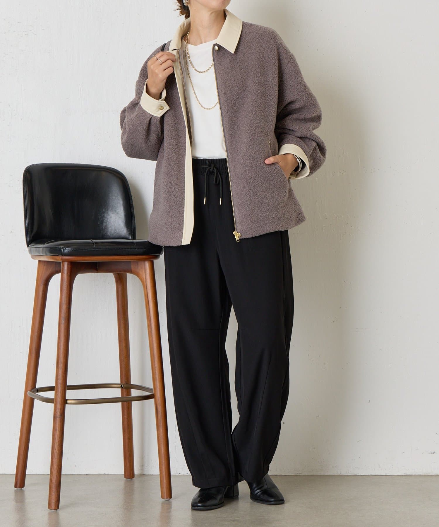 ・ふんわりとしたボア素材は季節の変わり目に活躍するアウターです。