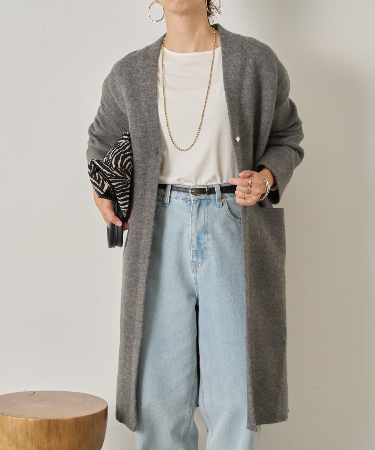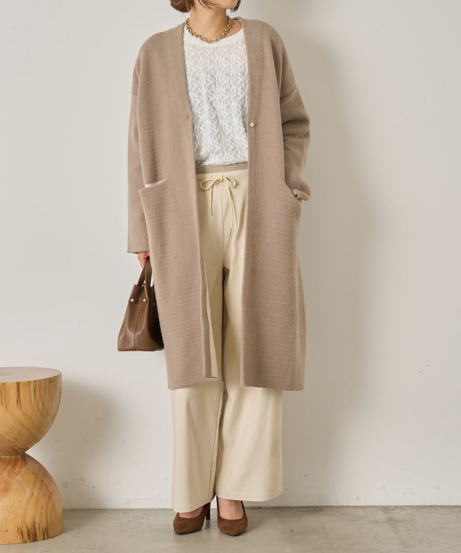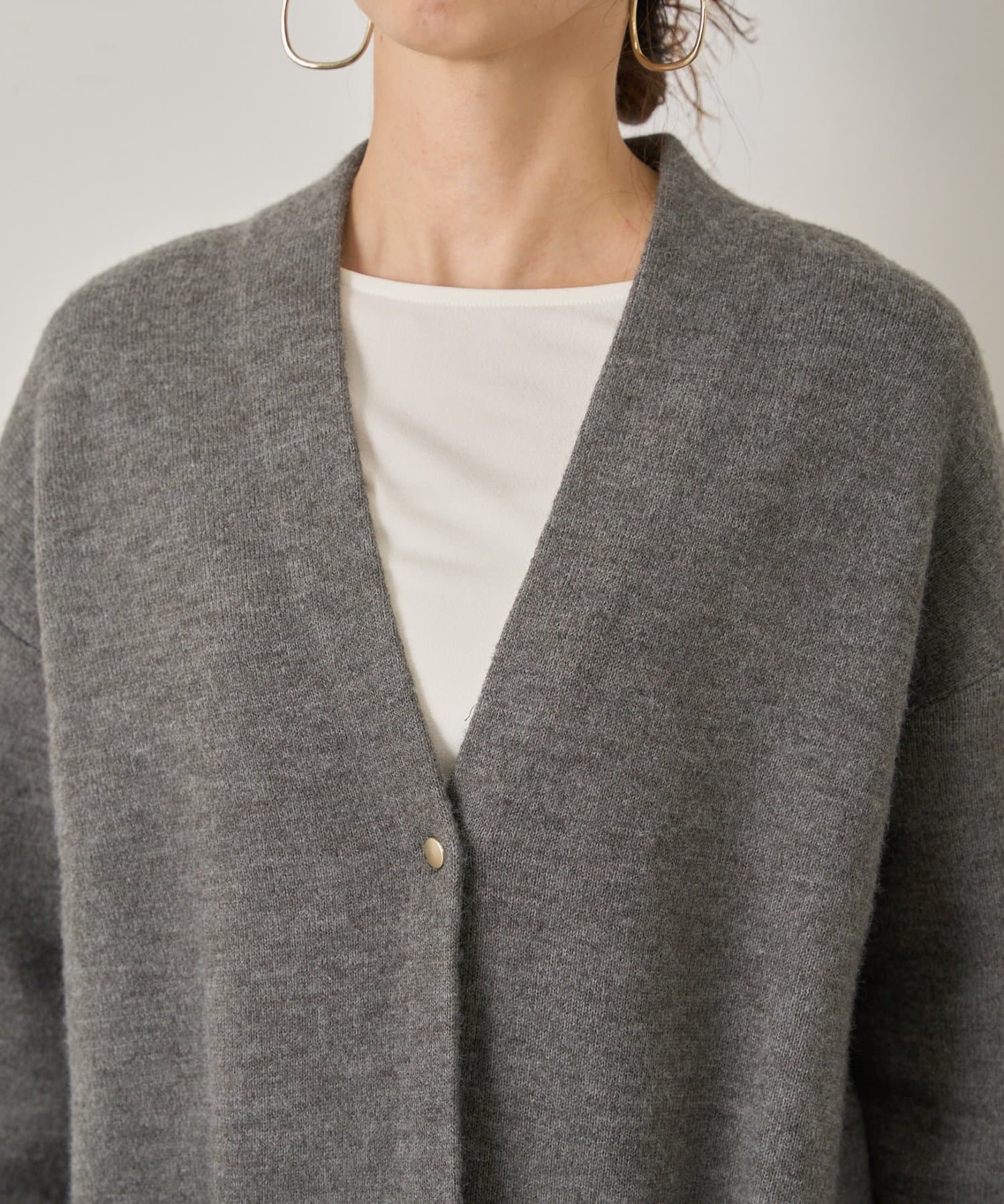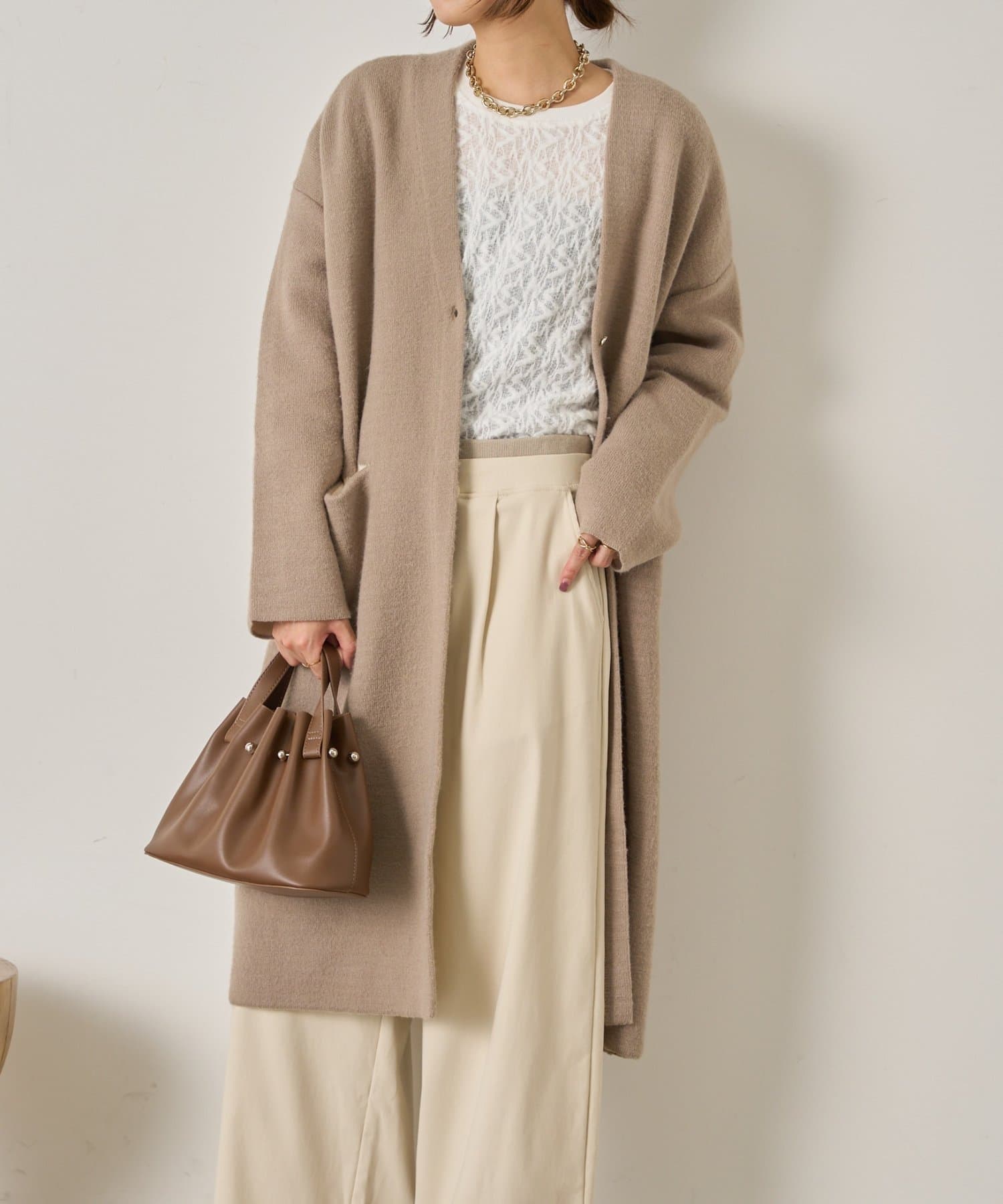・程よい厚みで柔らかな素材のロング丈カーディガン。