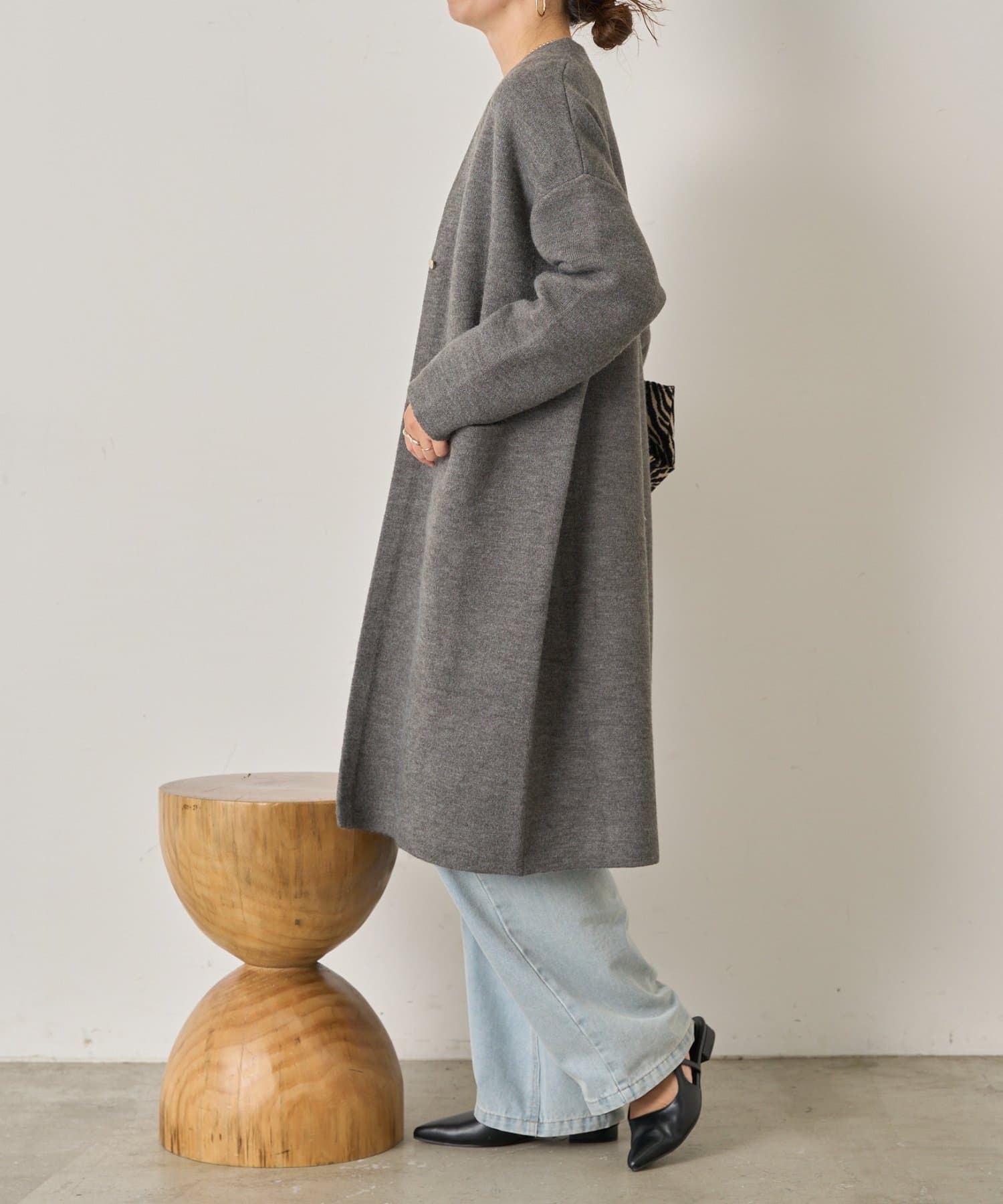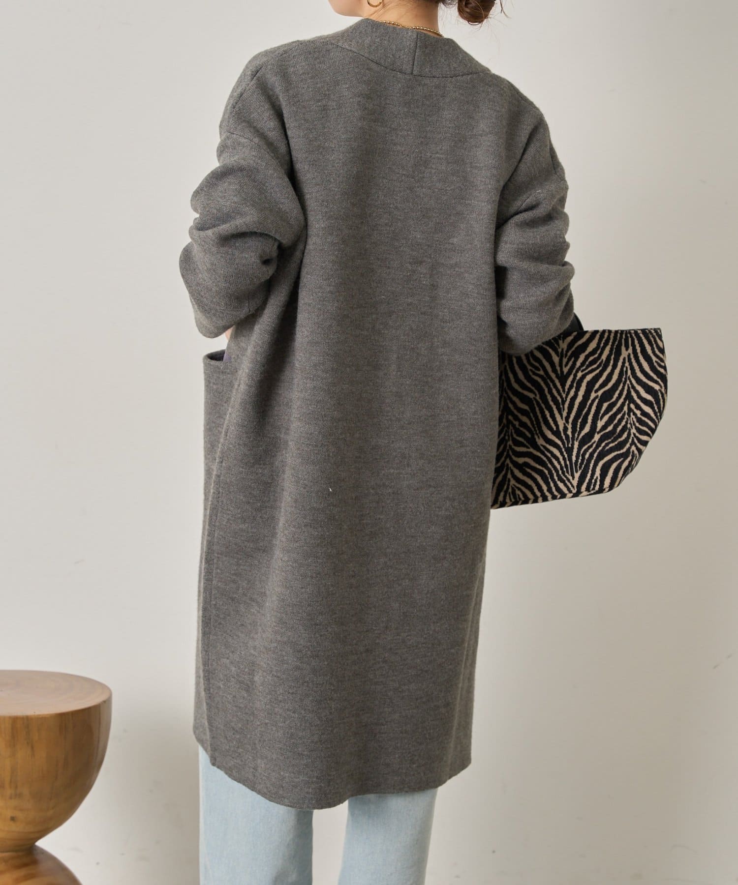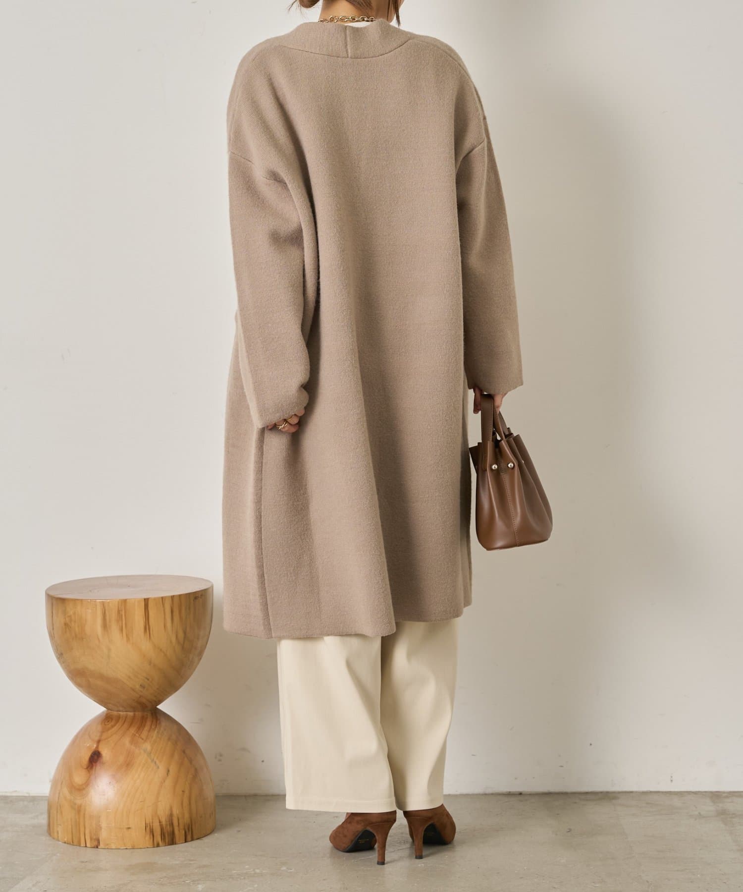 ・程よい厚みで柔らかな素材のロング丈カーディガン。