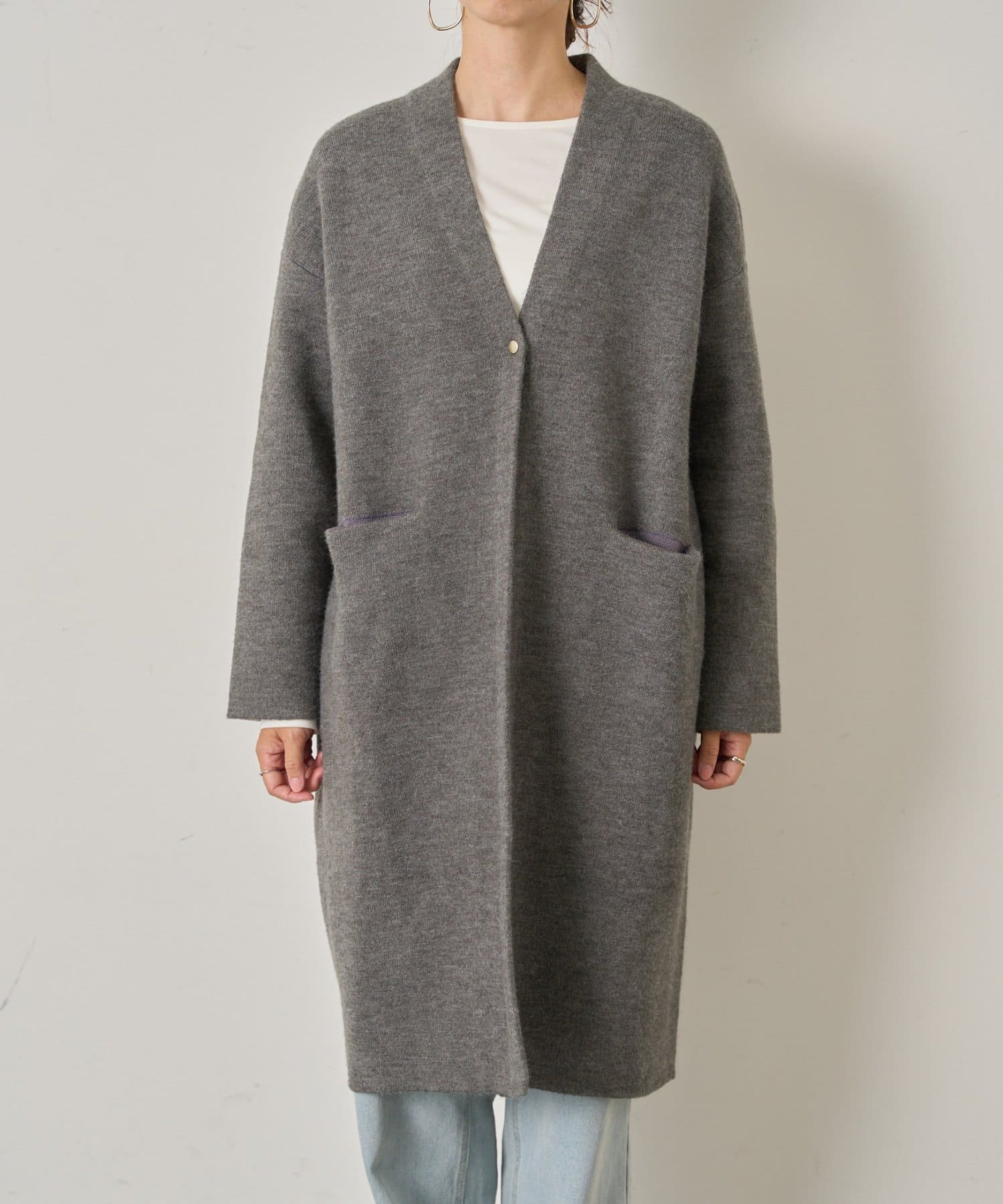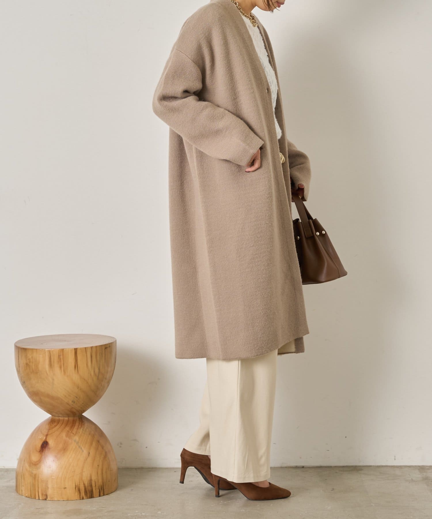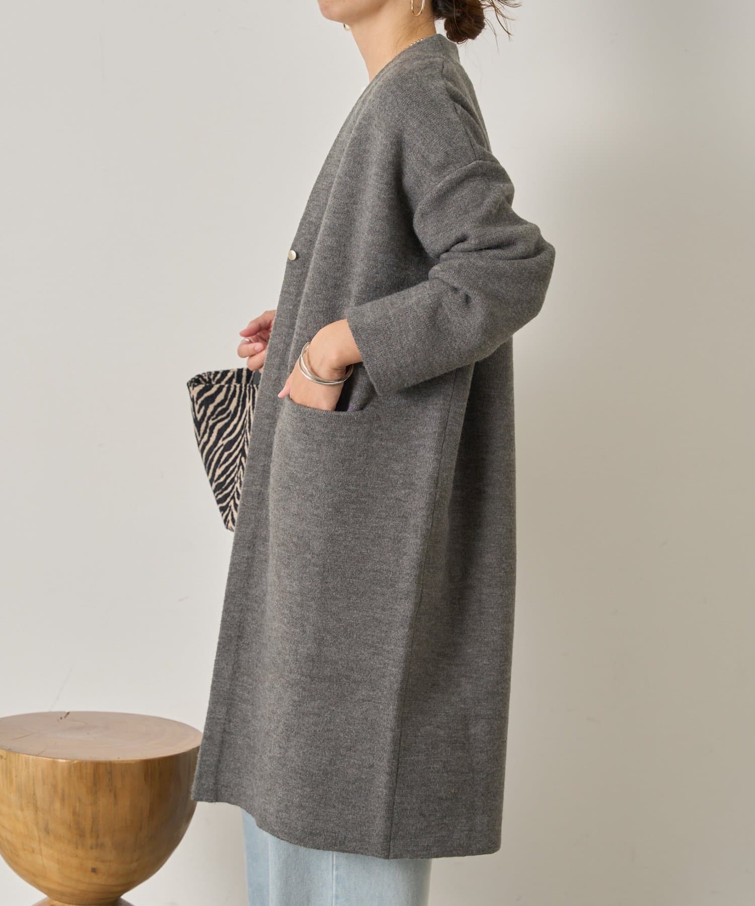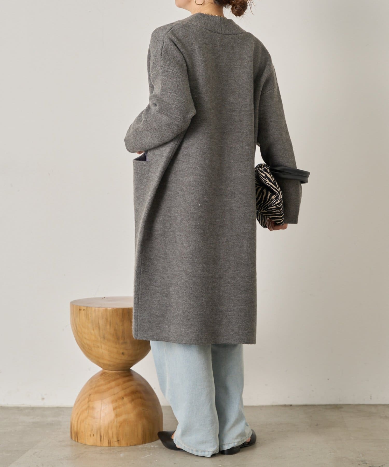 ・程よい厚みで柔らかな素材のロング丈カーディガン。