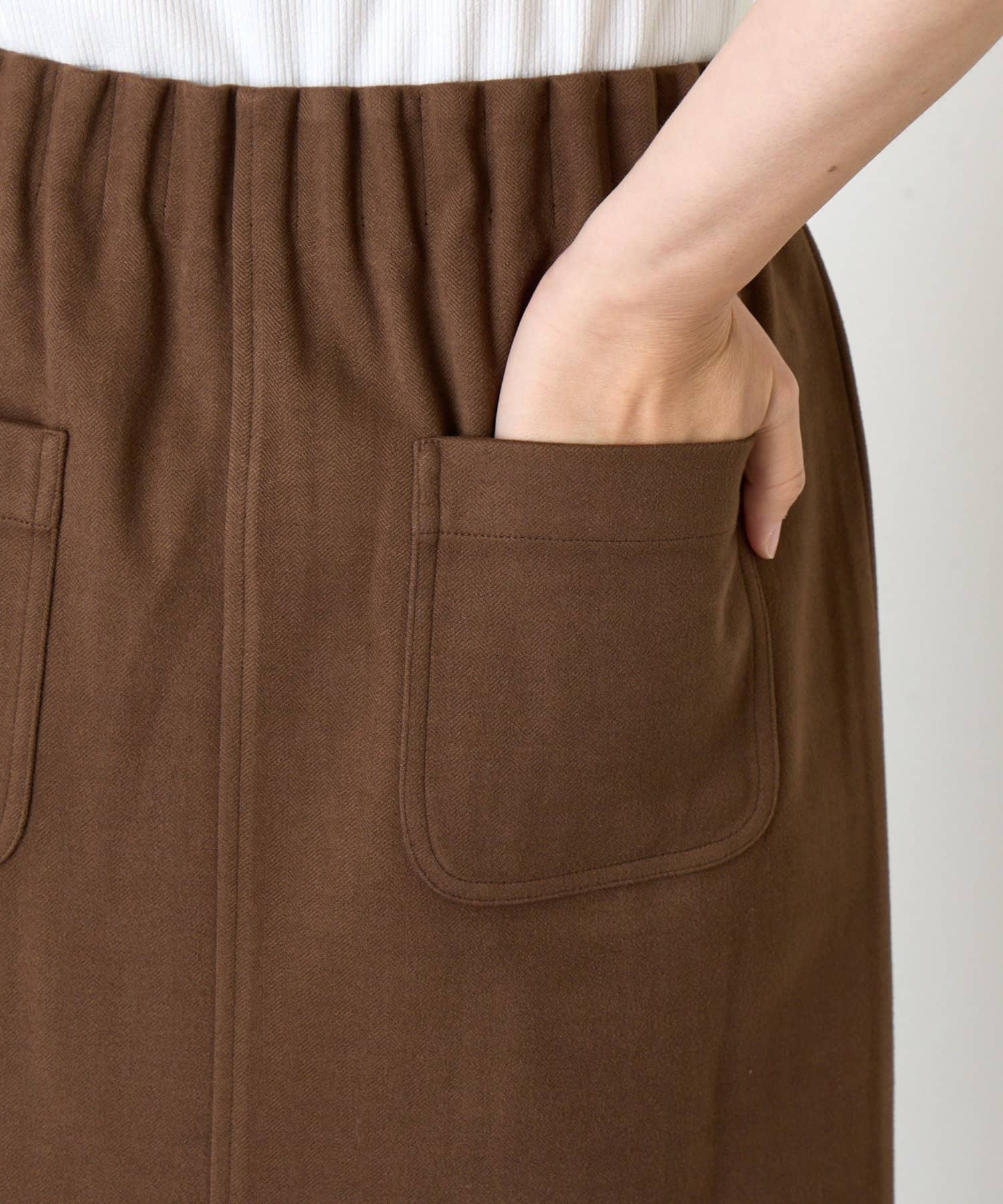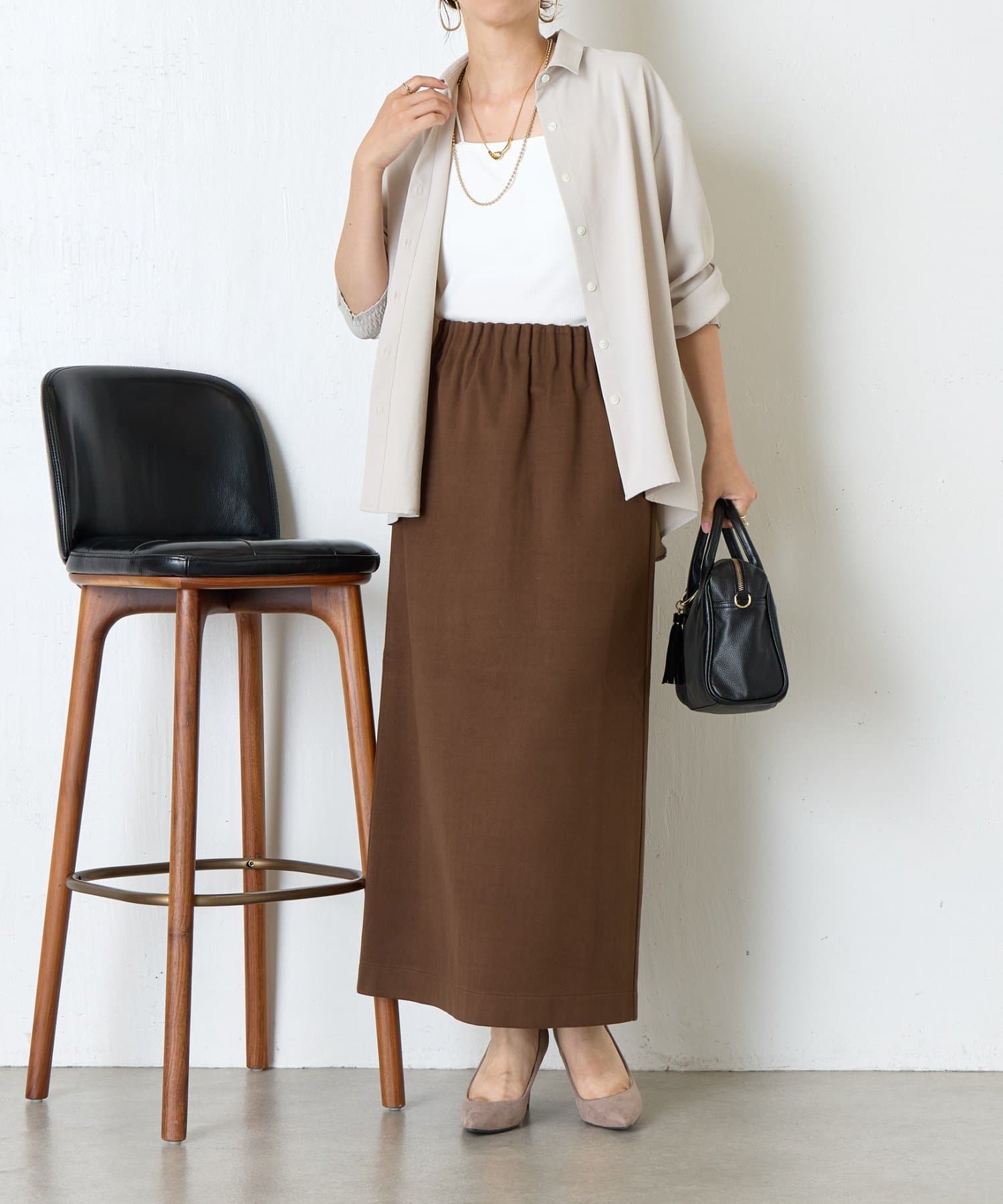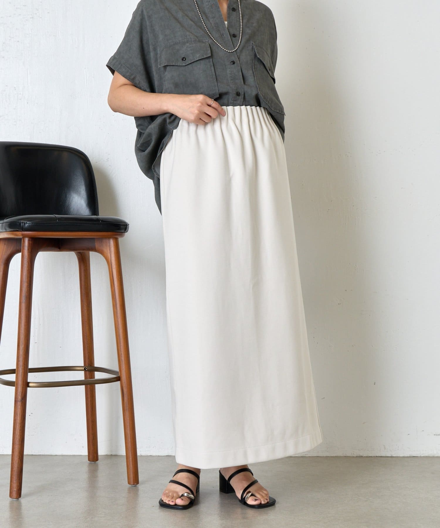 ・やわらかな風合いとマットな質感が特徴で、まるでウールのような温かみのある表情を楽しめるロングスカート。