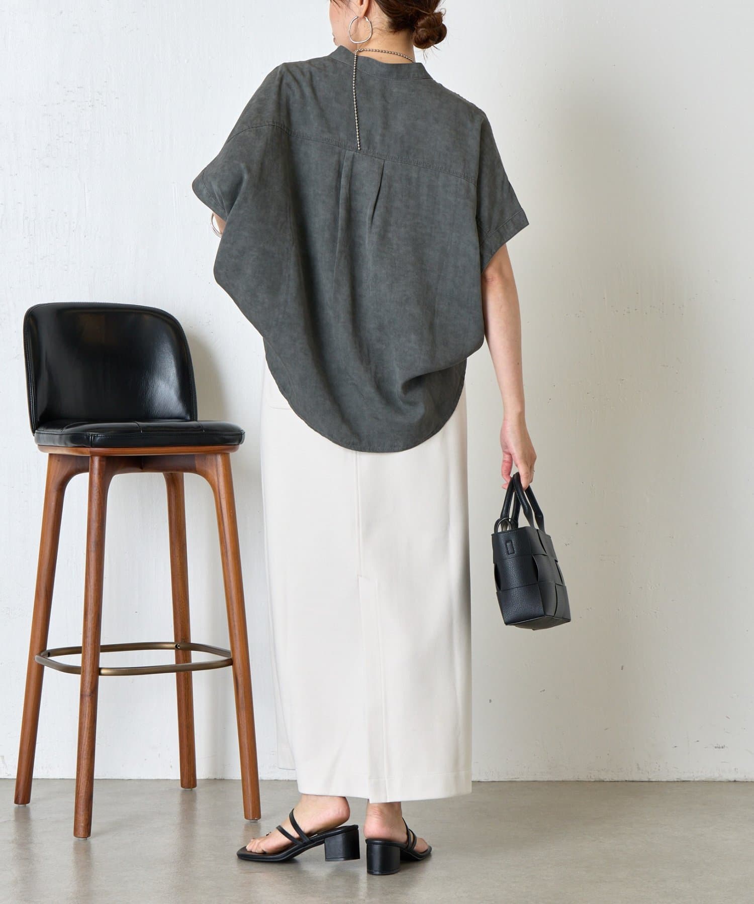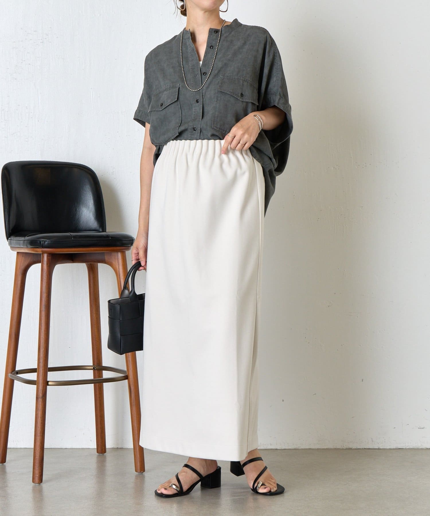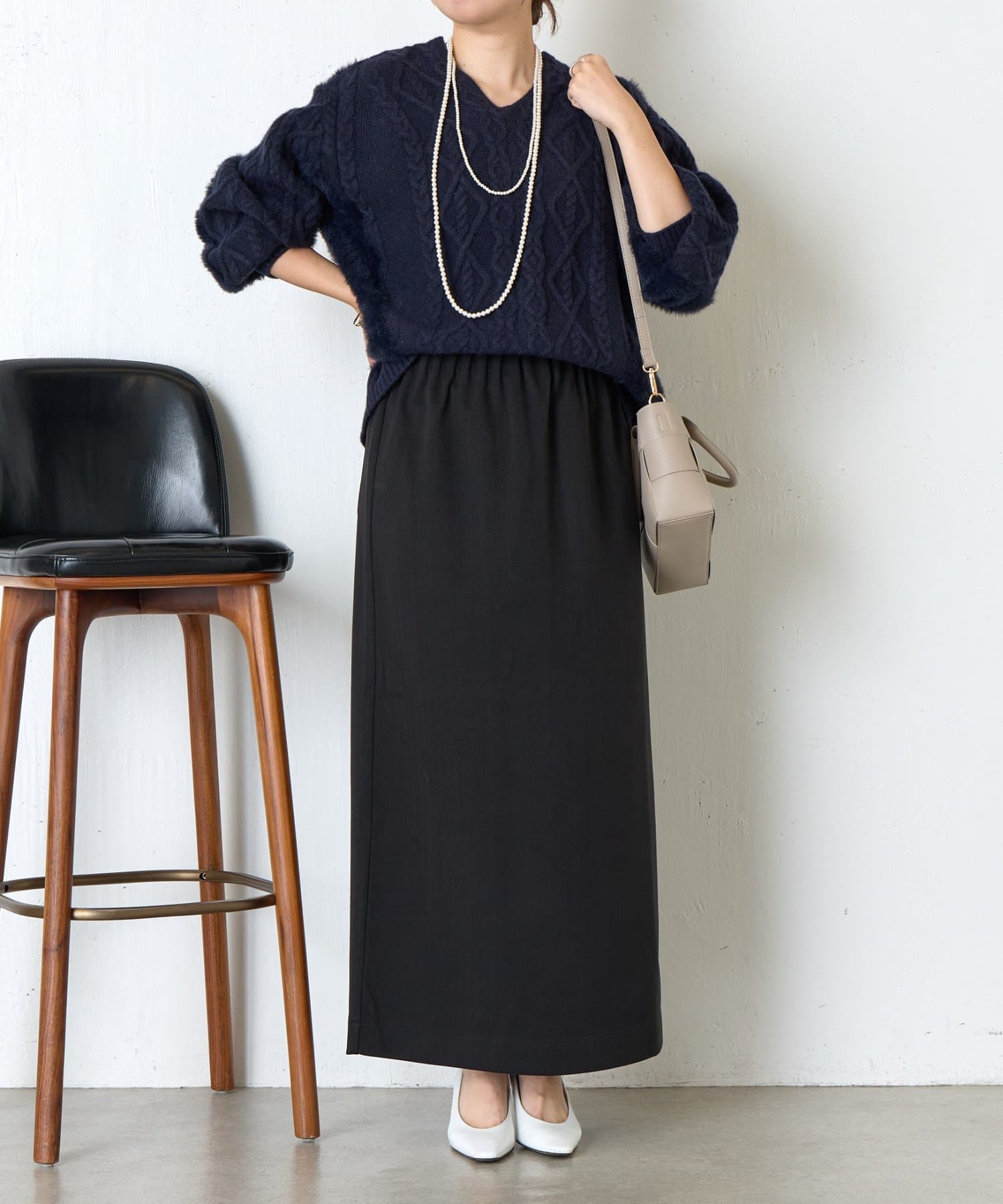・やわらかな風合いとマットな質感が特徴で、まるでウールのような温かみのある表情を楽しめるロングスカート。