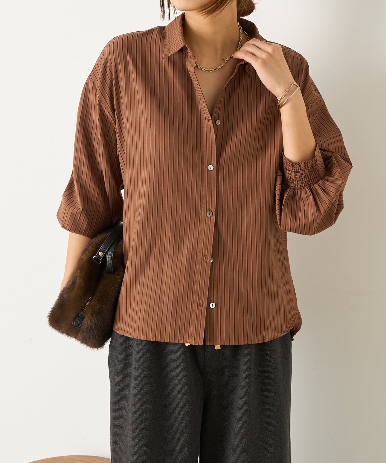 • Jena espace merveilleux(ジェナ エスパスメルヴェイユ) バックタブストライプシャツ