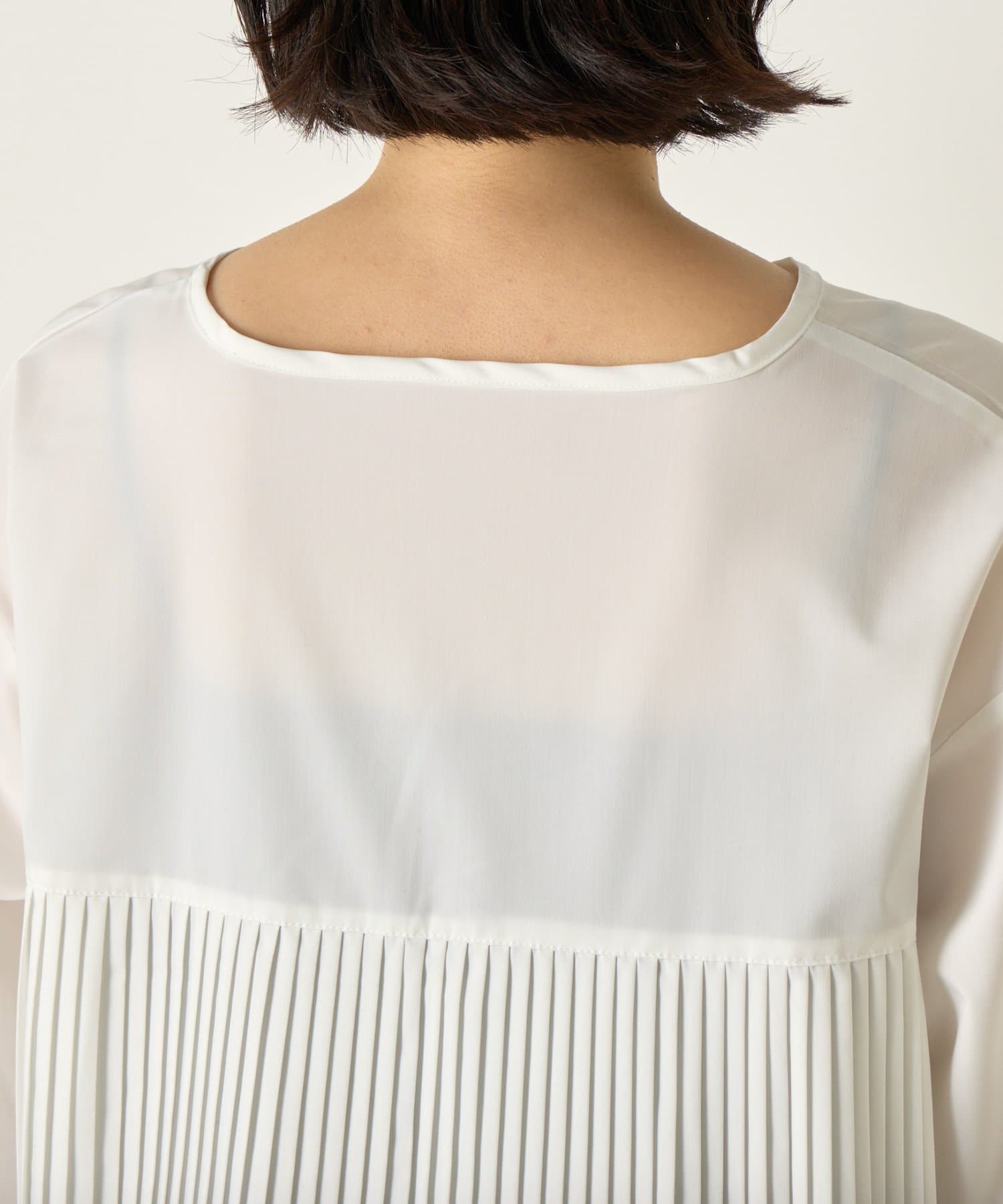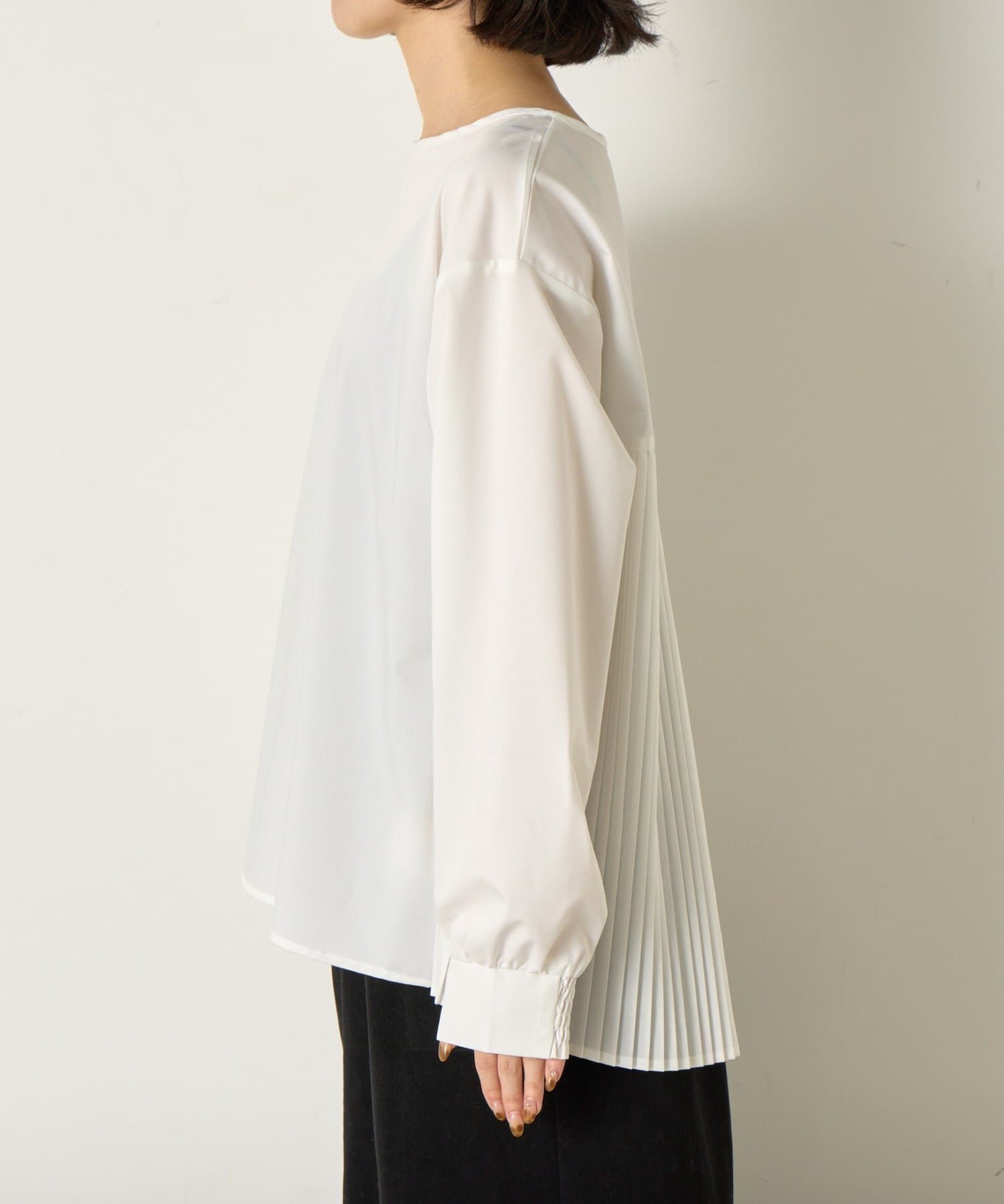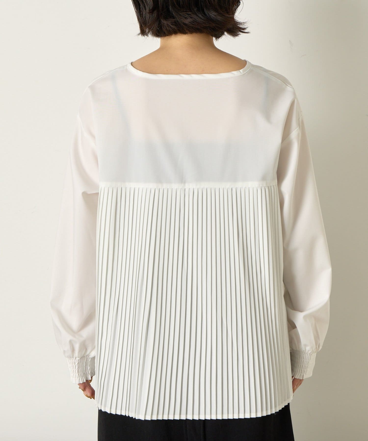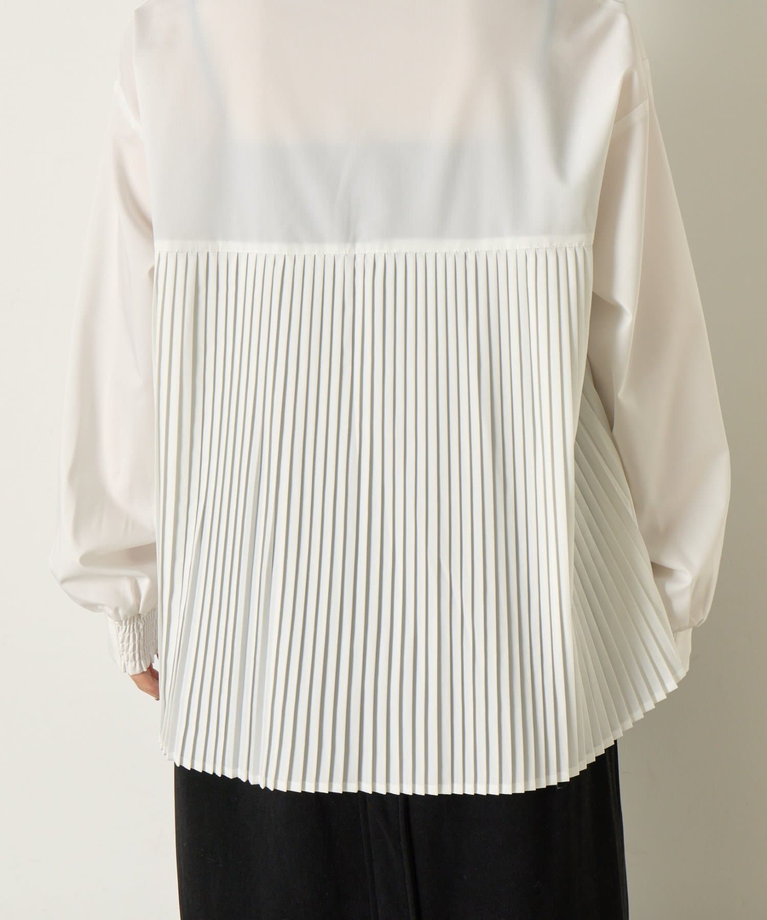 後ろのプリーツがスタイリングに動きを加えお洒落な表情に。