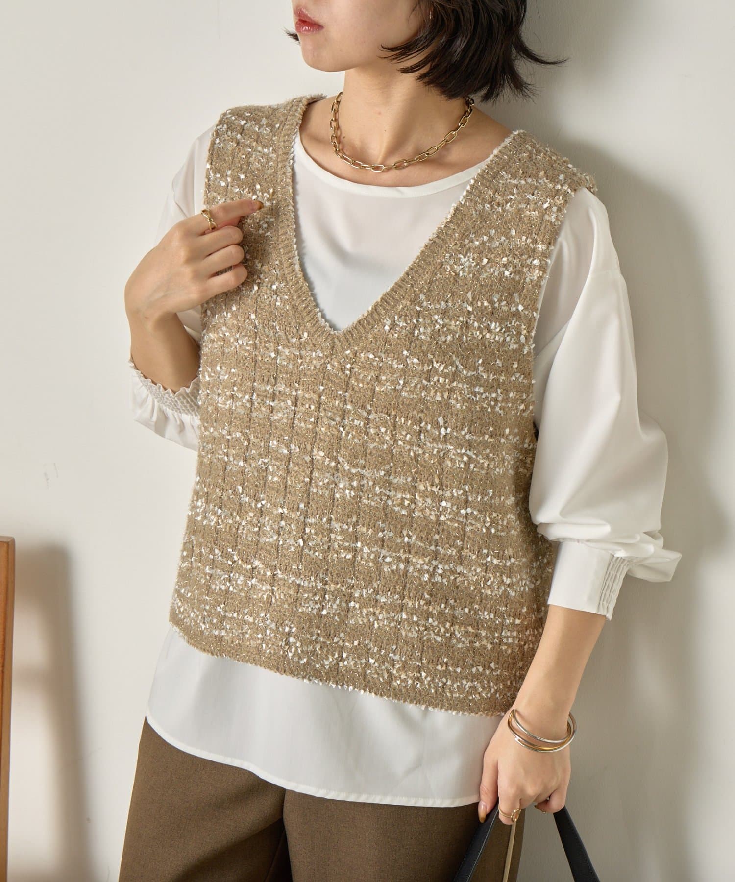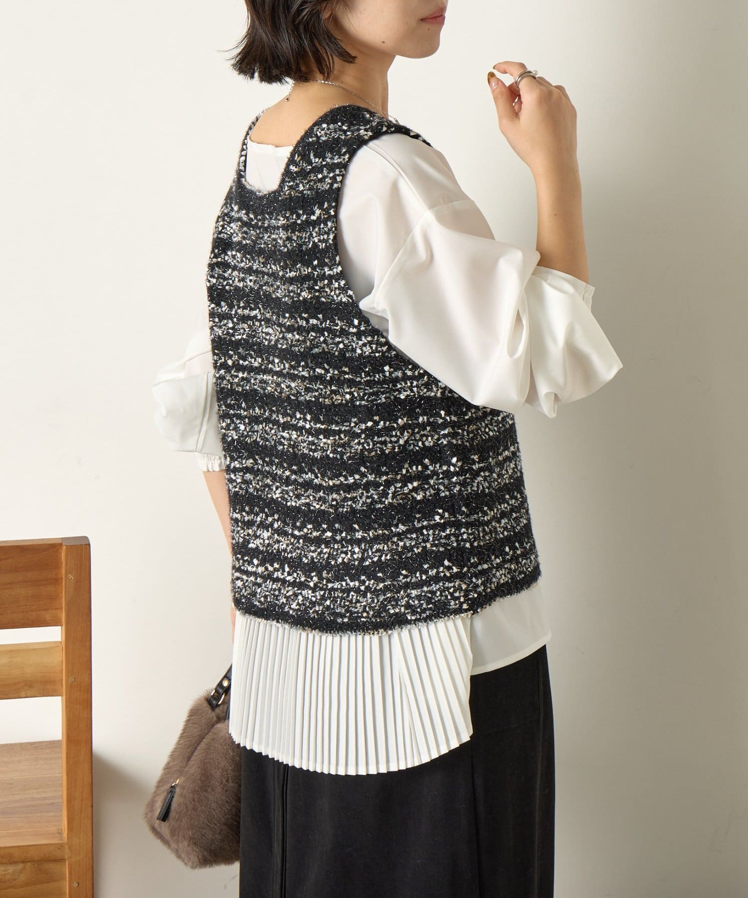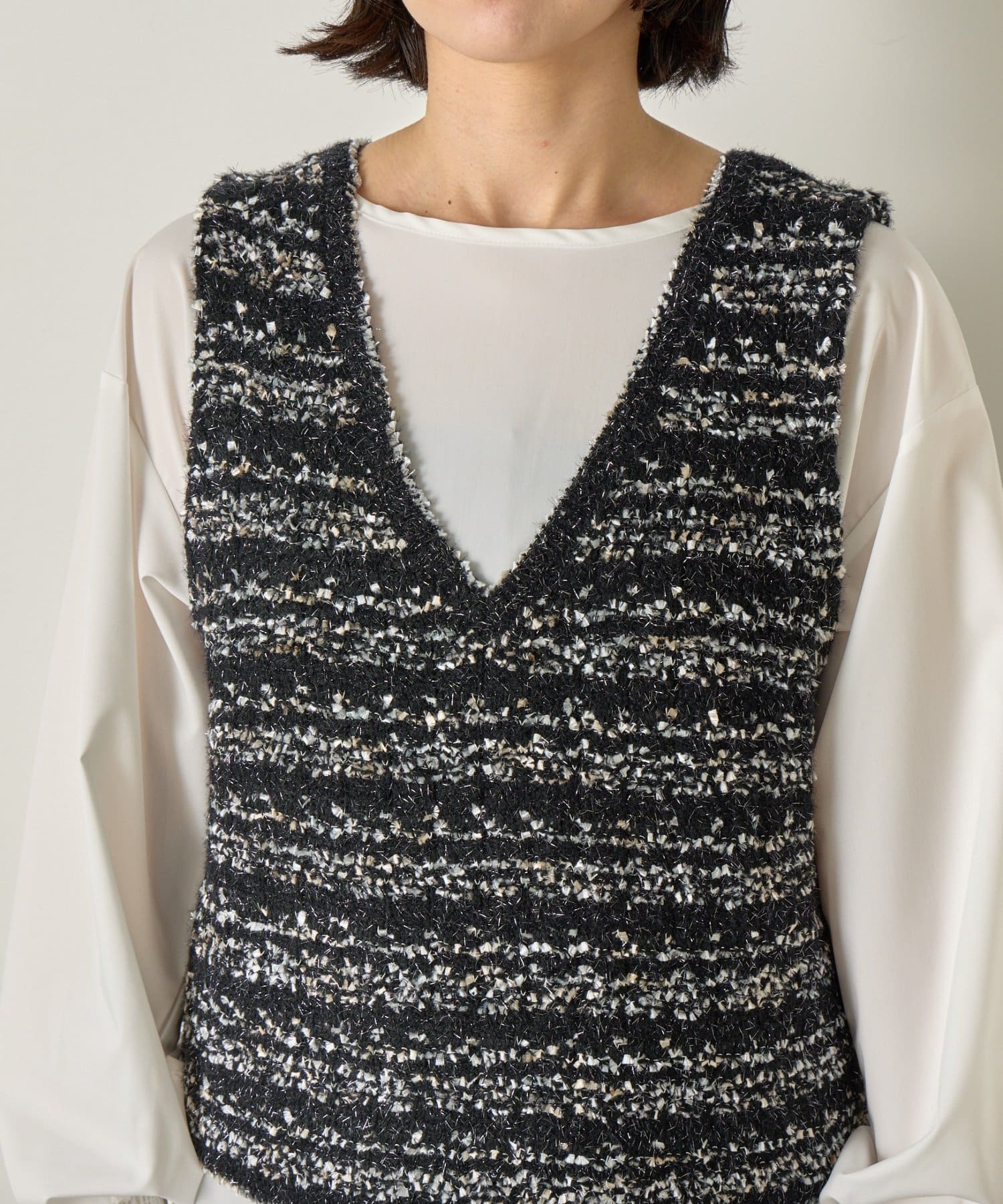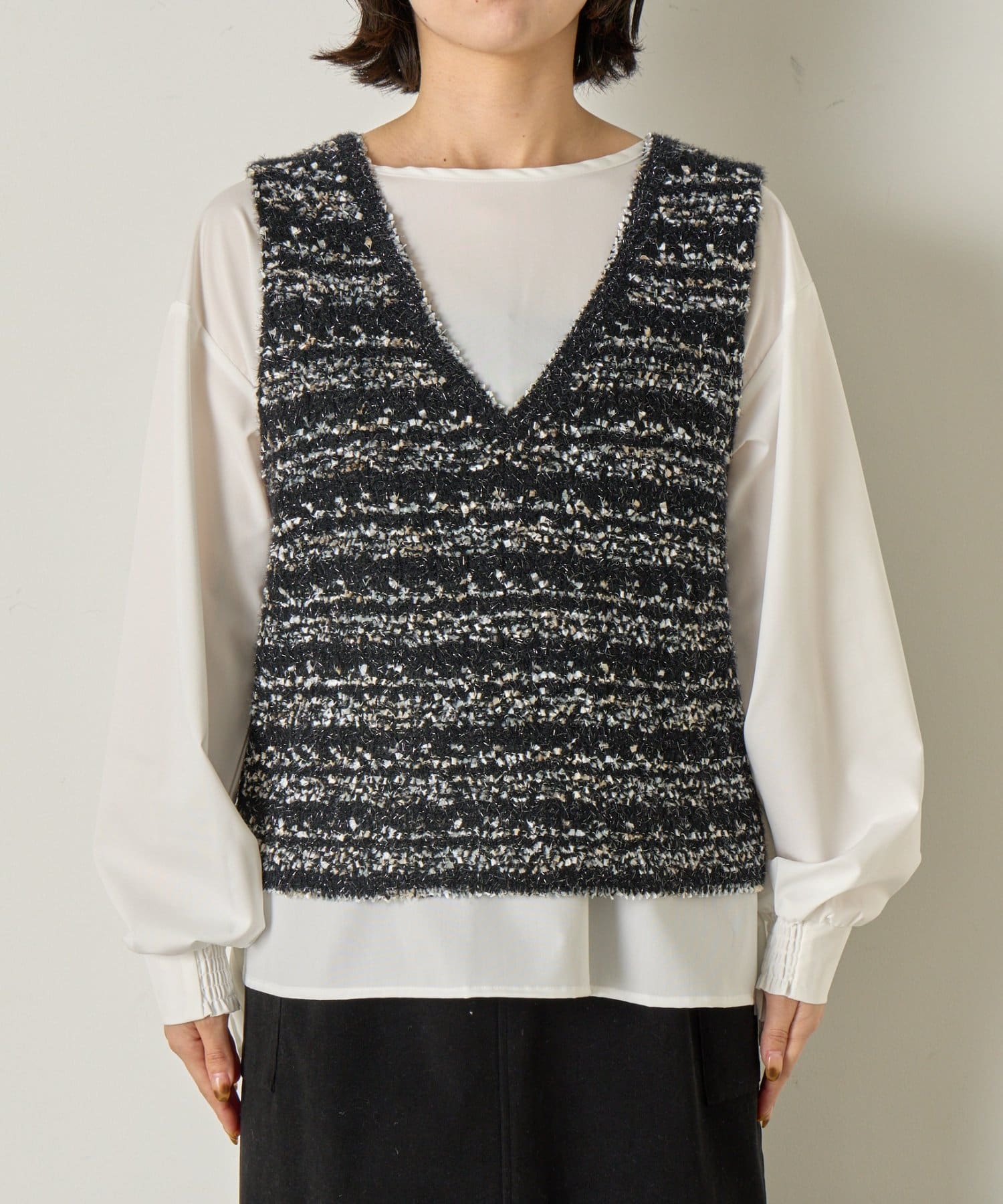 ツイード風ベストセットブラウス