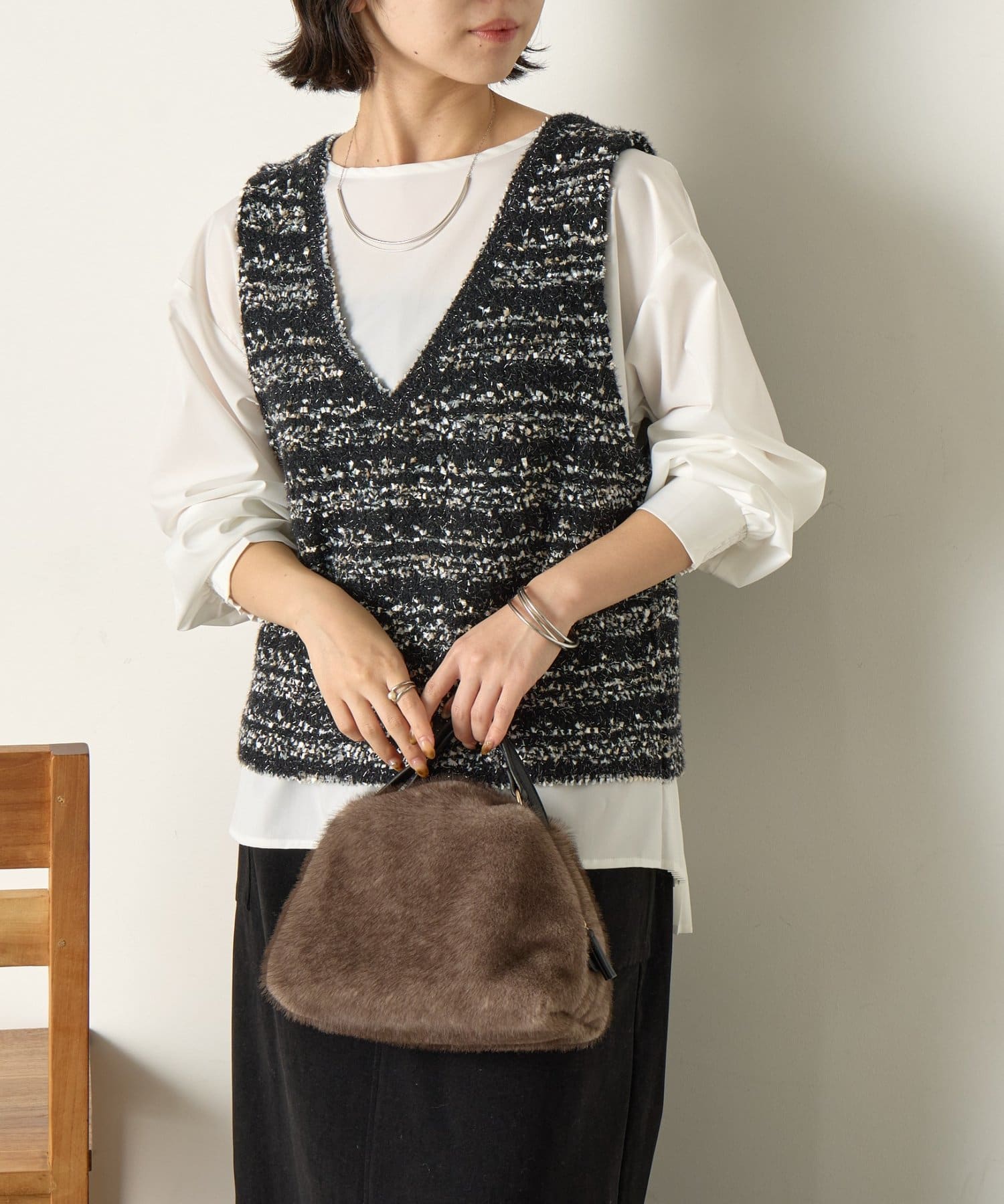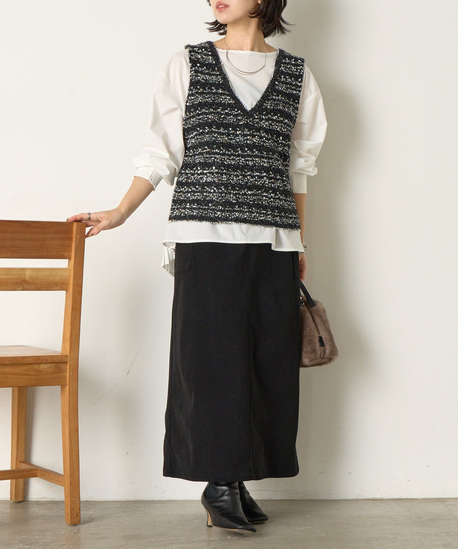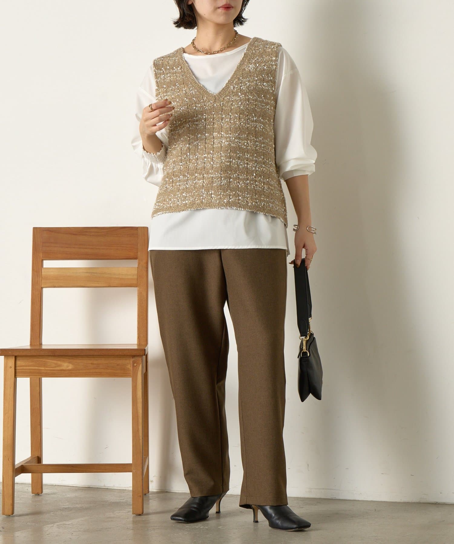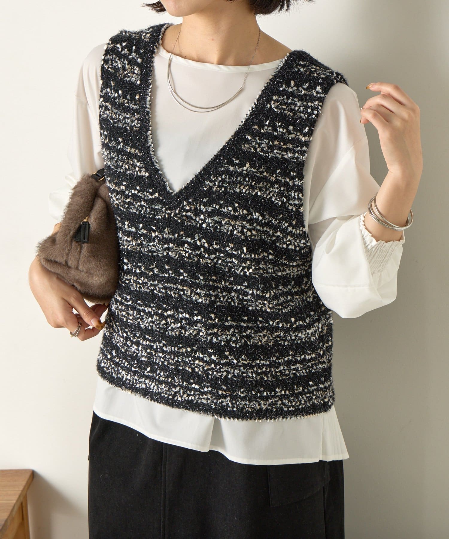 ツイード風ベストセットブラウス