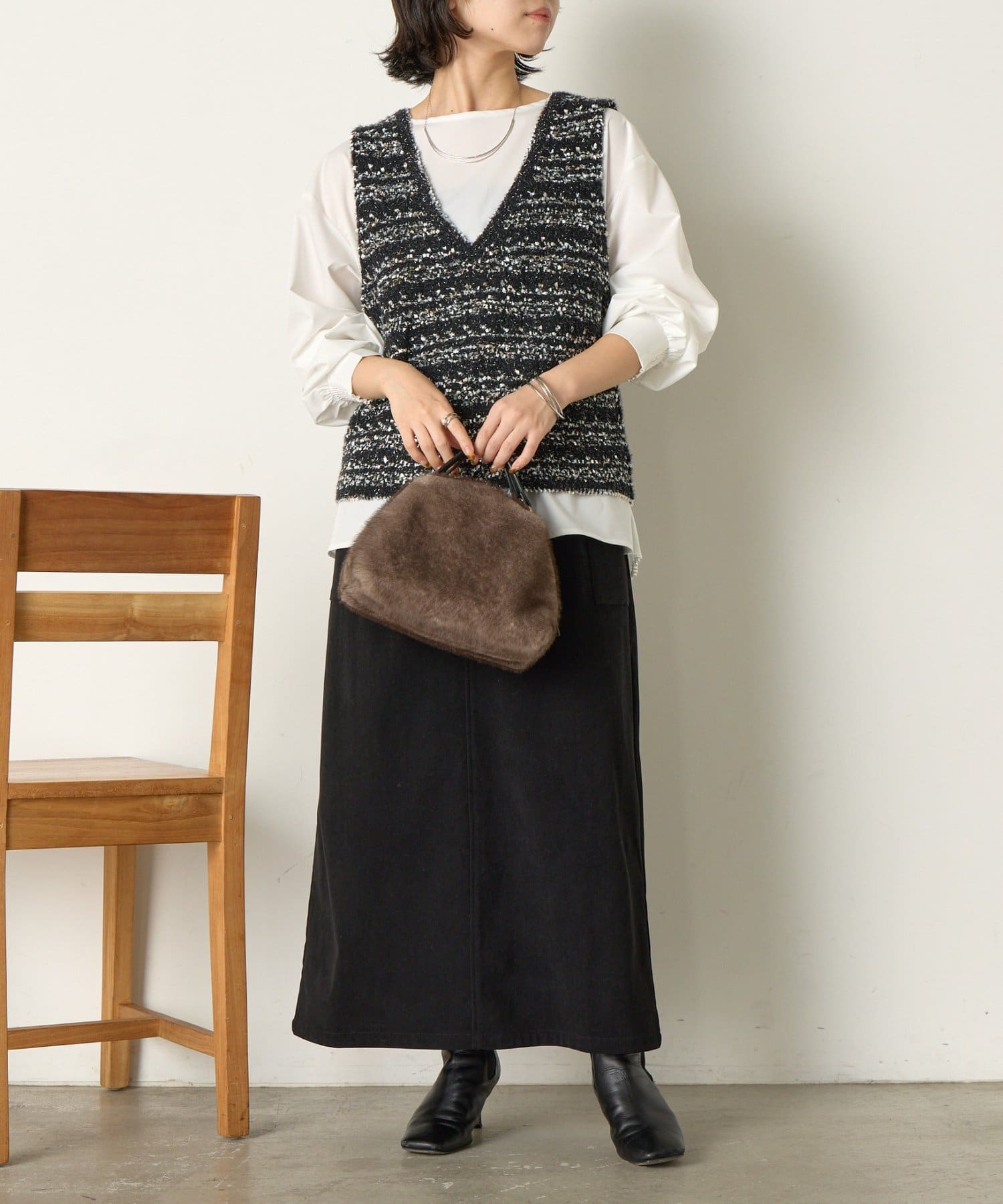 ・秋冬にぴったりなツイード生地で、季節感あふれるコーデが完成!