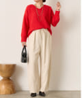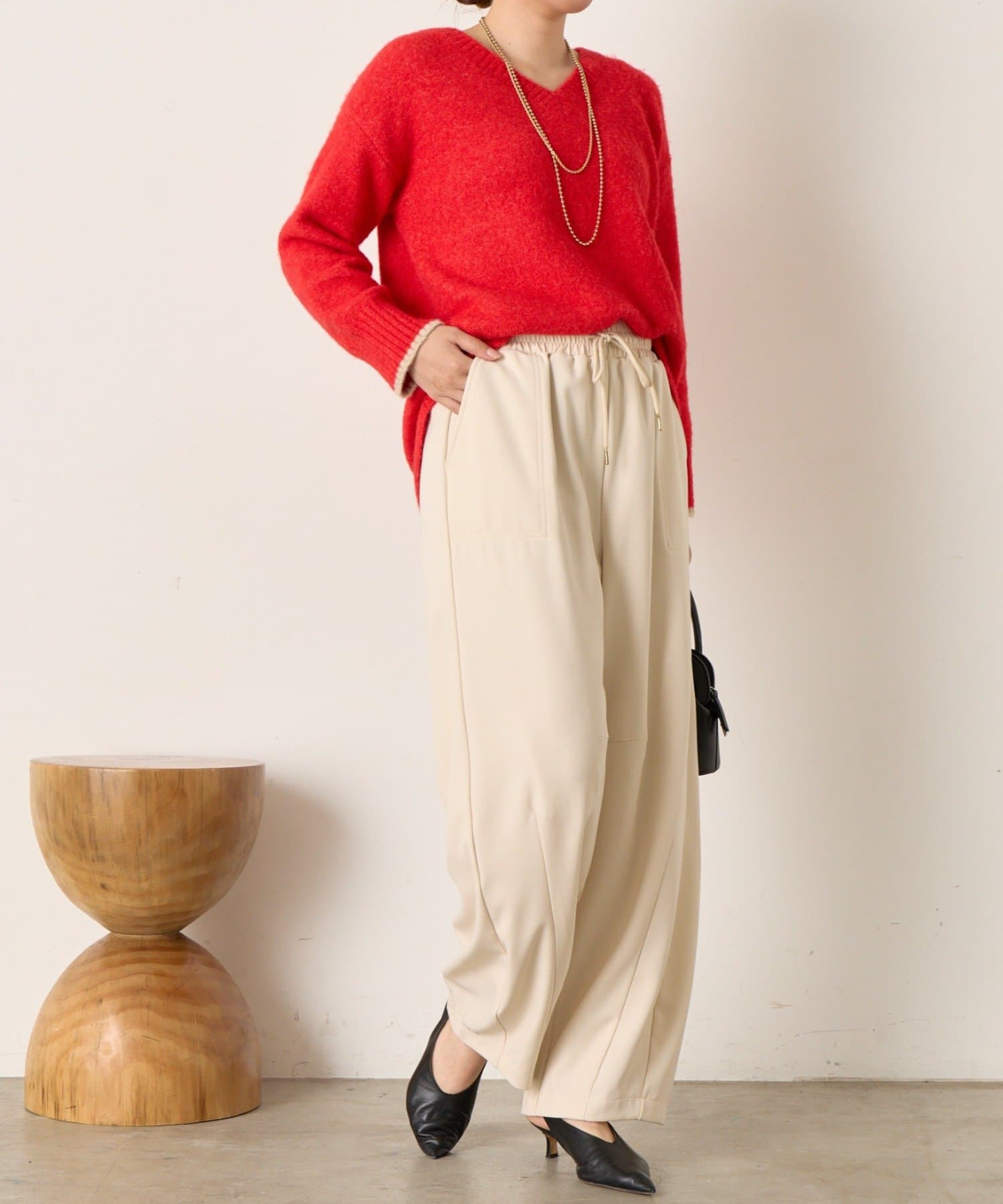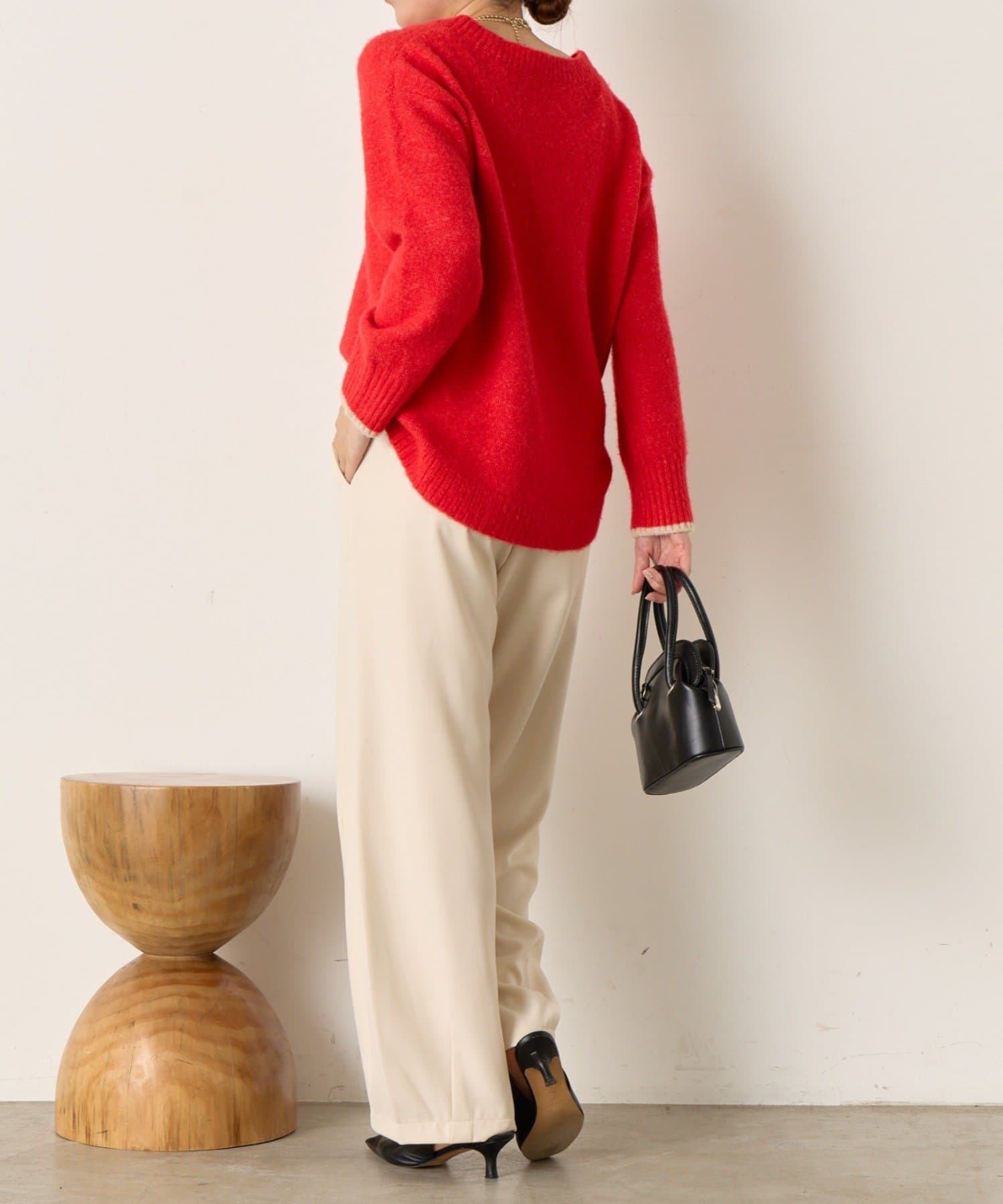 ・程よいゆとりのシルエットで体型カバーも叶い、パンツにもスカートにも合わせやすい万能ニット。