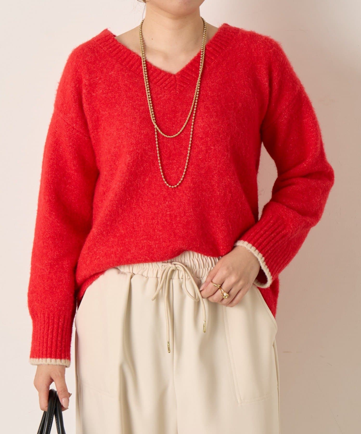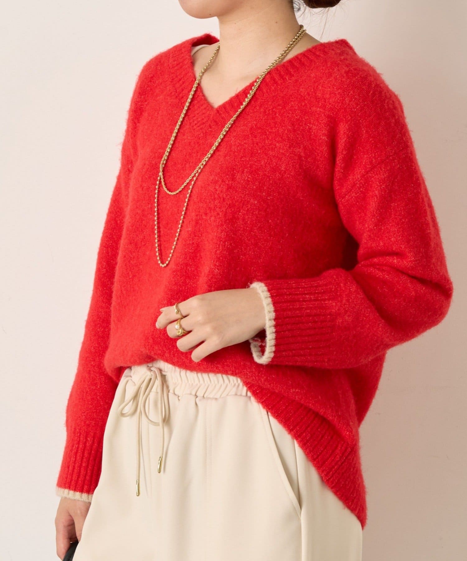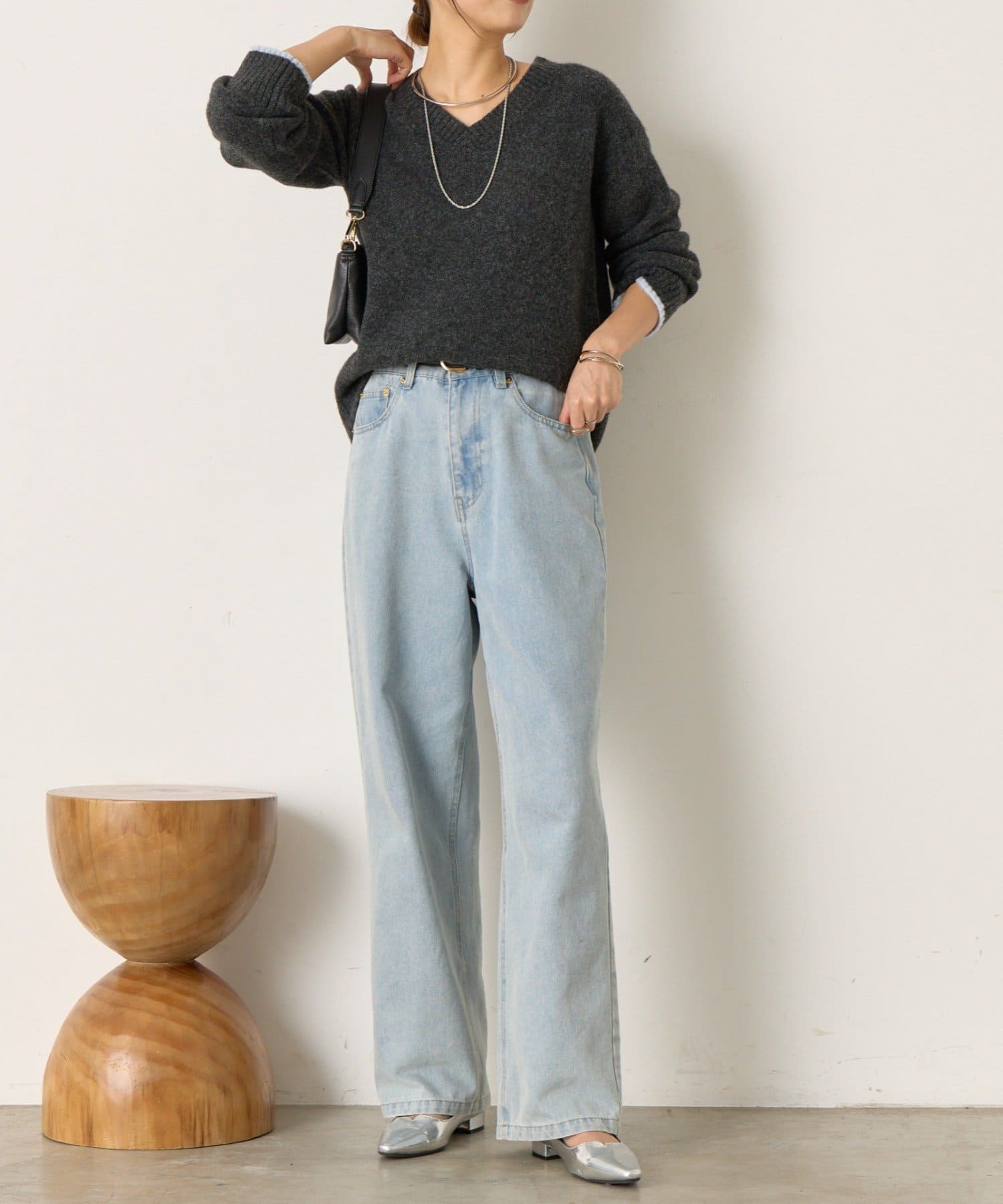・顔まわりをすっきり見せるVネックデザインで、大人の抜け感を演出。