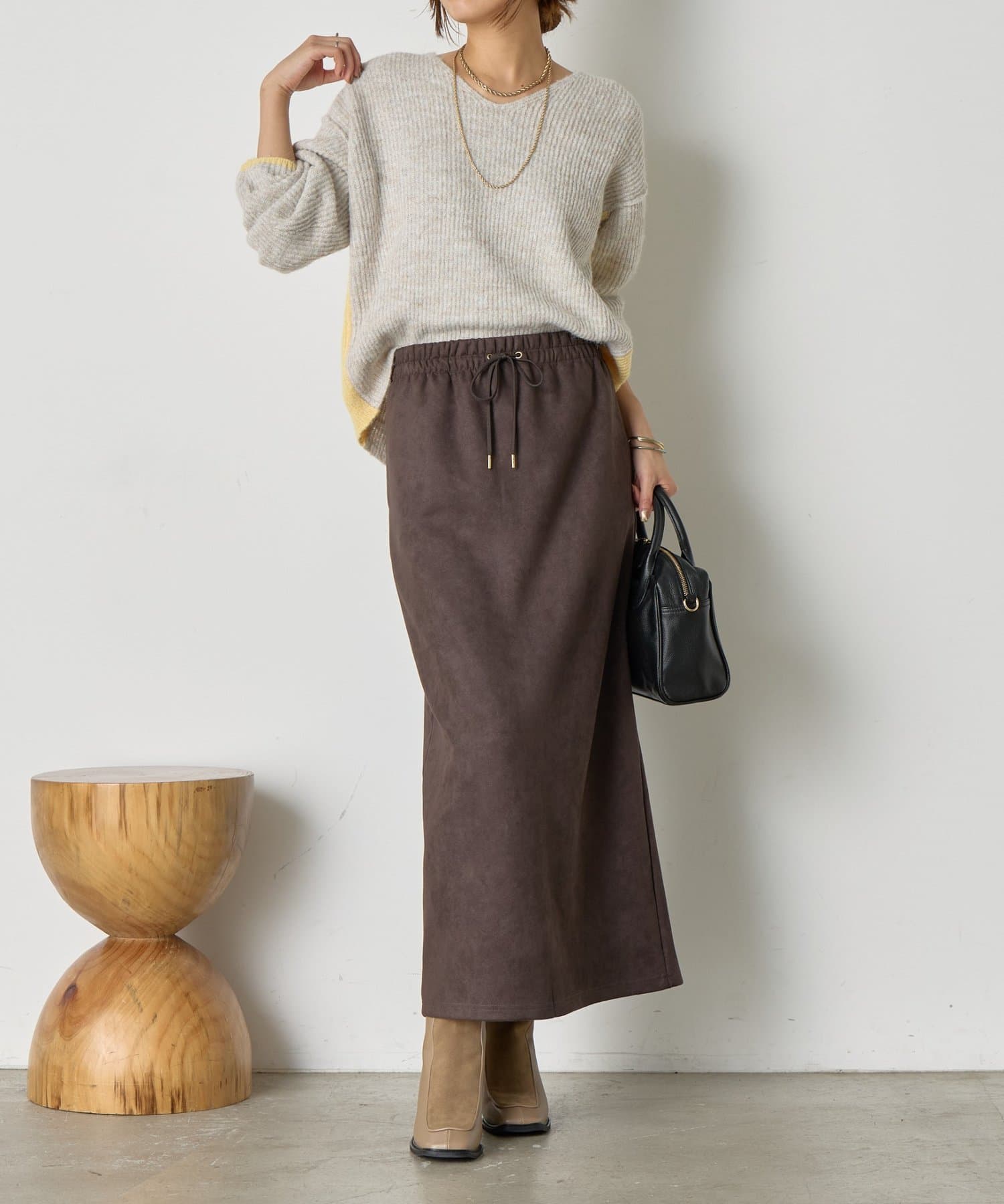 ・一枚で着映えする存在感があり、シンプルなボトムと合わせるだけでコーデが完成。