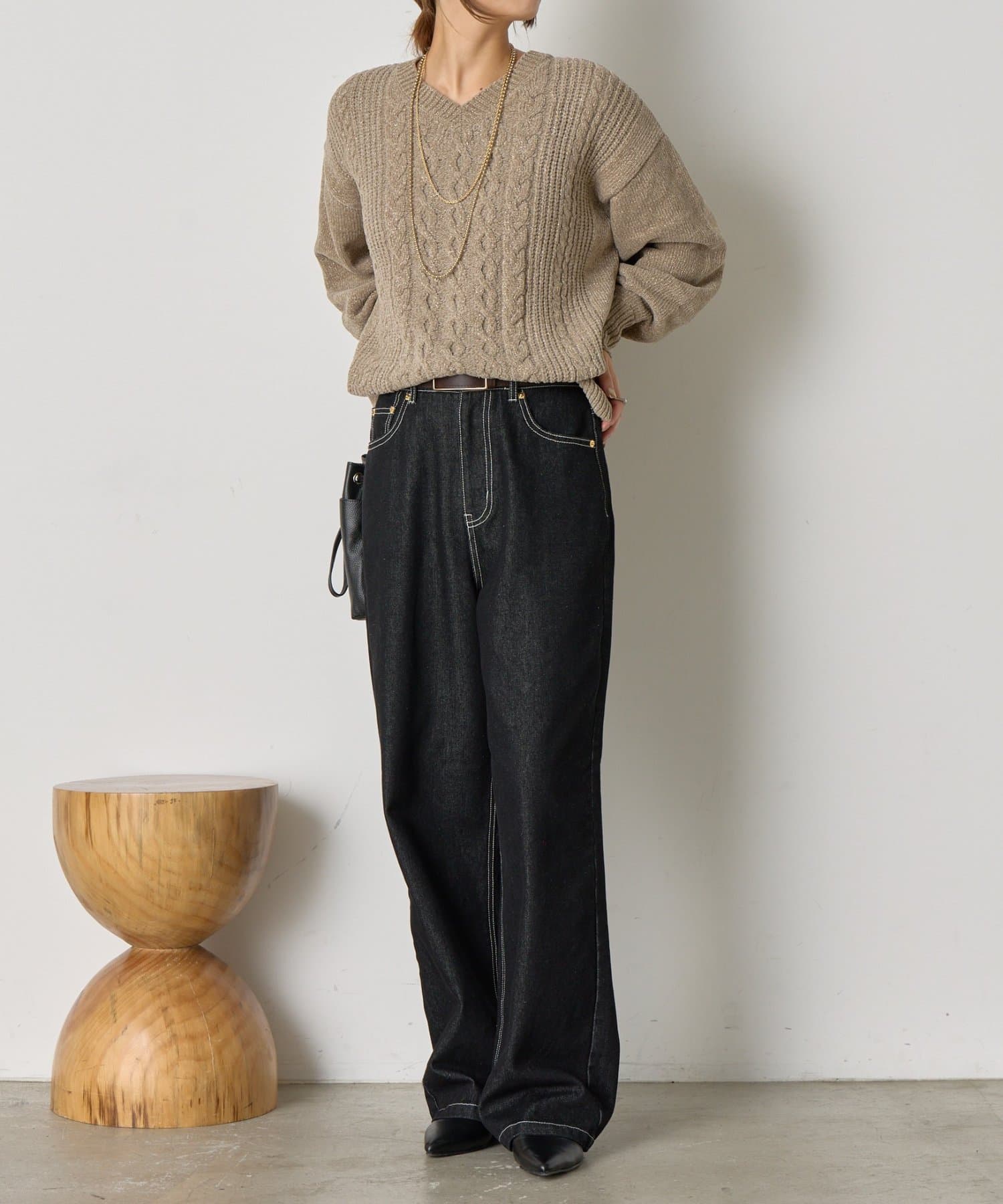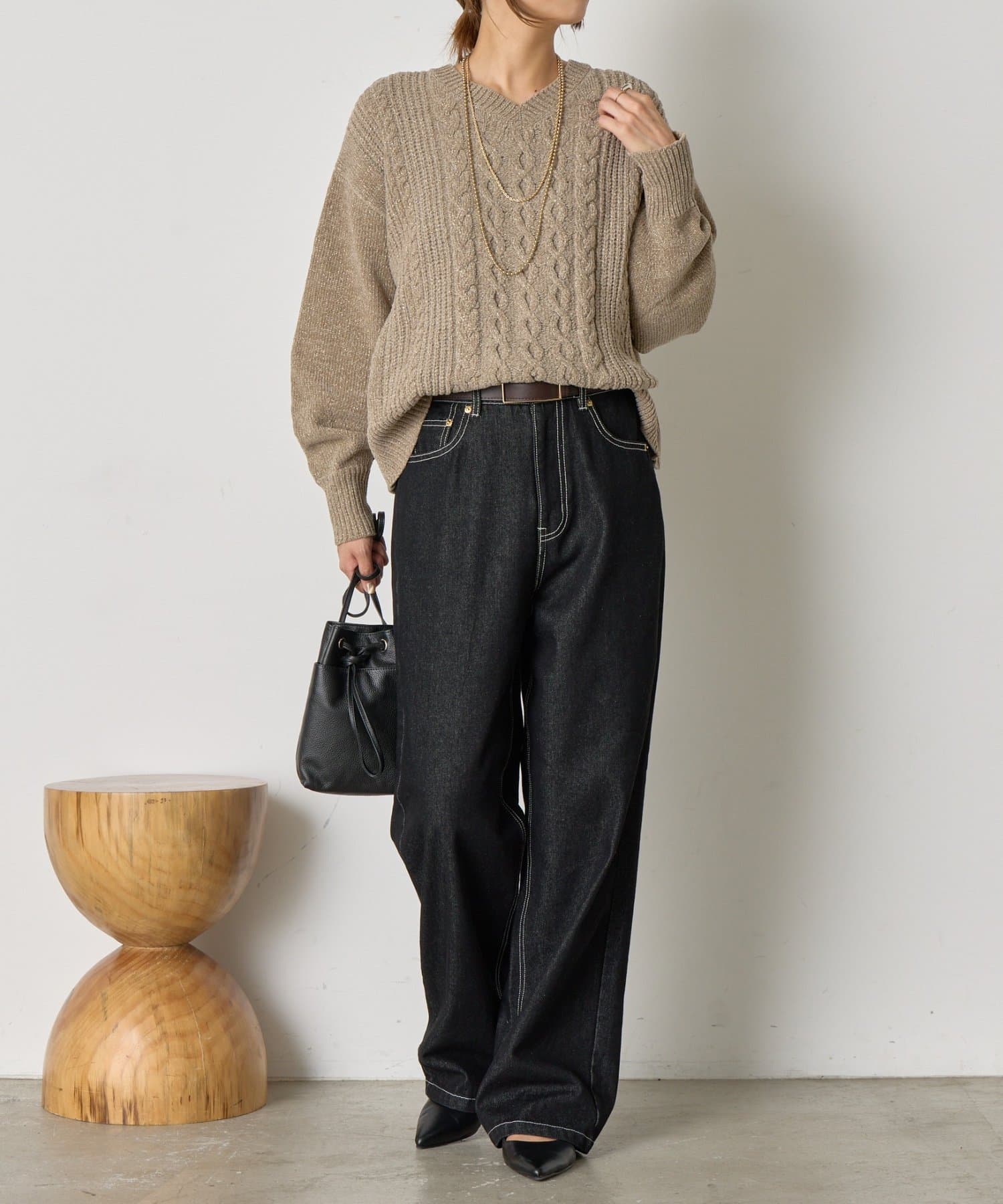 ・首元はすっきり見えするVネックデザインでこなれ見えも叶えます。