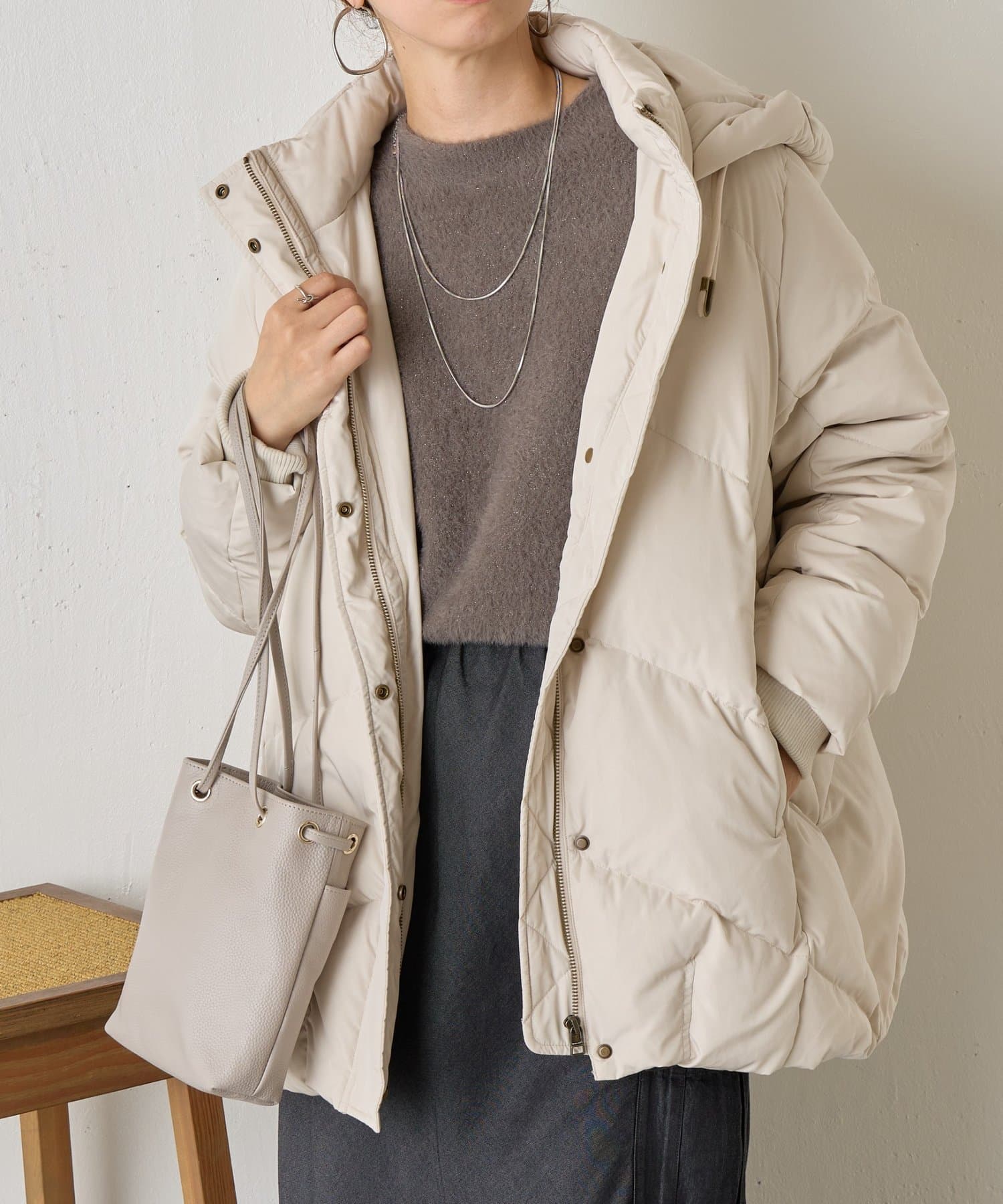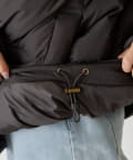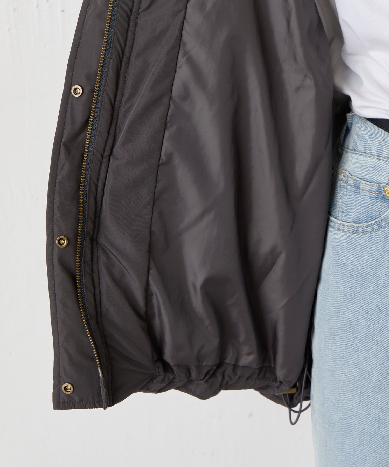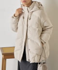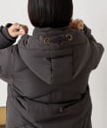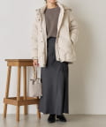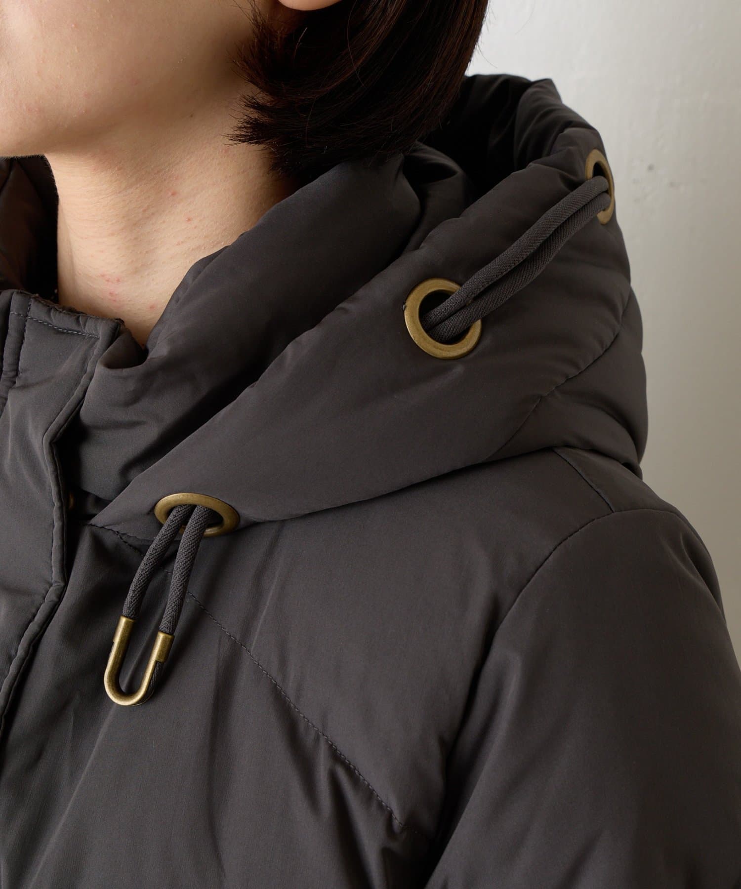 ・フードにあしらわれたゴールドのハトメが、さりげない高級感をプラス。フードのドローコードでシルエットを調整すれば、小顔効果も期待できます。