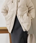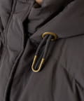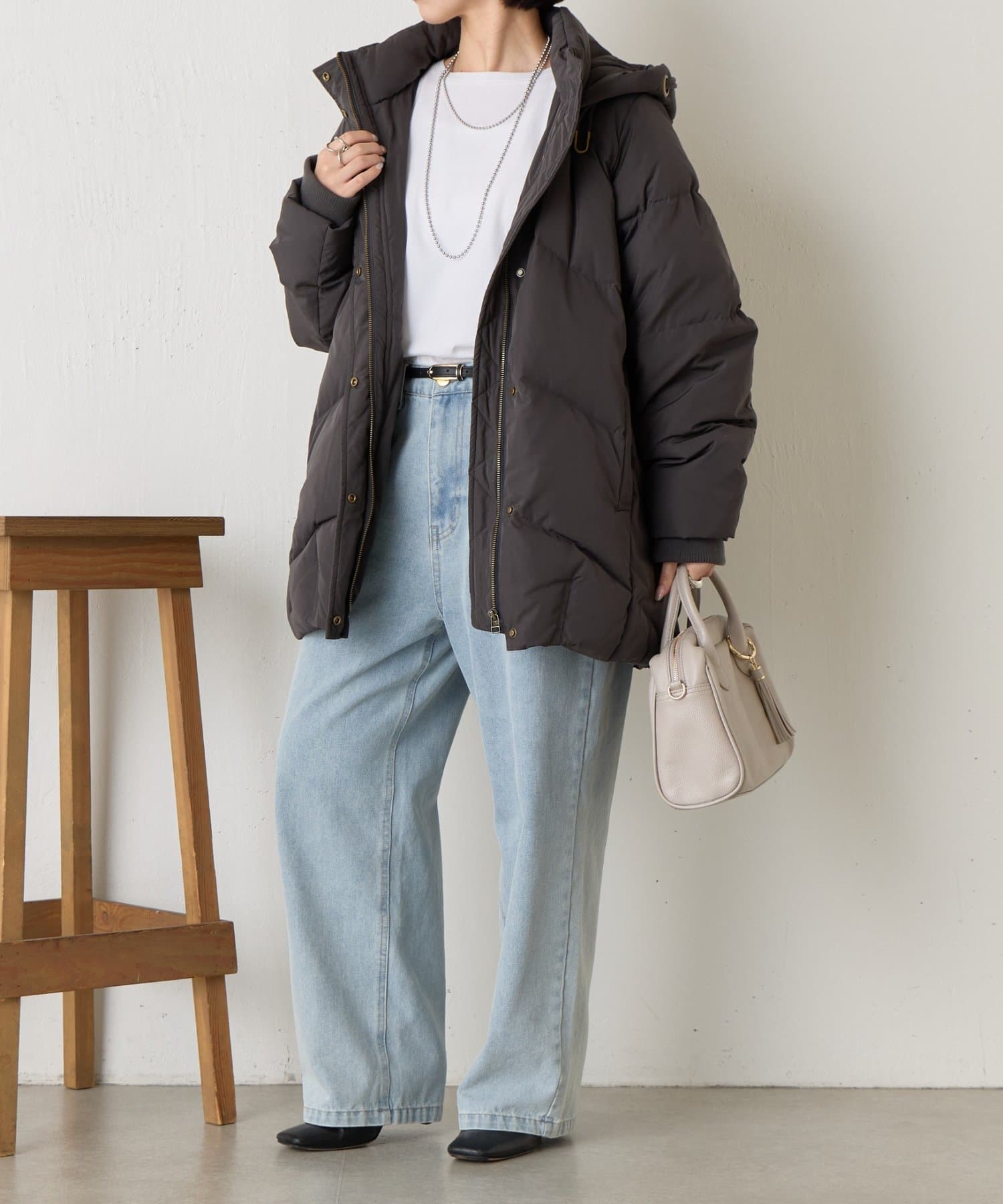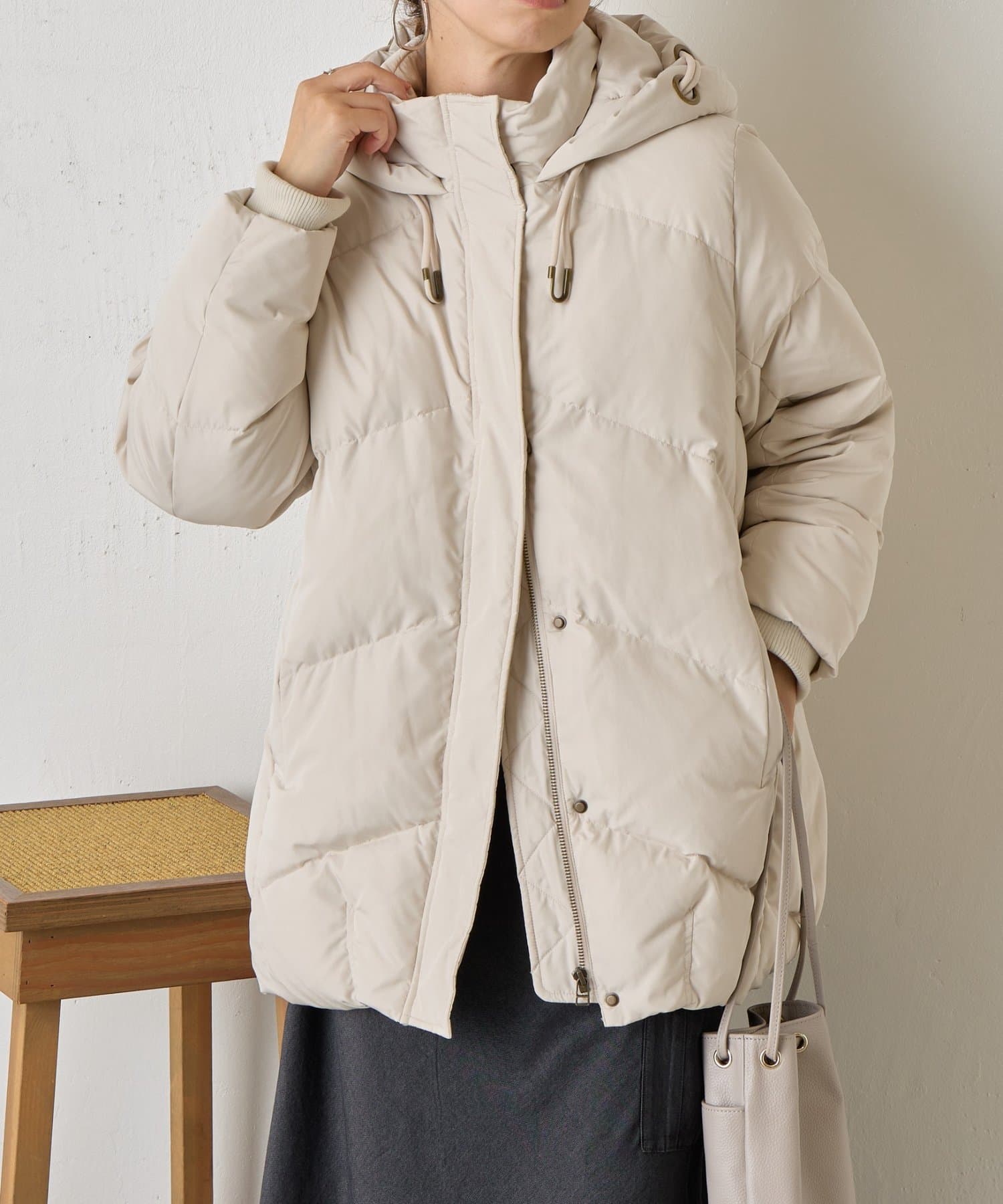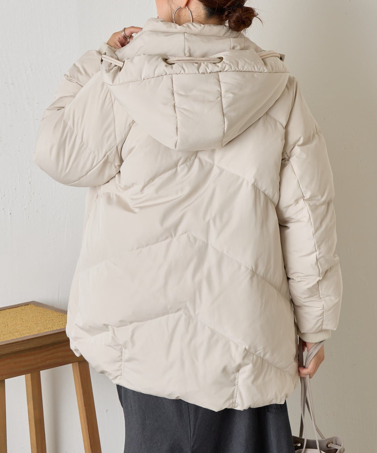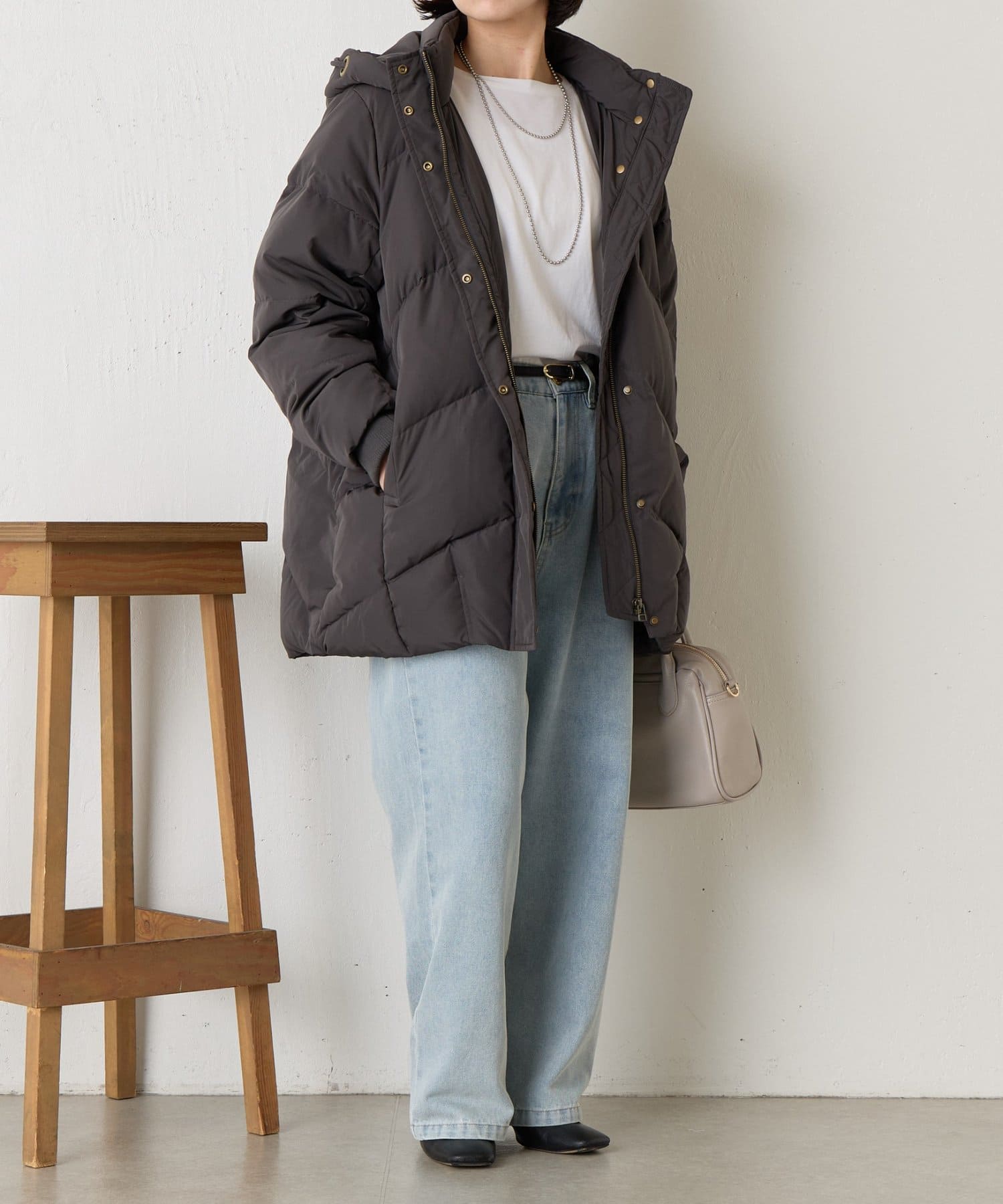 ・フードにあしらわれたゴールドのハトメが、さりげない高級感をプラス。フードのドローコードでシルエットを調整すれば、小顔効果も期待できます。