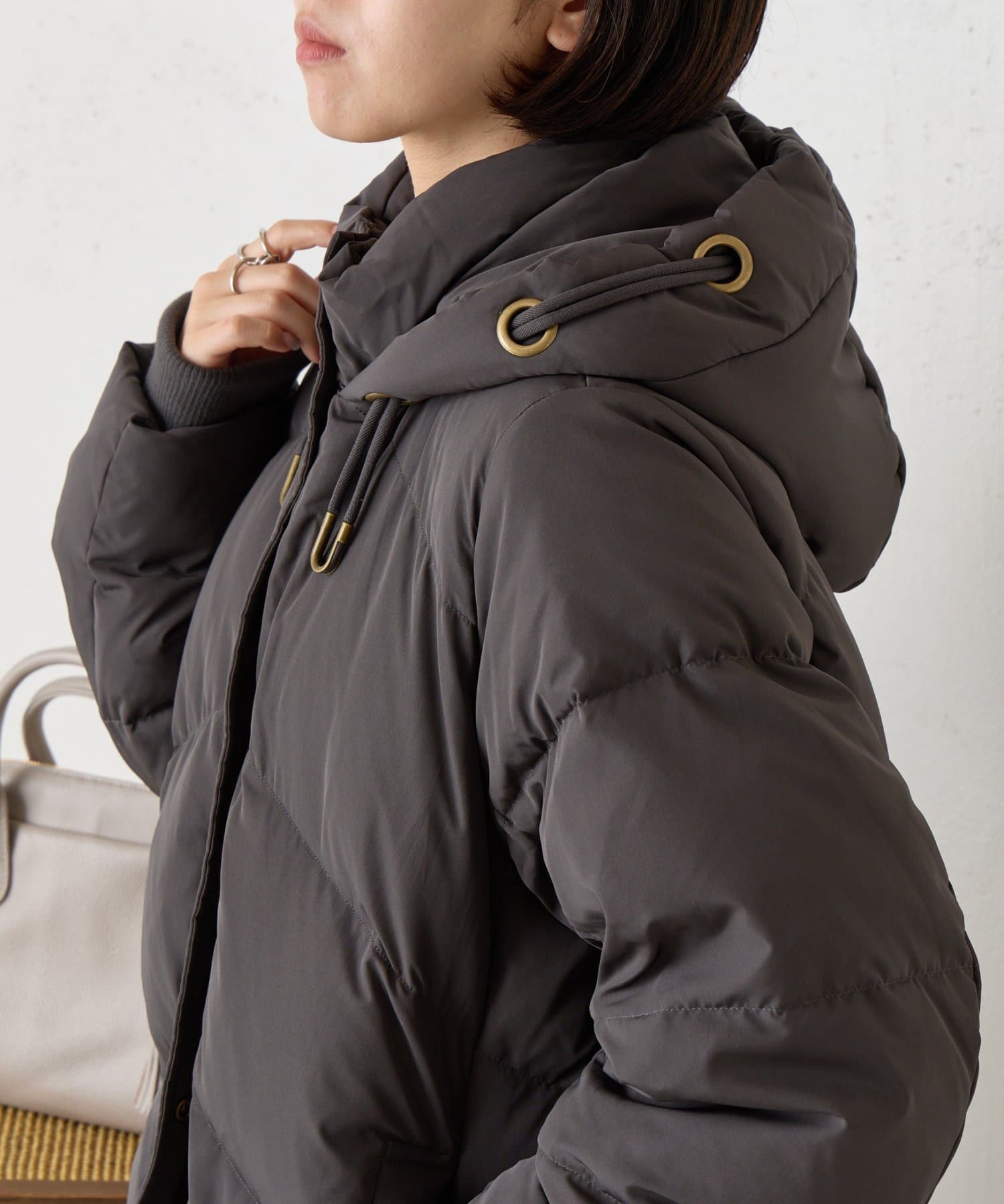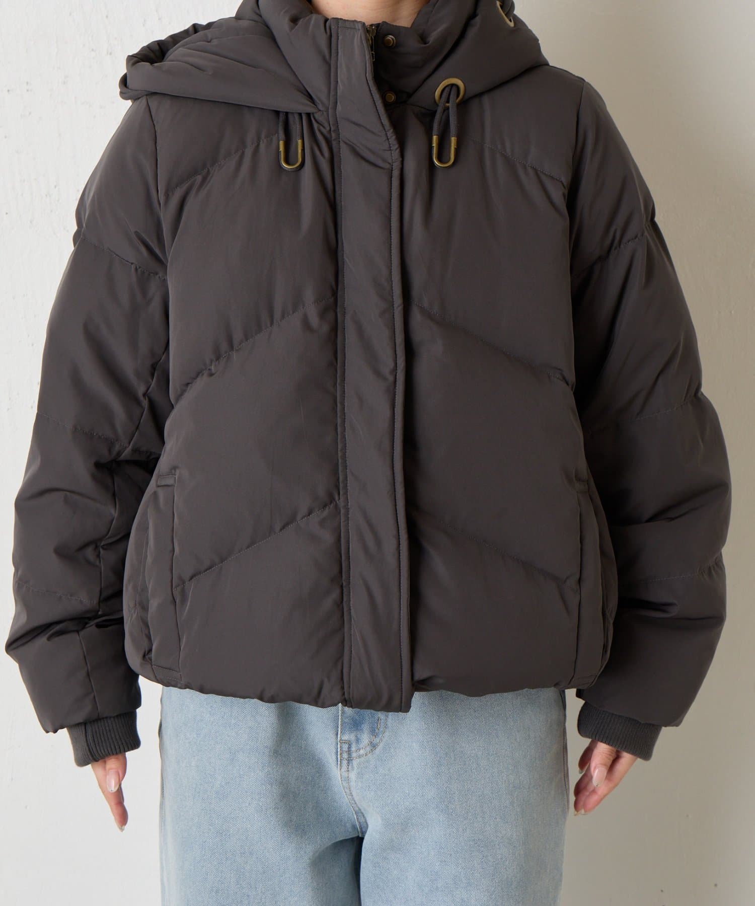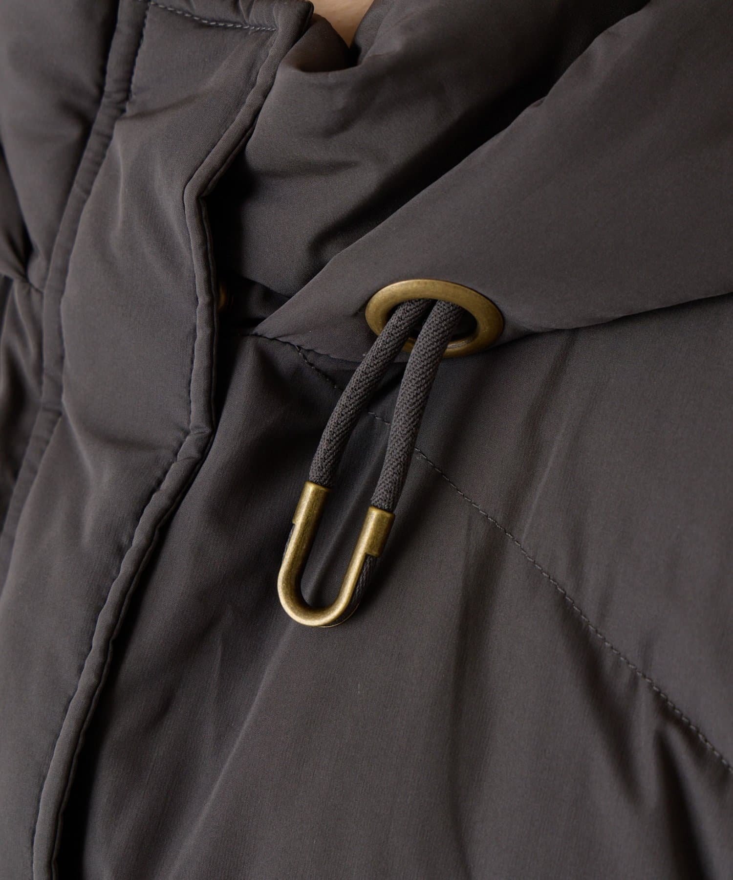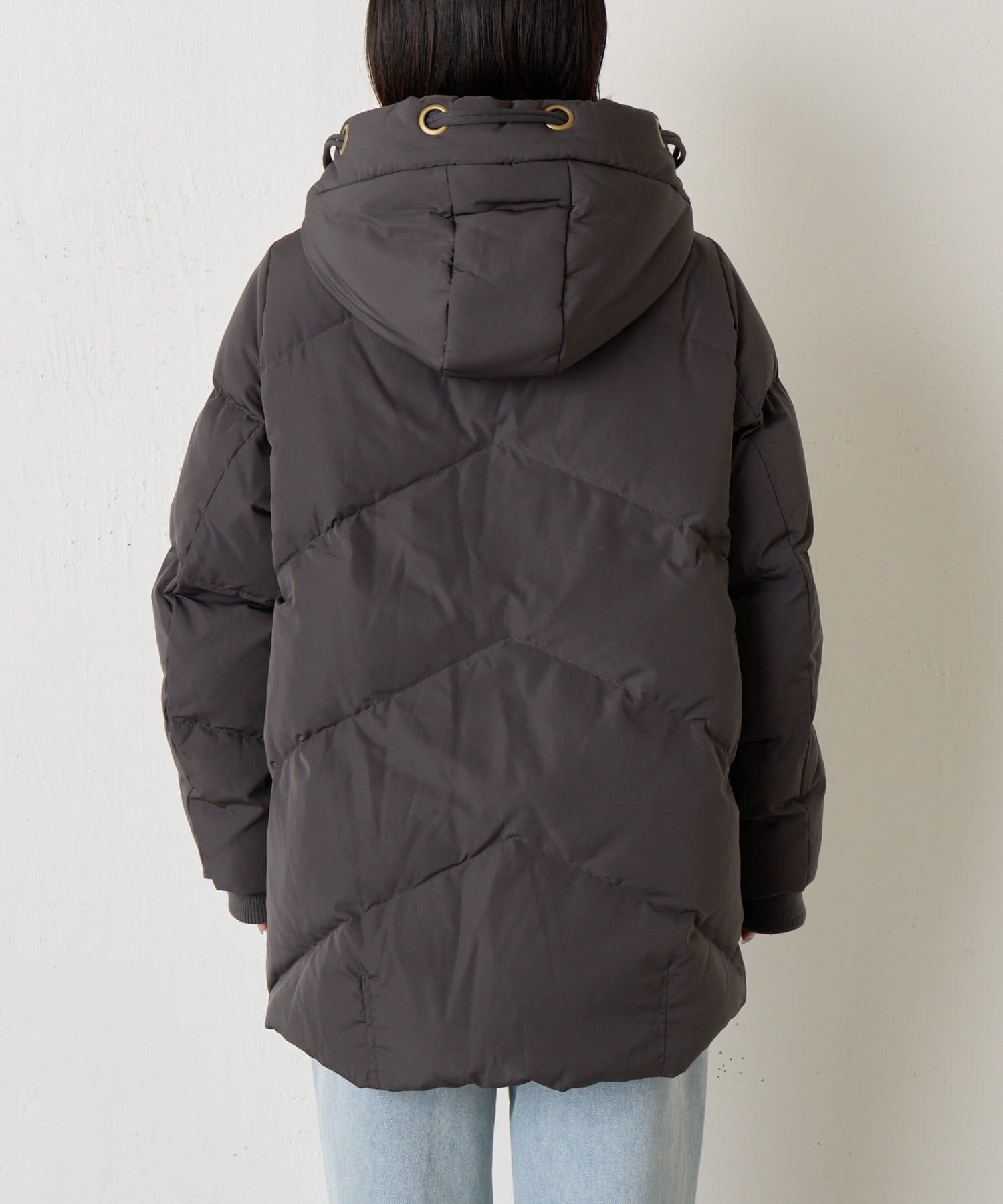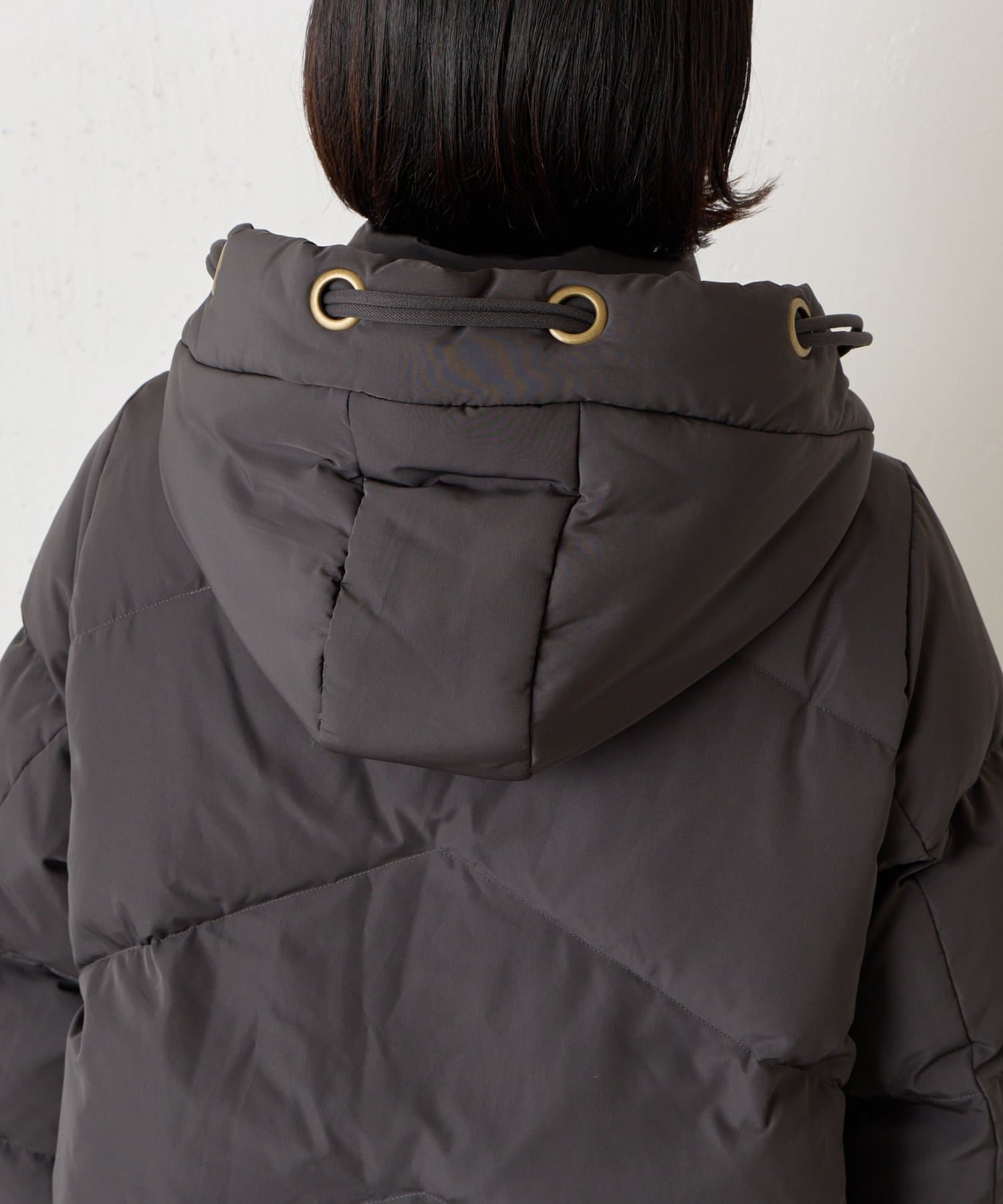 ・フードのハトメデザインがスタイリッシュなスタイリッシュなフーデッドダウンジャケット。