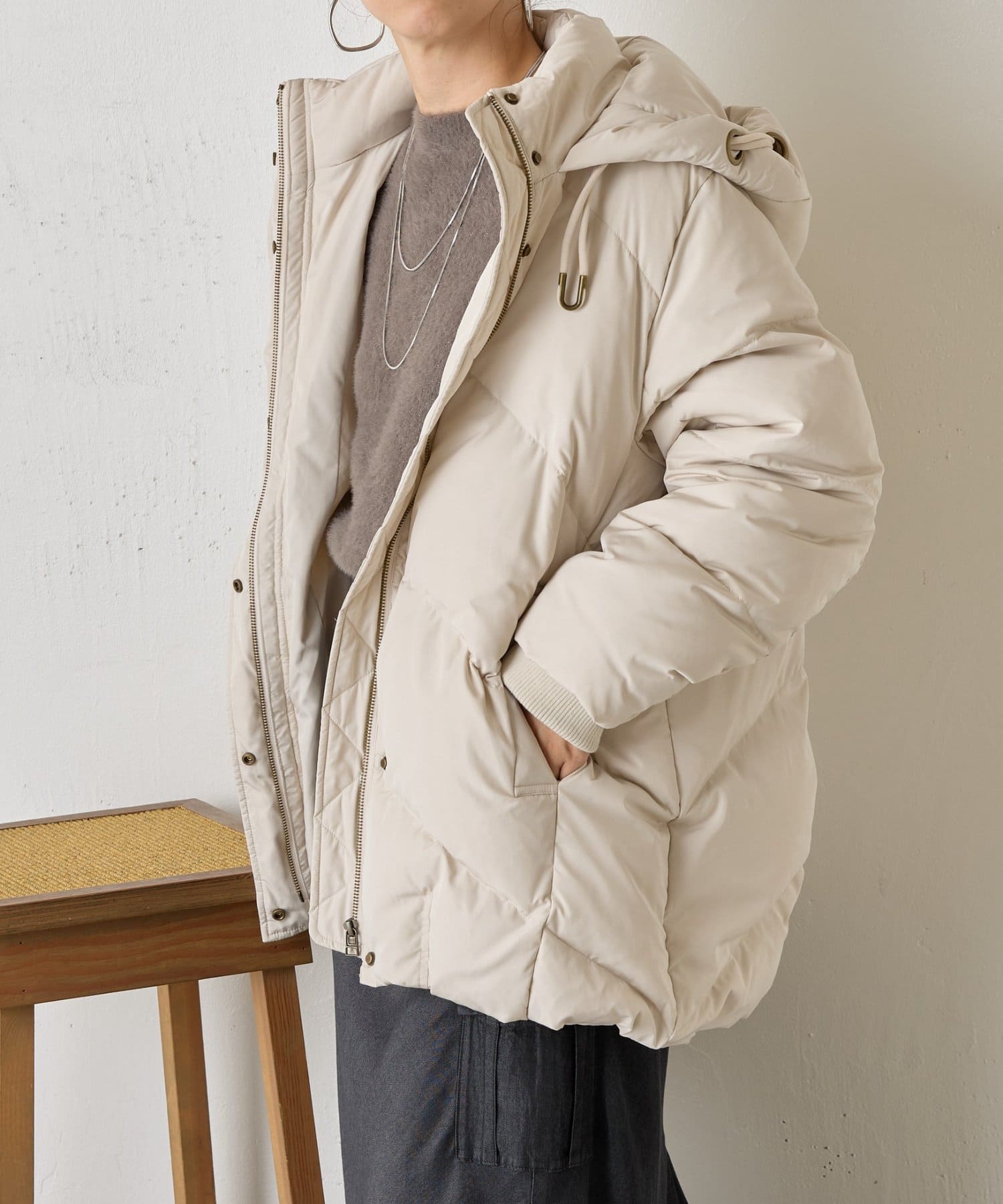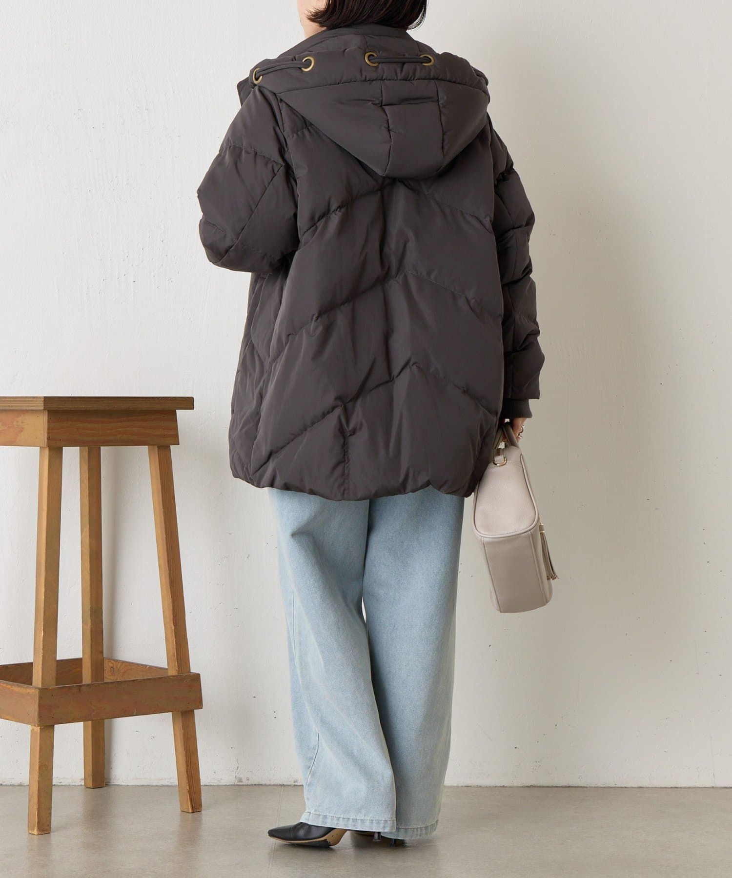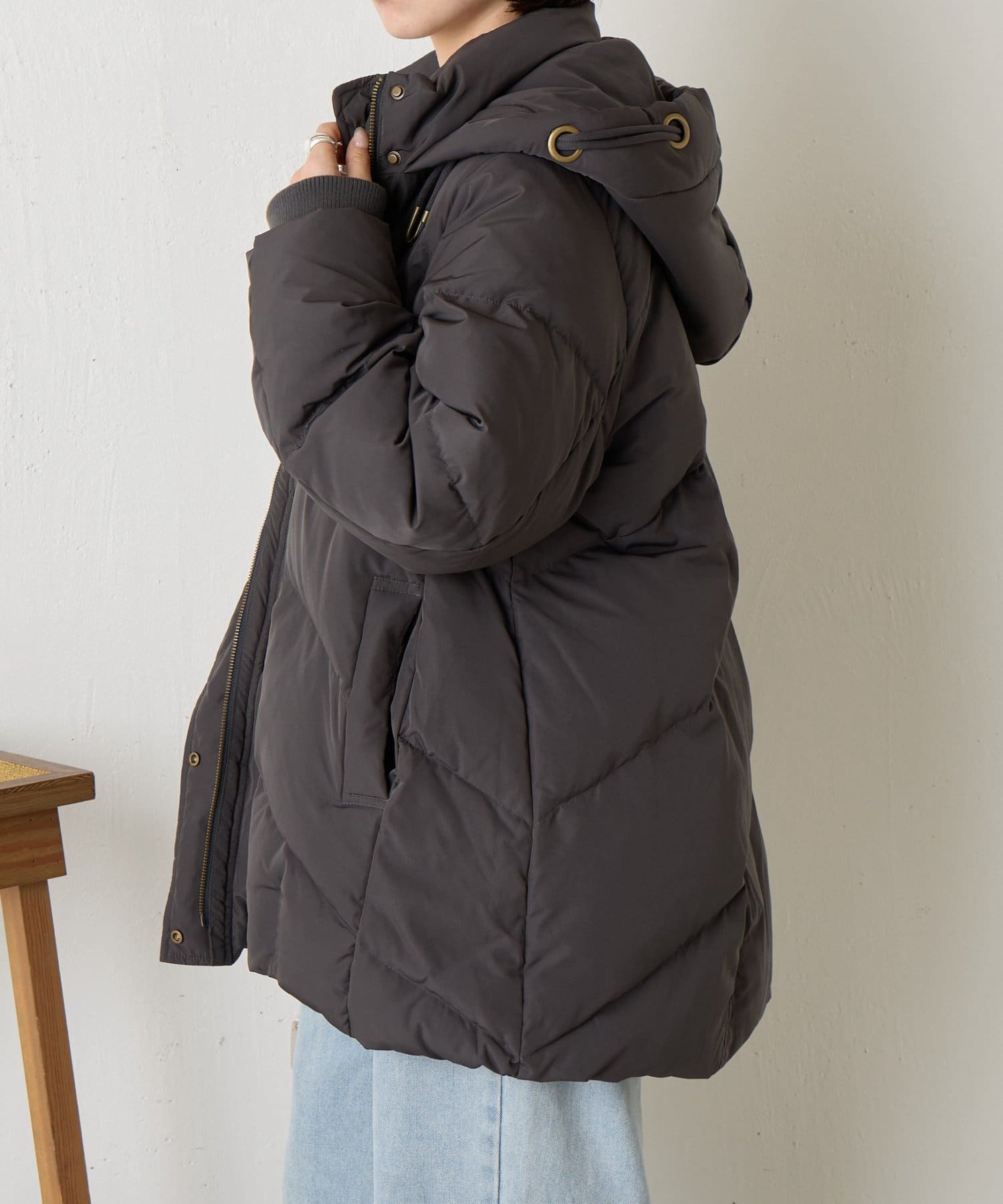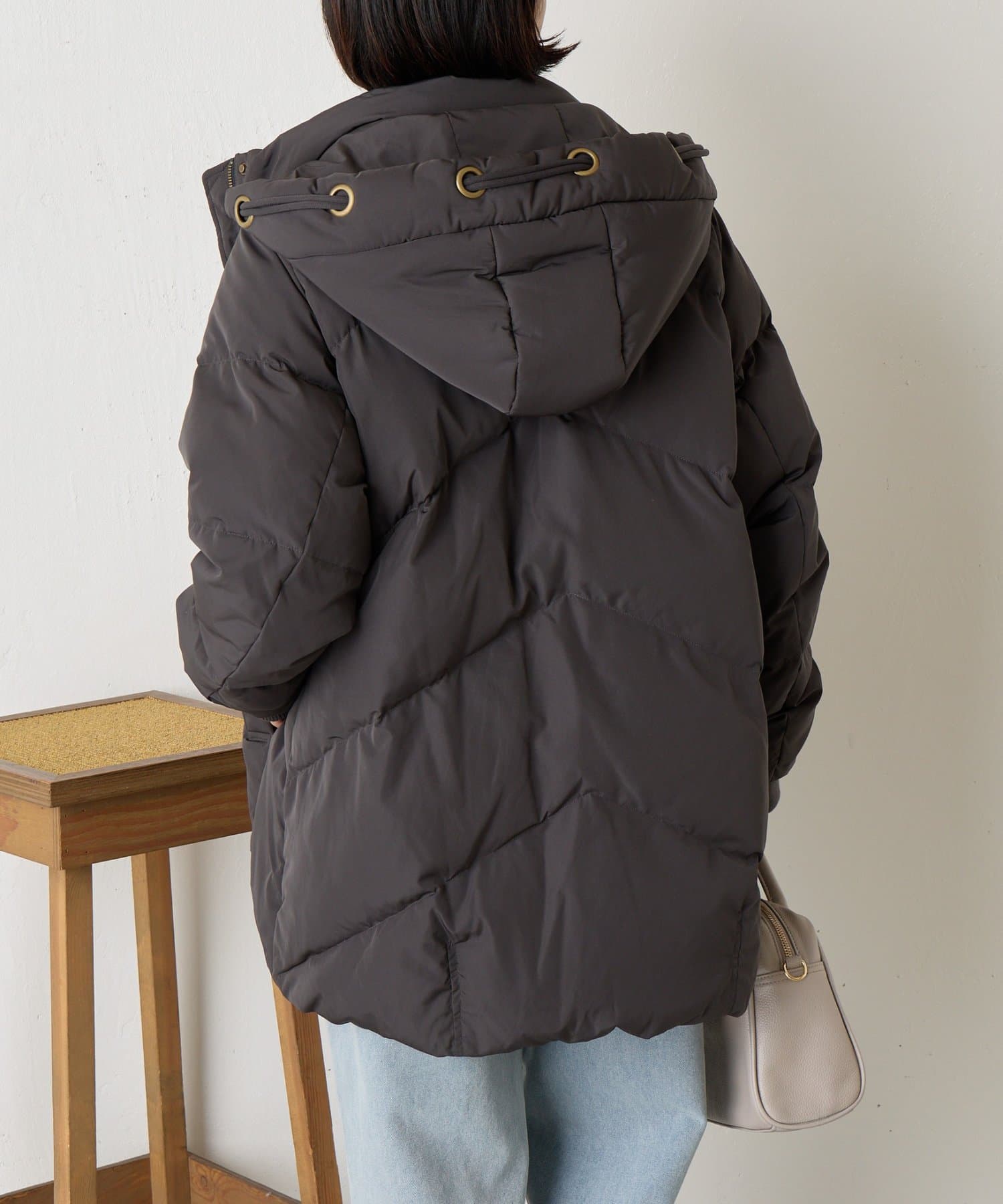 ・フードのハトメデザインがスタイリッシュなスタイリッシュなフーデッドダウンジャケット。