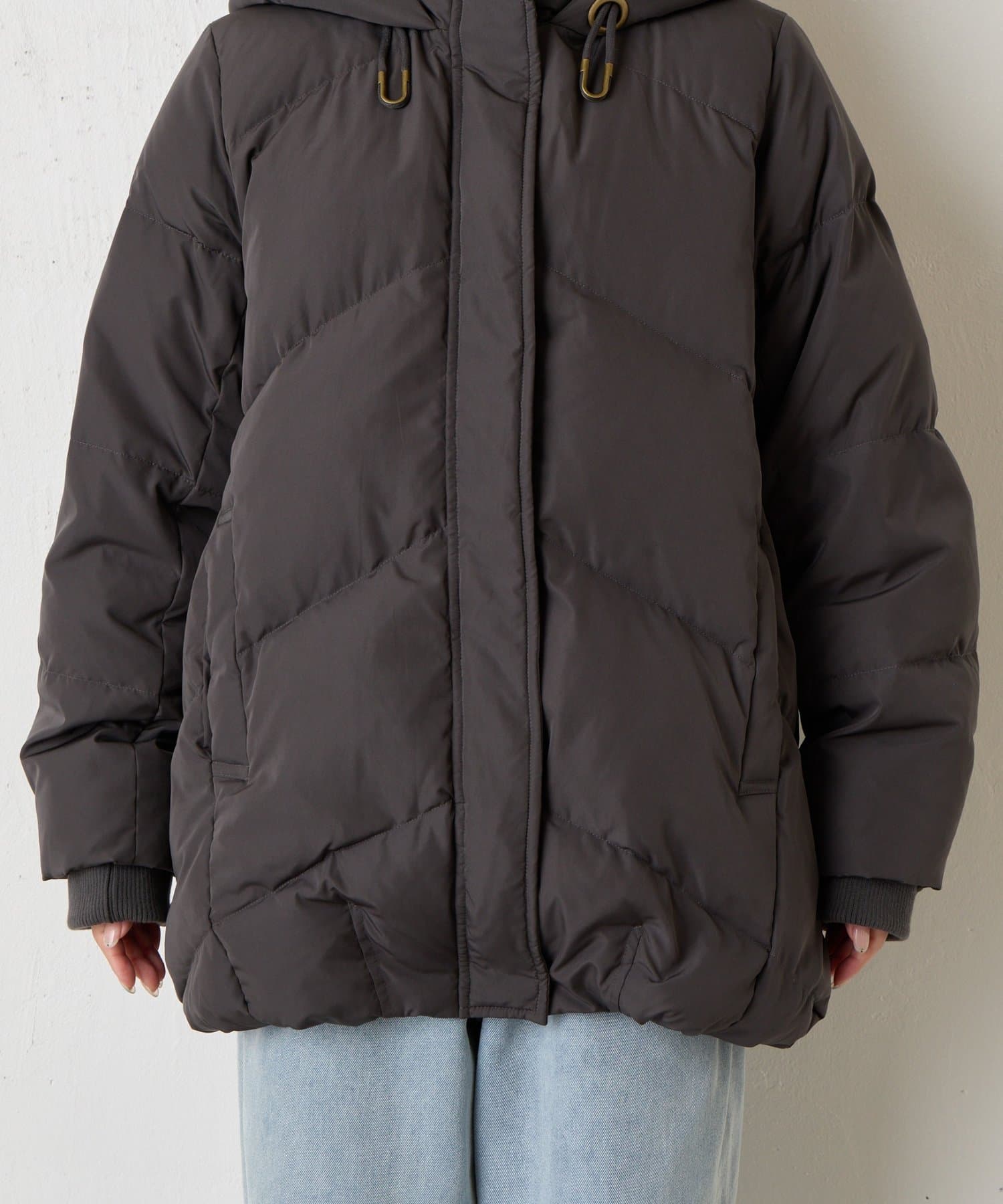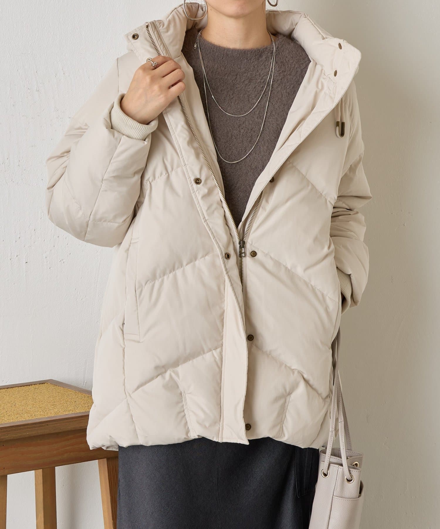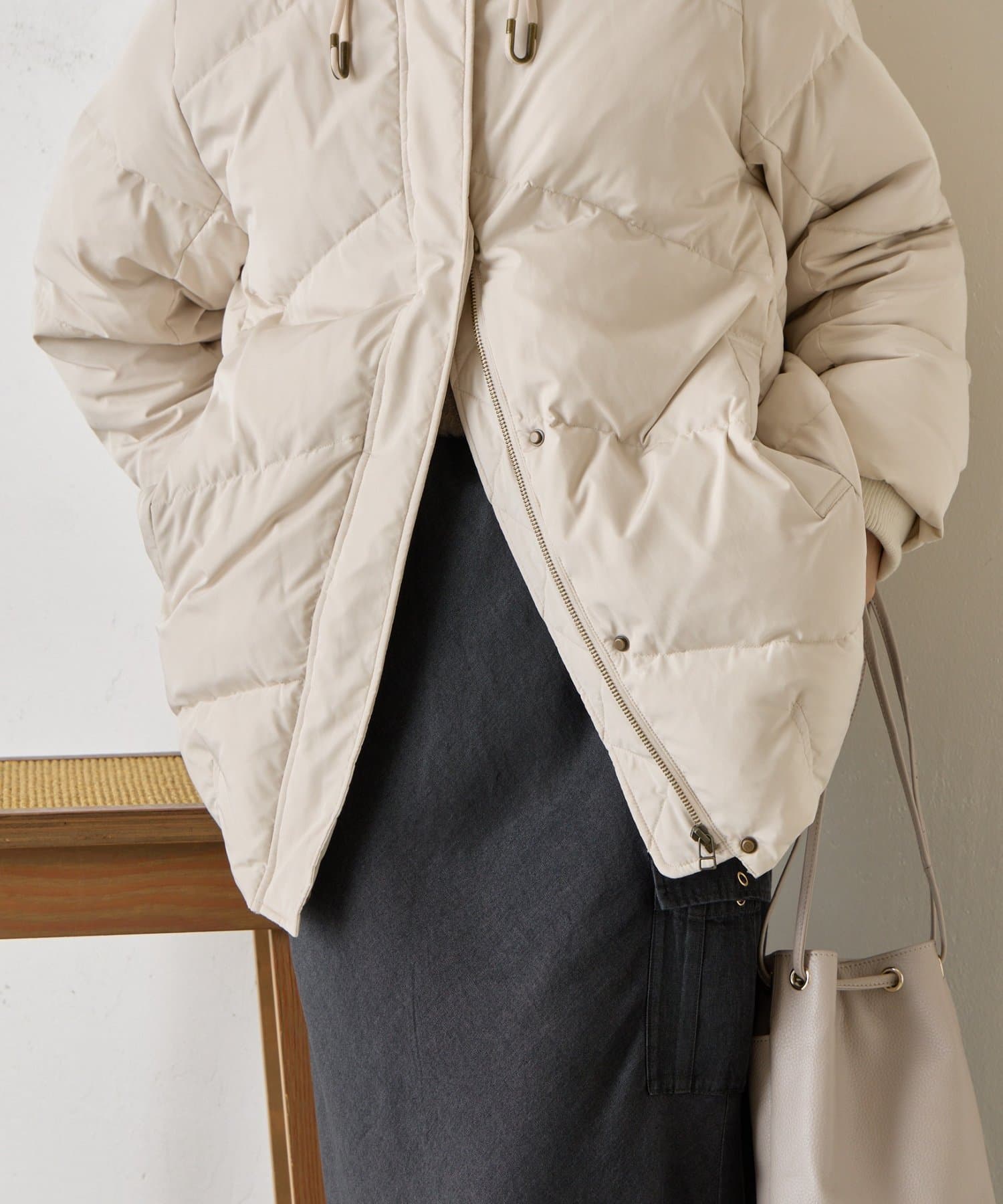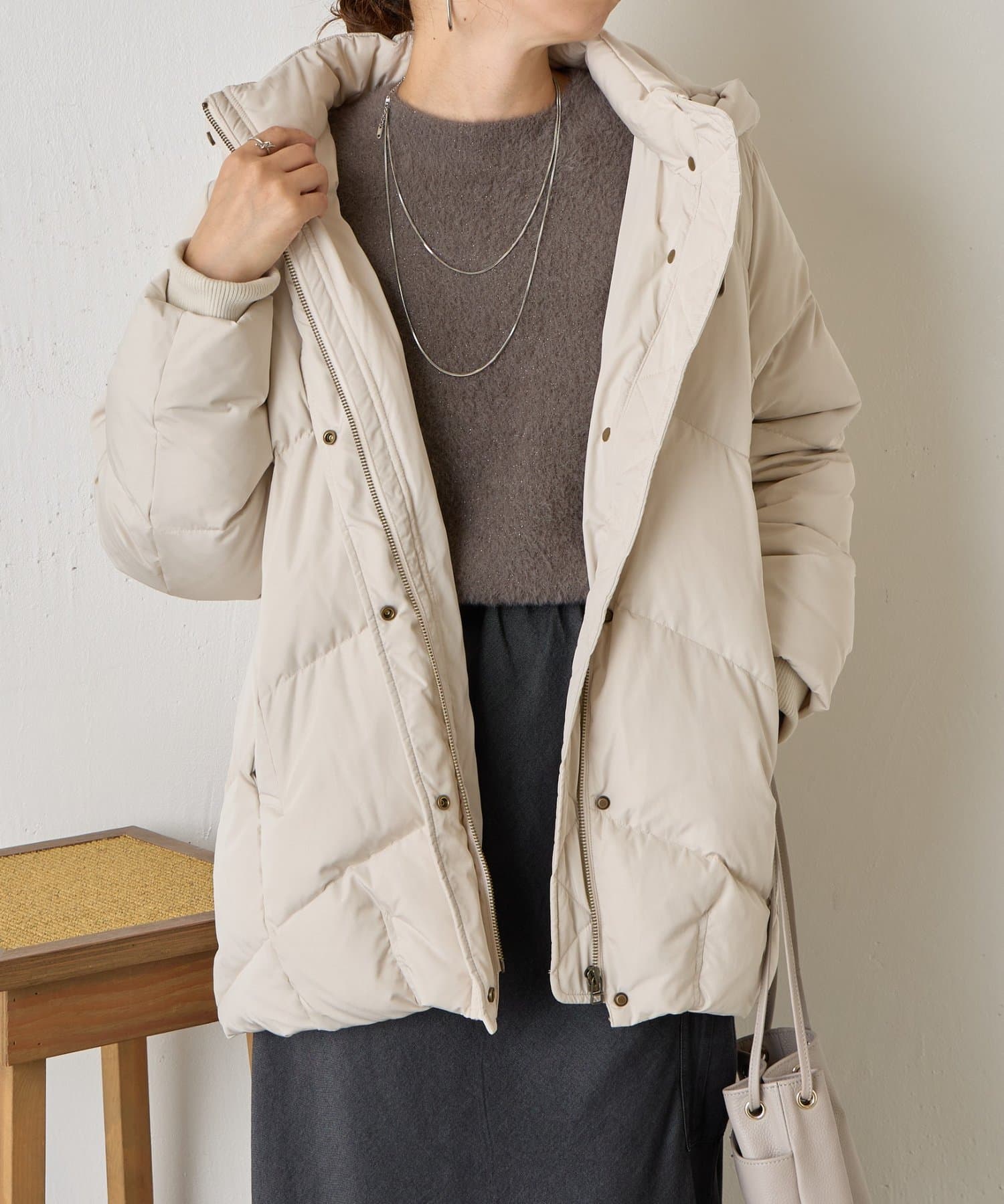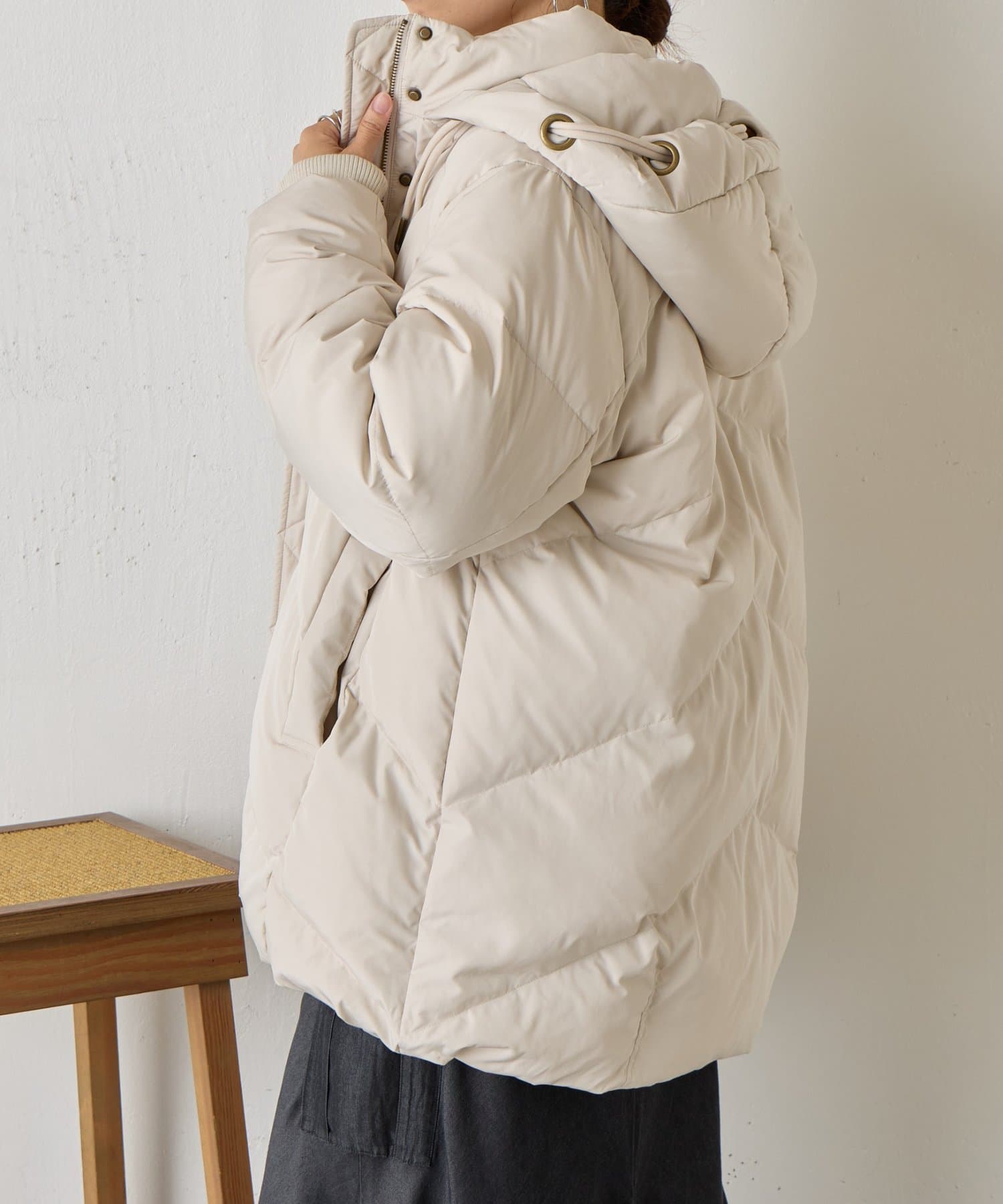 ・フードのハトメデザインがスタイリッシュなスタイリッシュなフーデッドダウンジャケット。