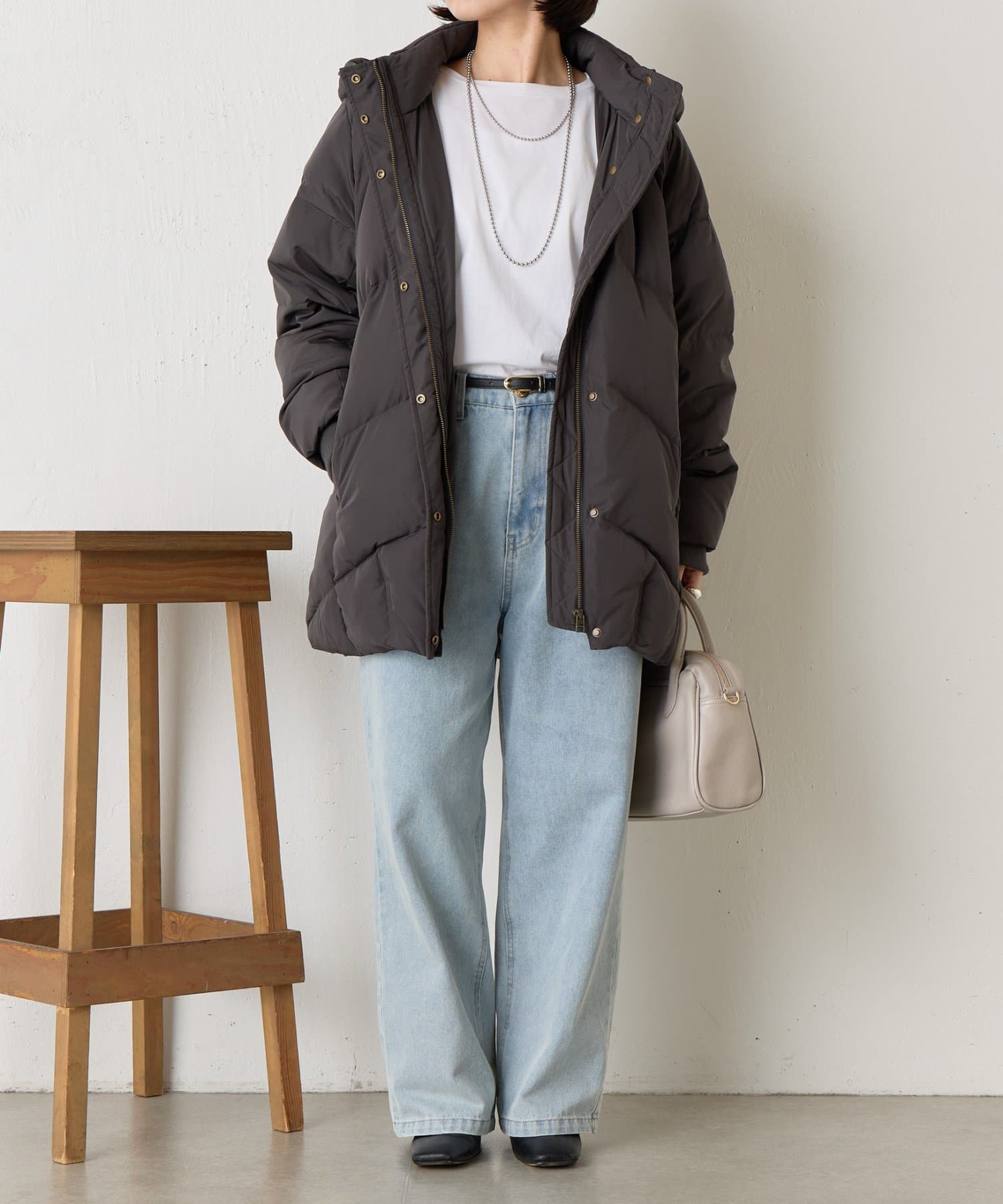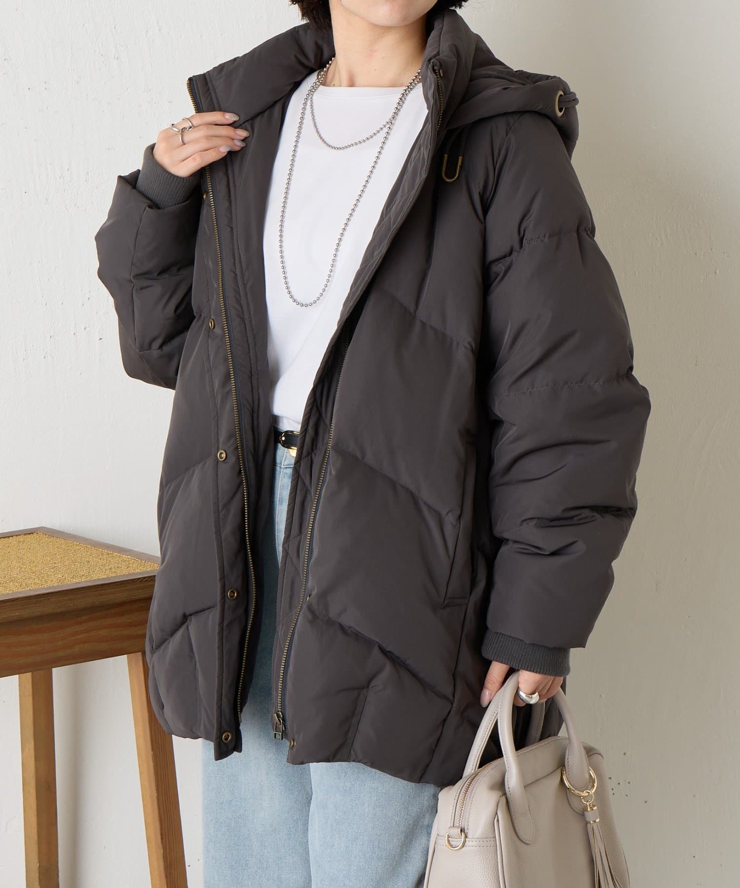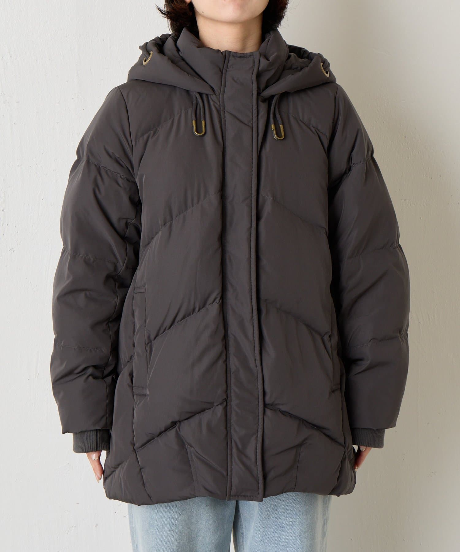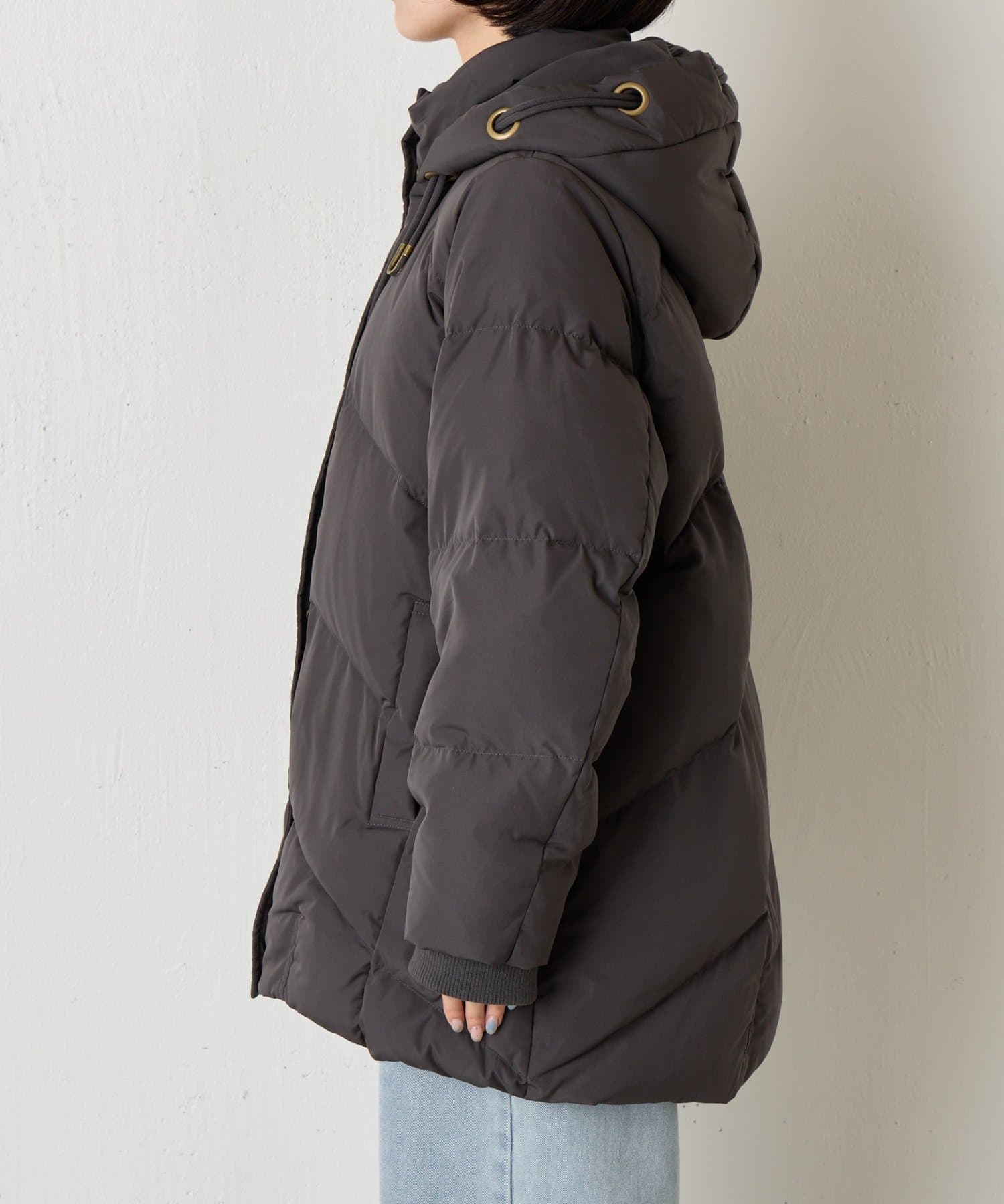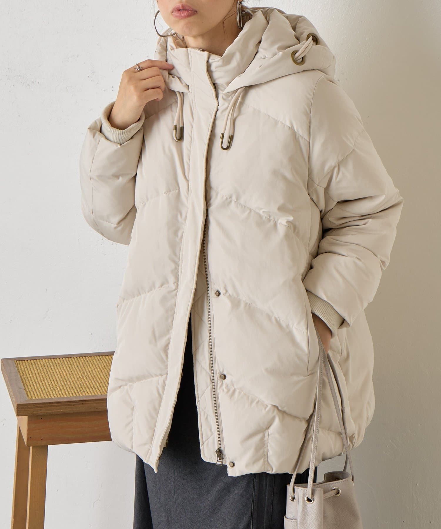 ・フードのハトメデザインがスタイリッシュなスタイリッシュなフーデッドダウンジャケット。