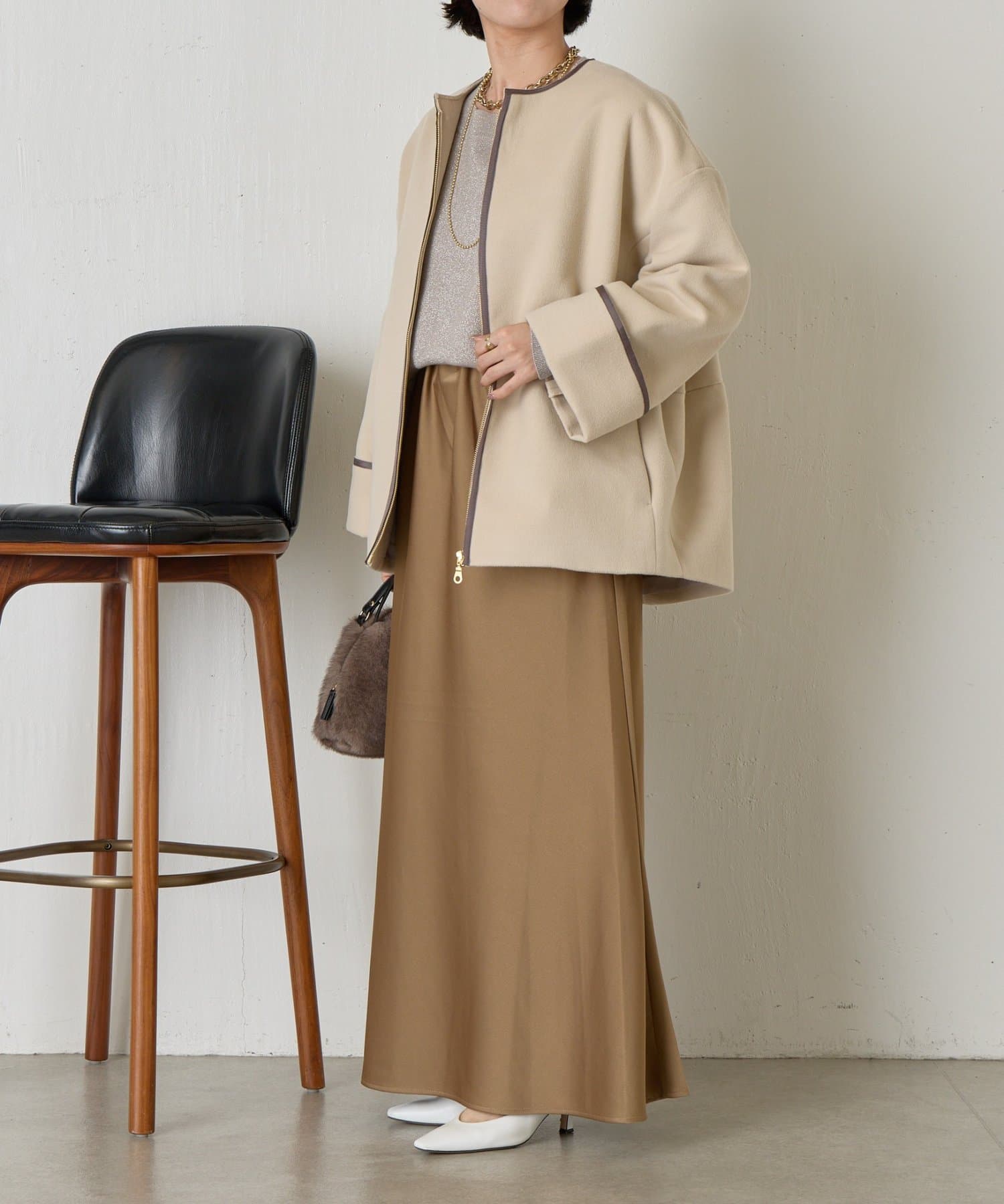 ・丸みのある立体的なシルエットが女性らしいコクーンコート。