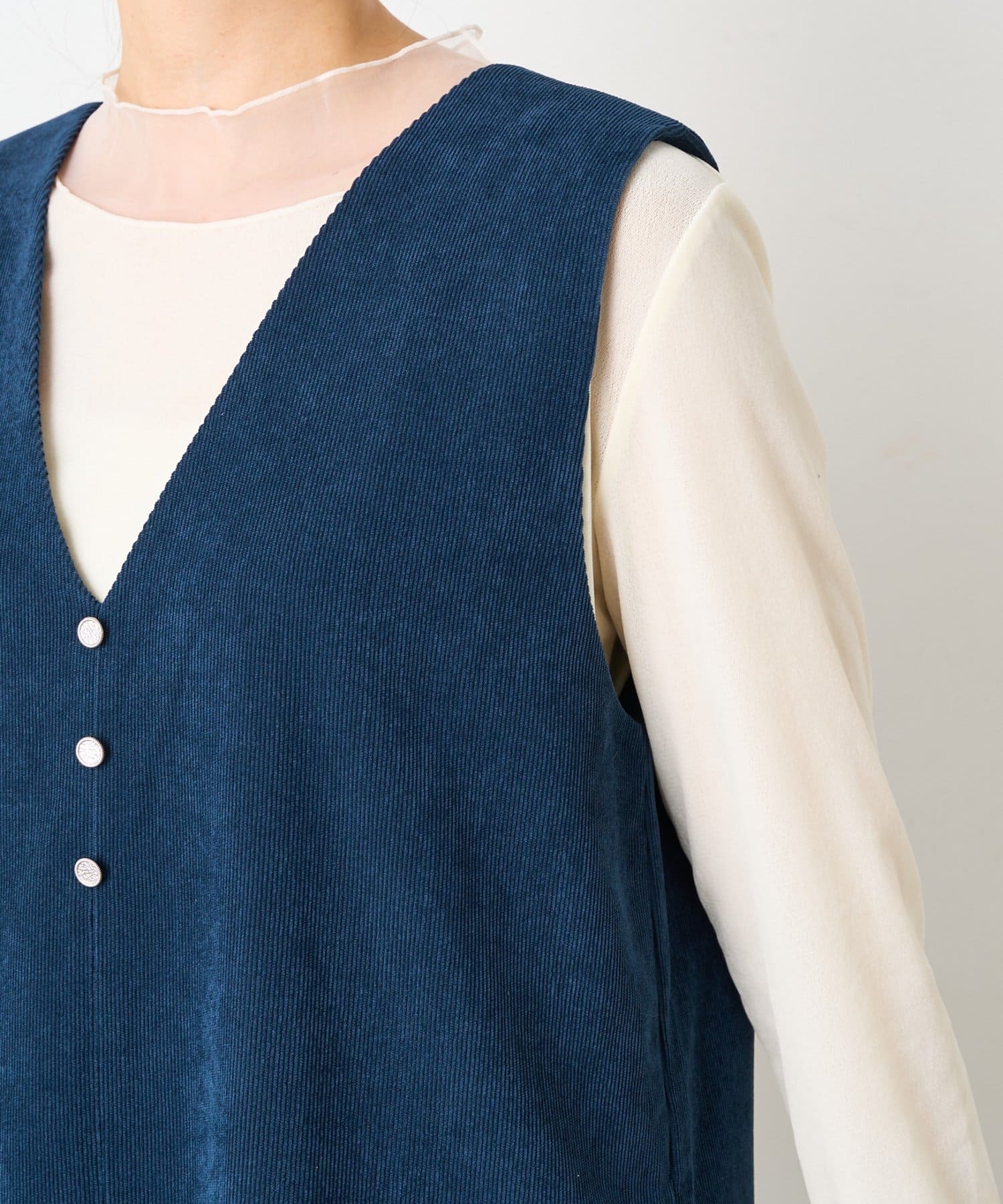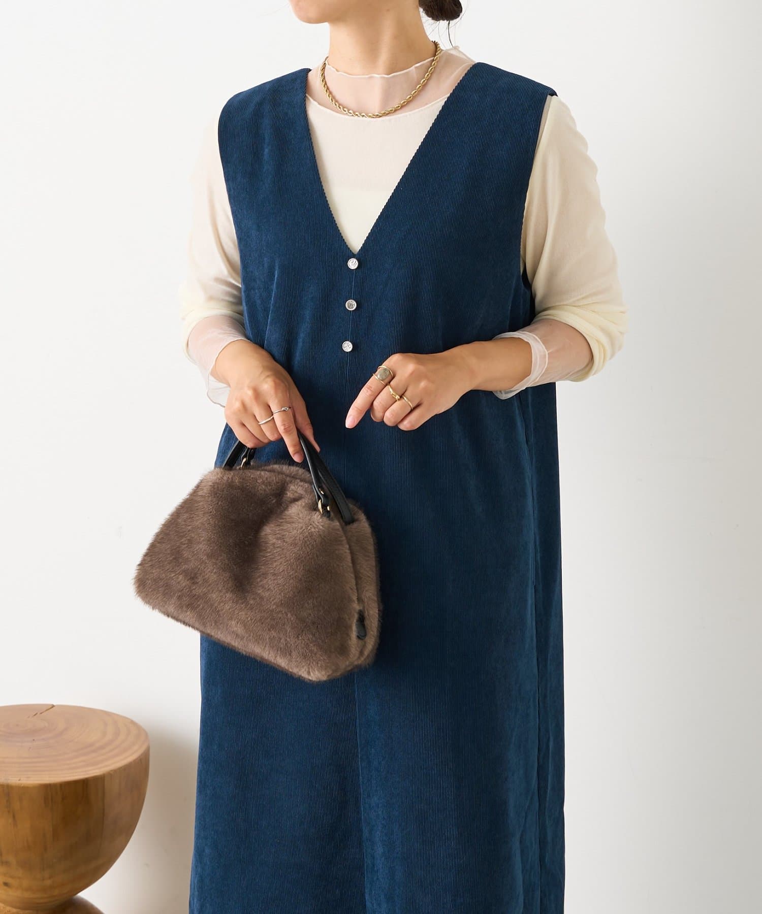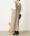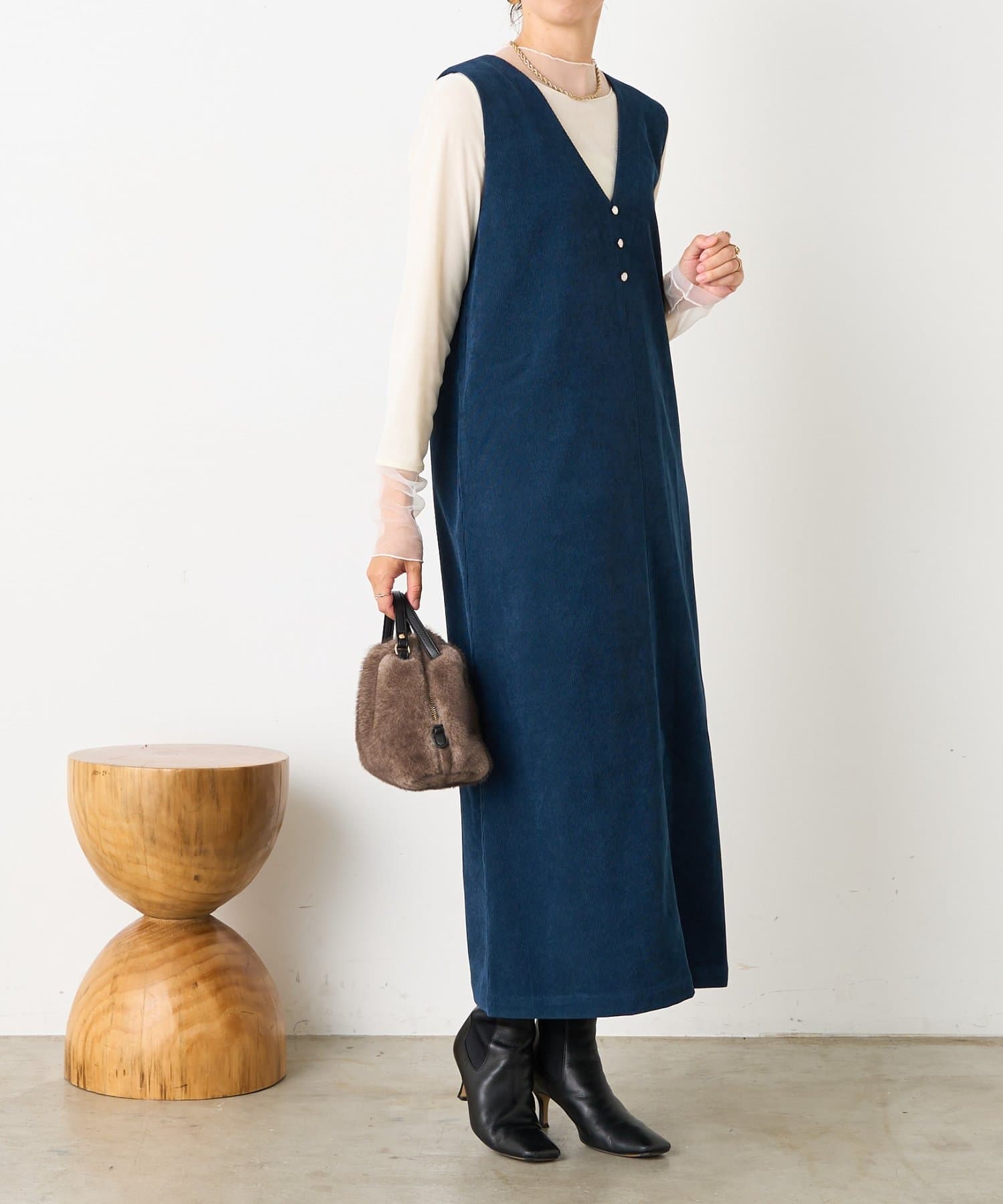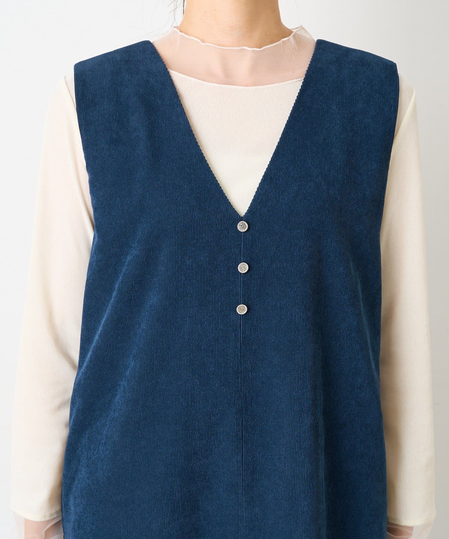 ・胸元にボタンを施した、オトナ可愛いジャンパースカート。