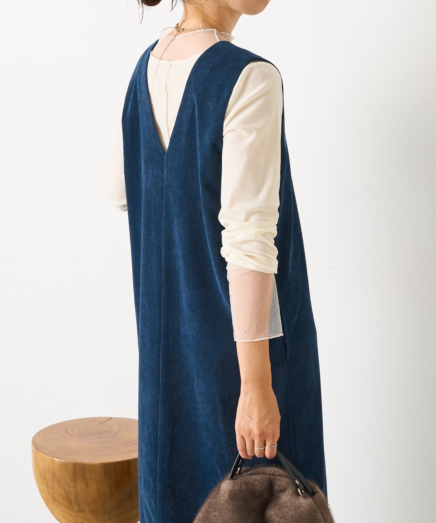 ・すっきりとしたVネック開きなので、様々なトップスと好相性。