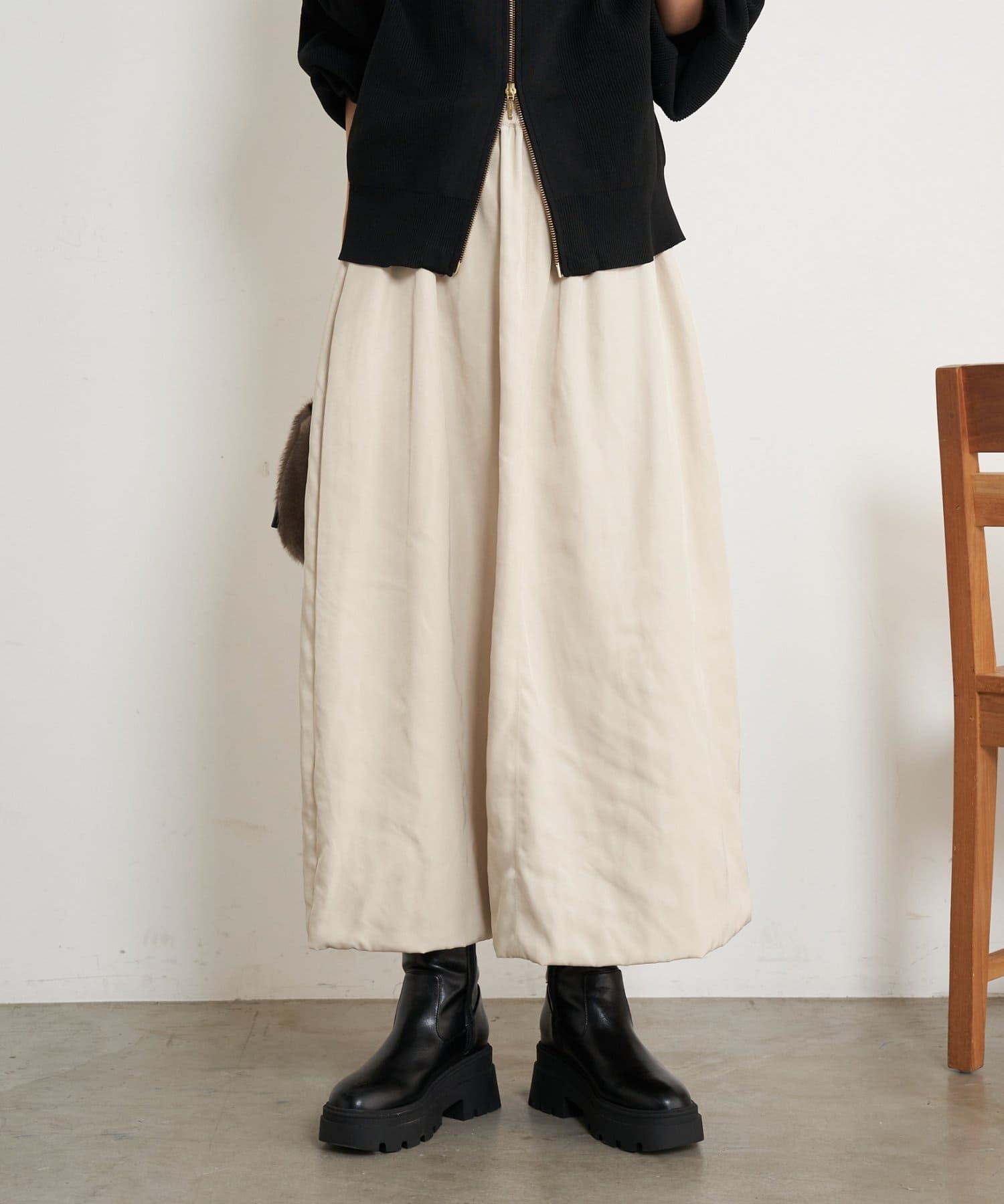 ・コーデの主役になるシルエットで、シンプルなトップスに合わせるだけでもお洒落見え。
