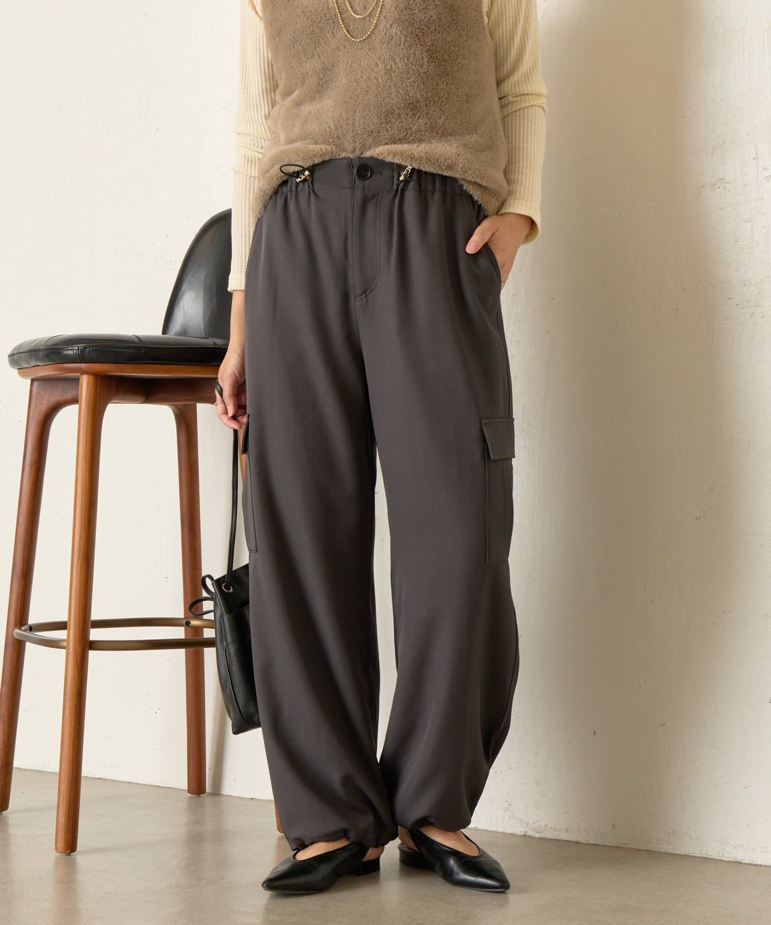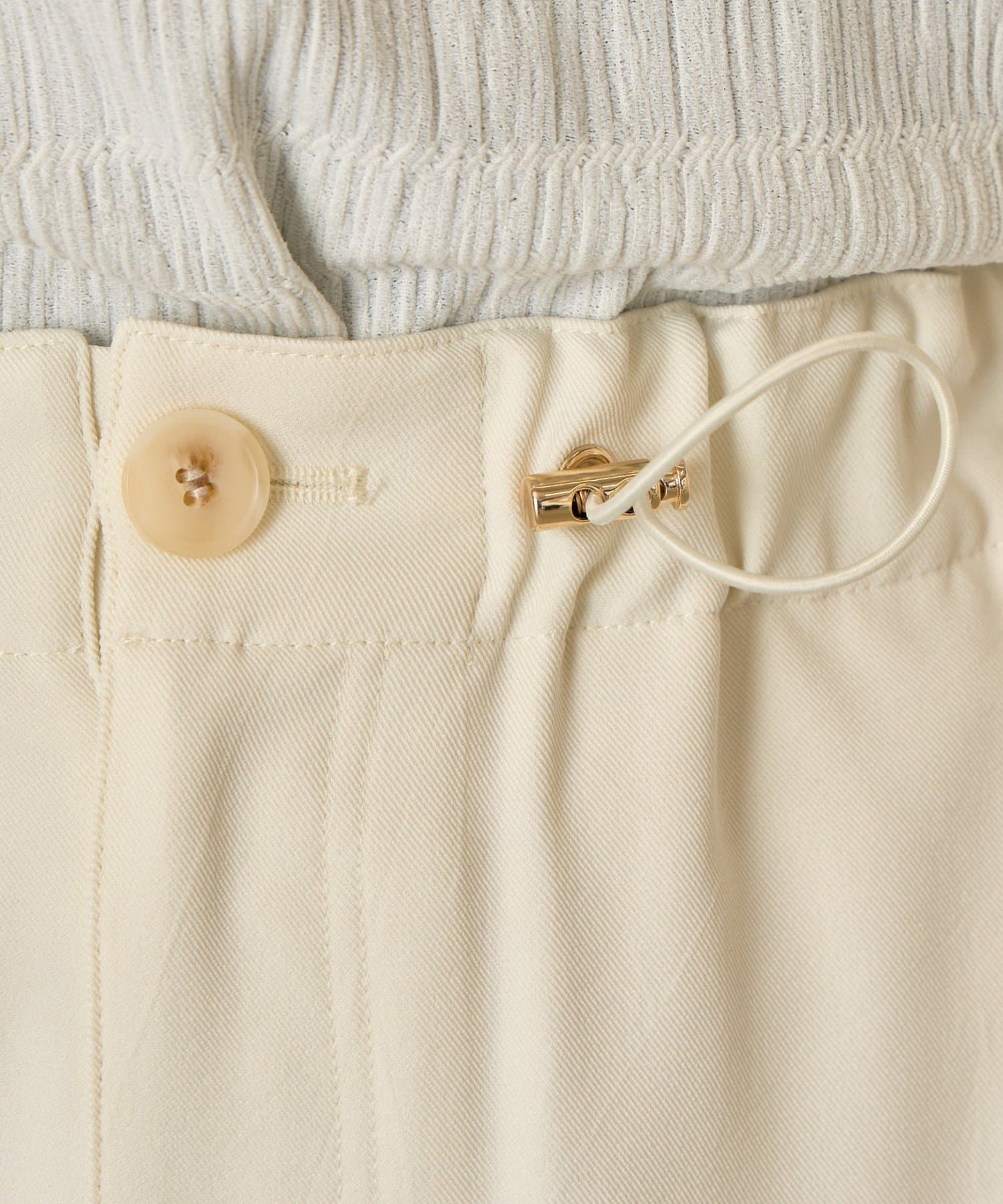 ・裾の紐を緩めればワイドパンツにも変化し、シーンに合わせて長くお使いいただけます。