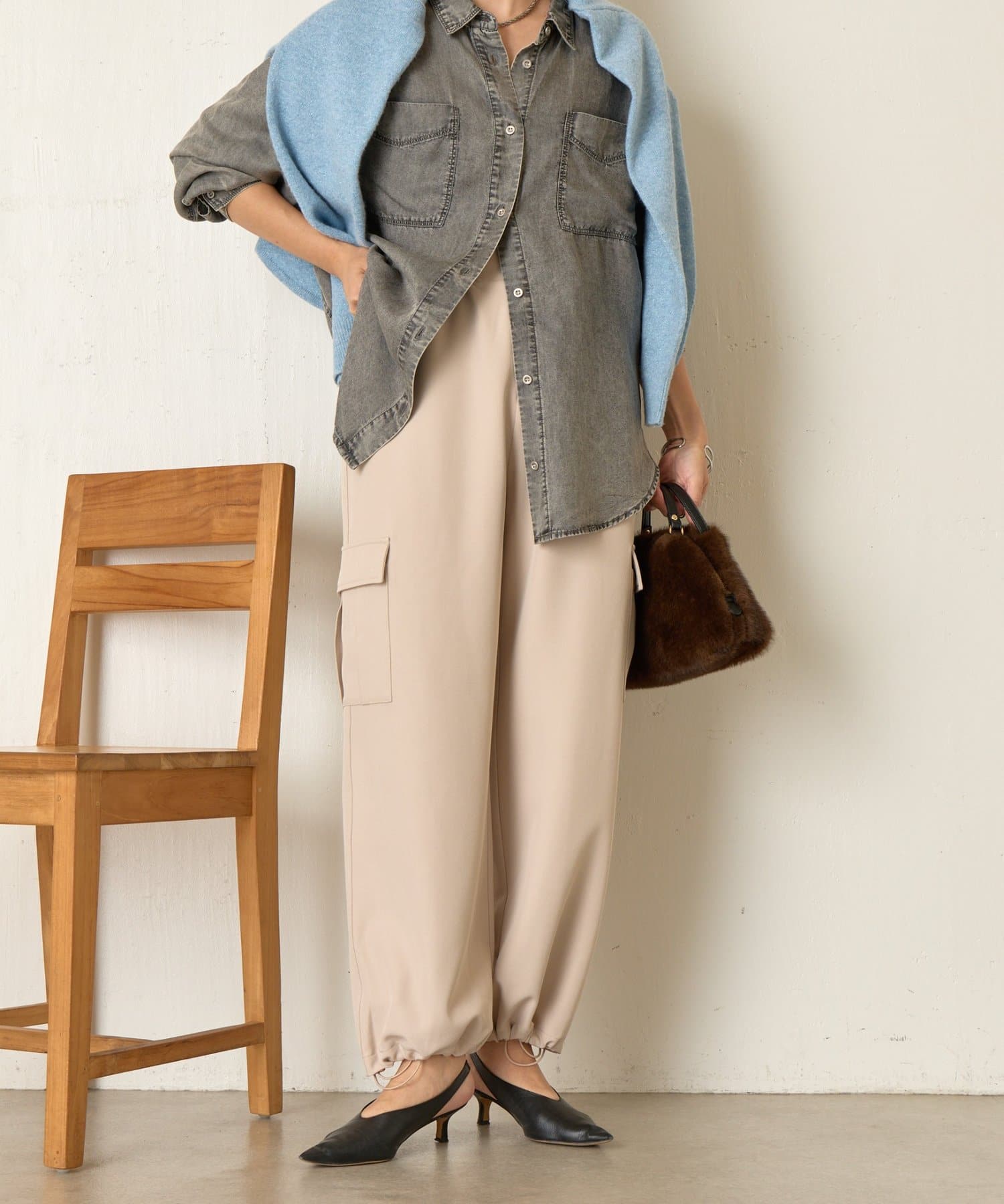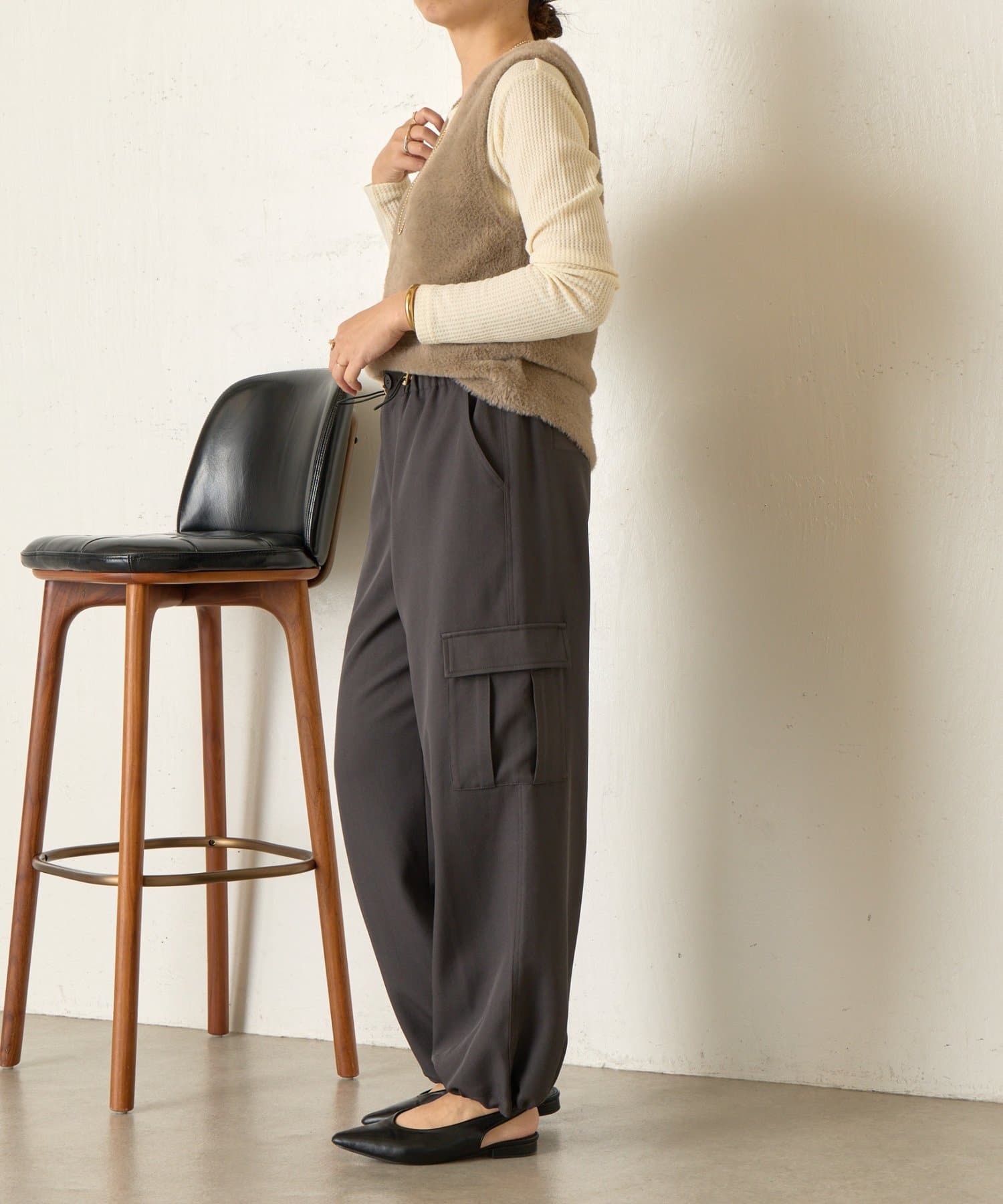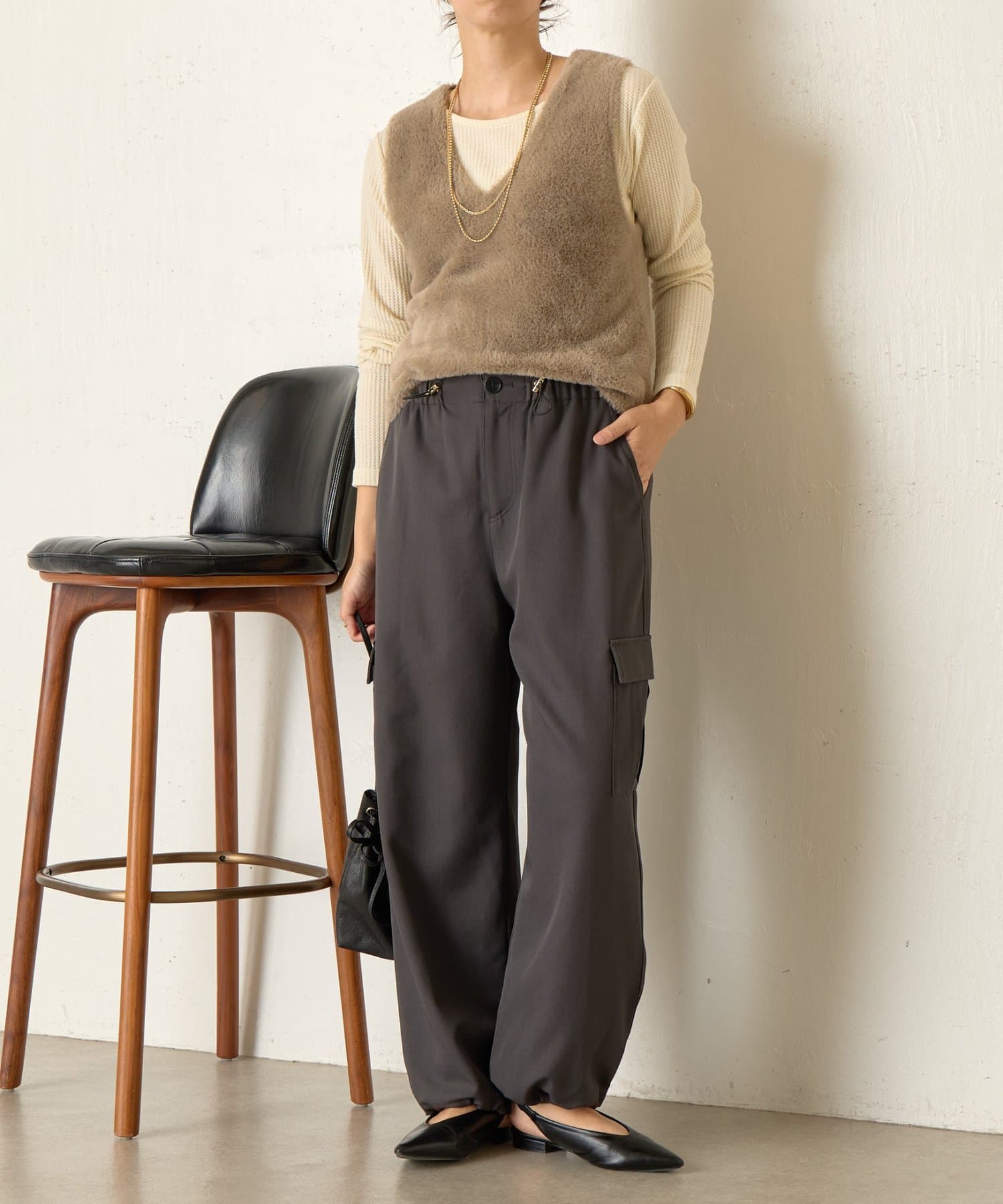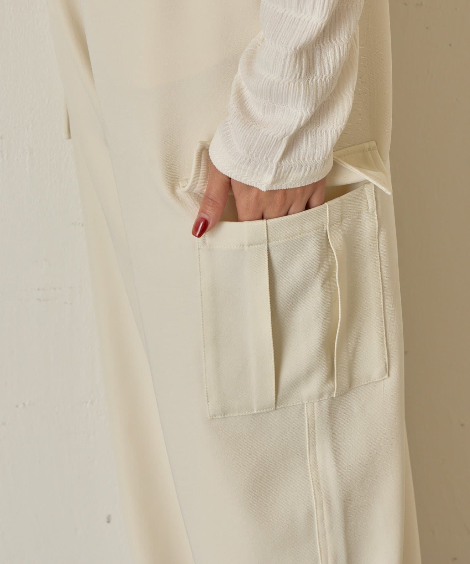 ・両サイドの大きめなポケットが、コーデのアクセントに。