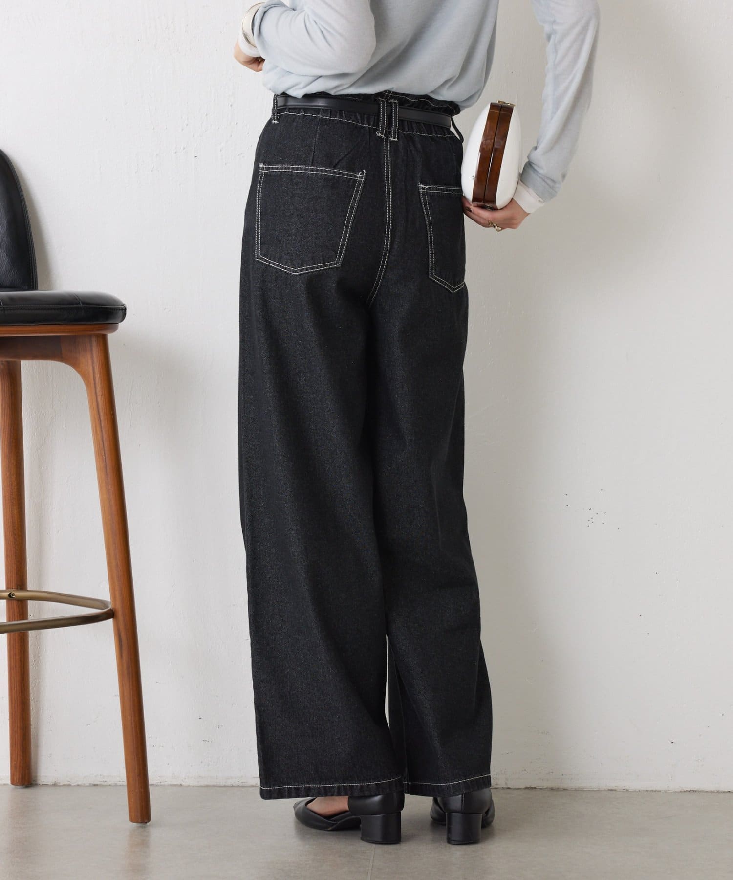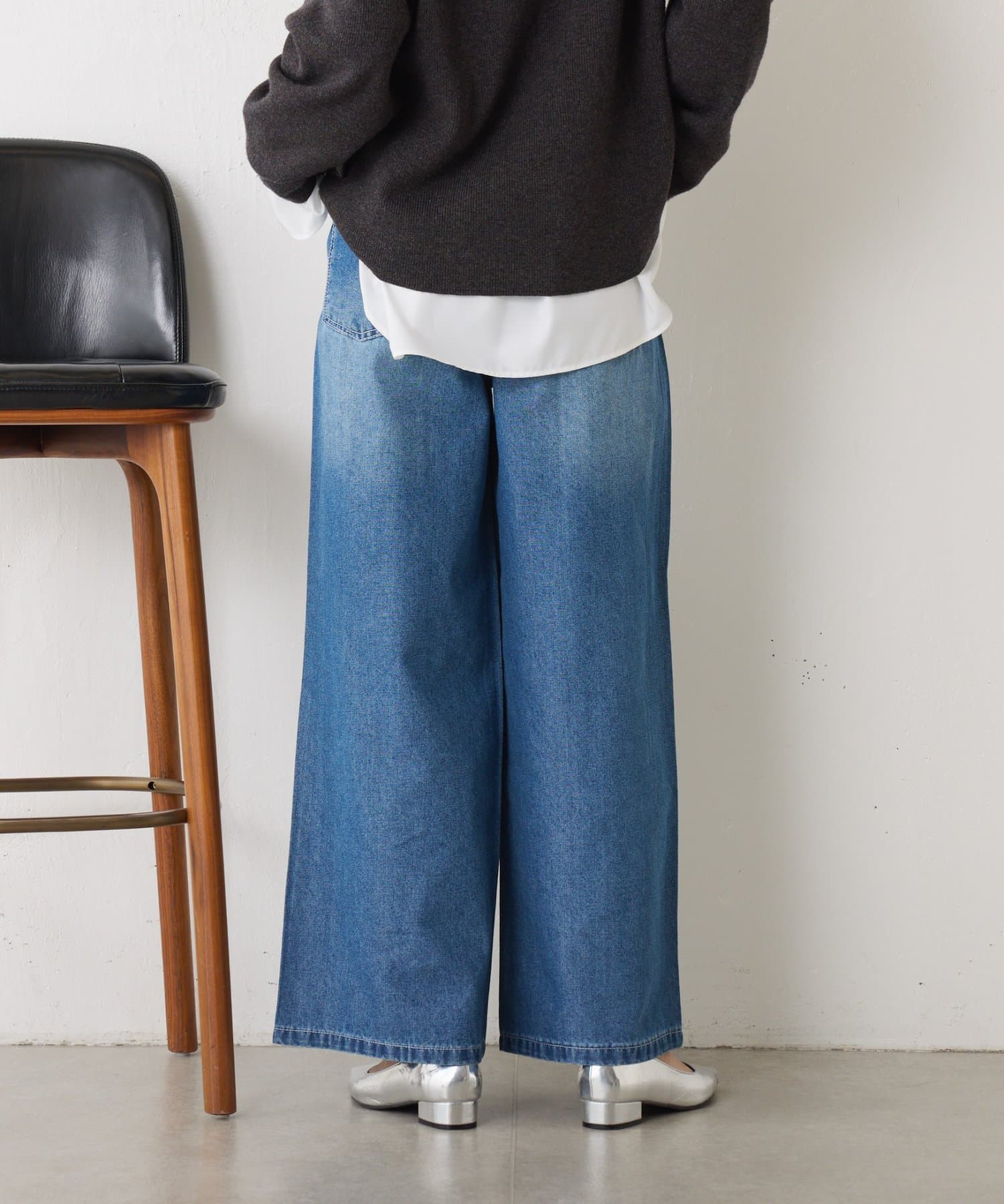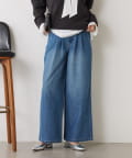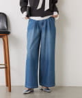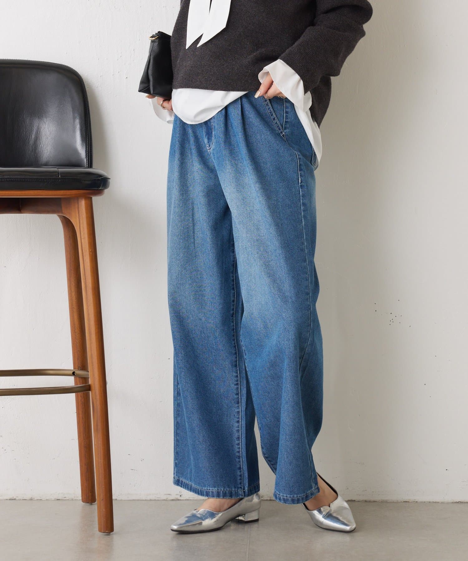 【2タック/やわからデニム】ウエストフリルデニムパンツ