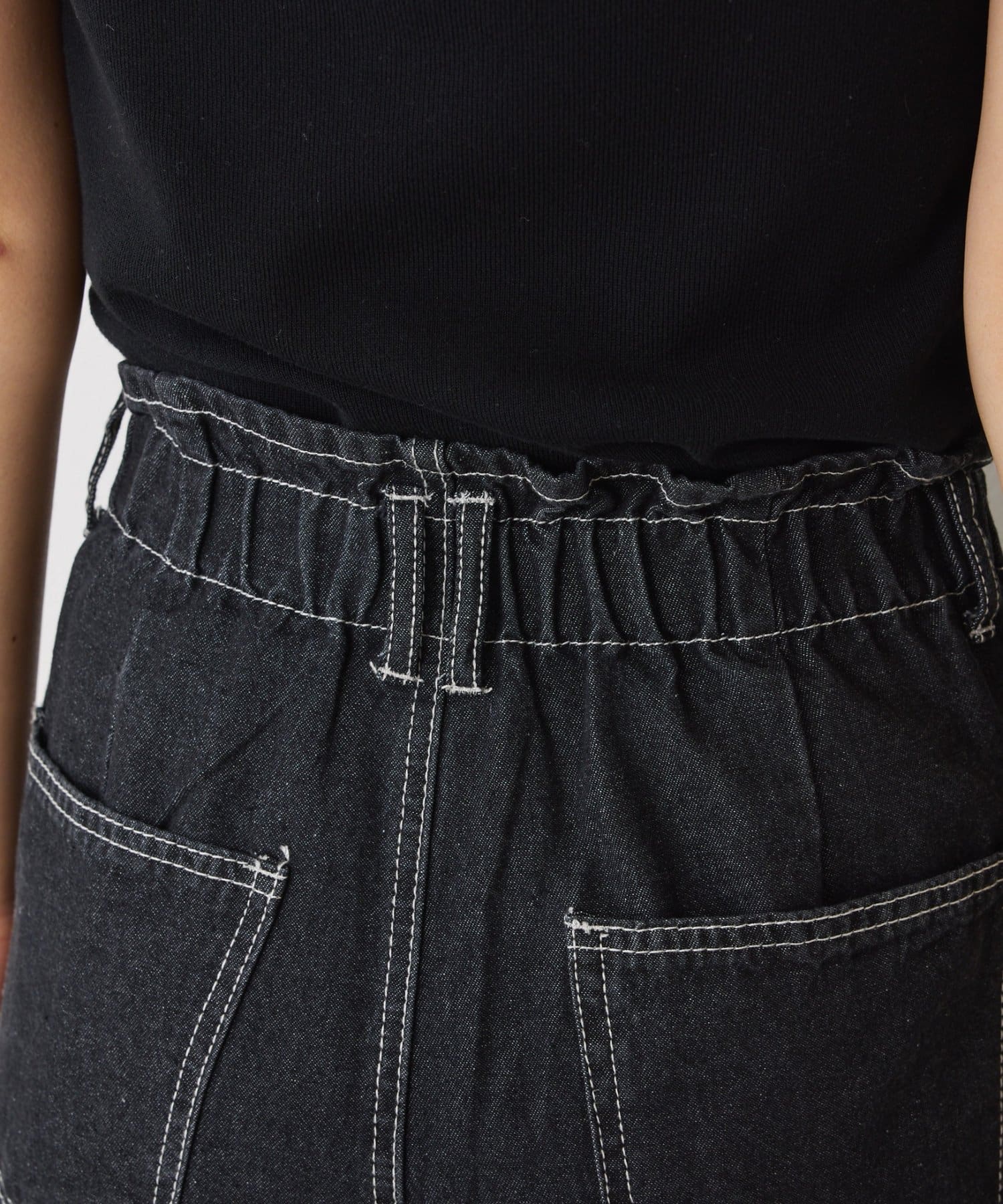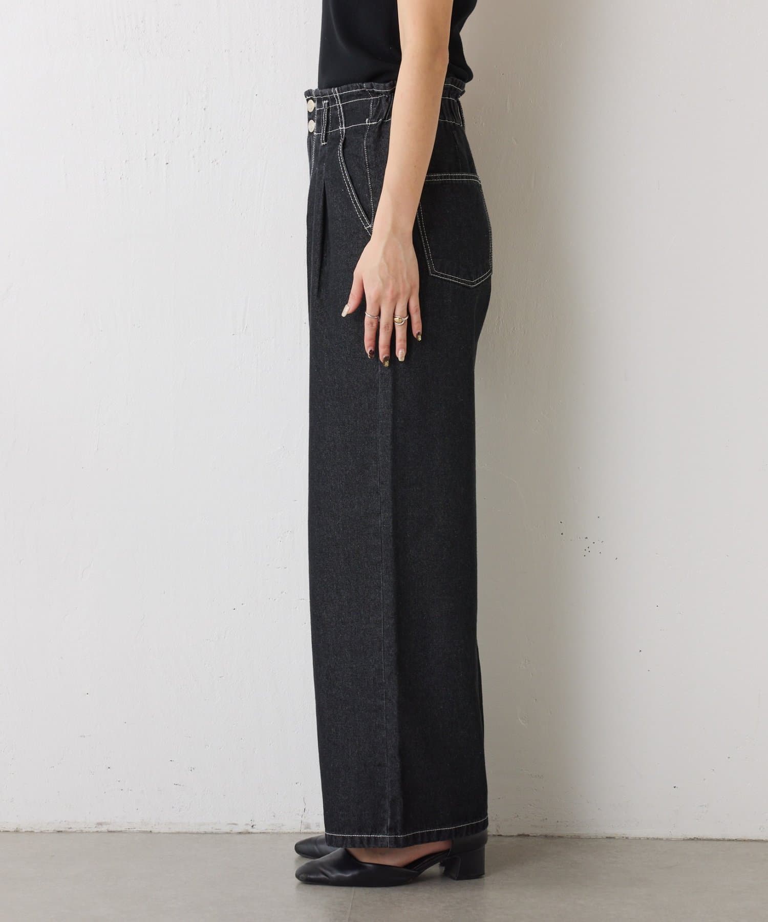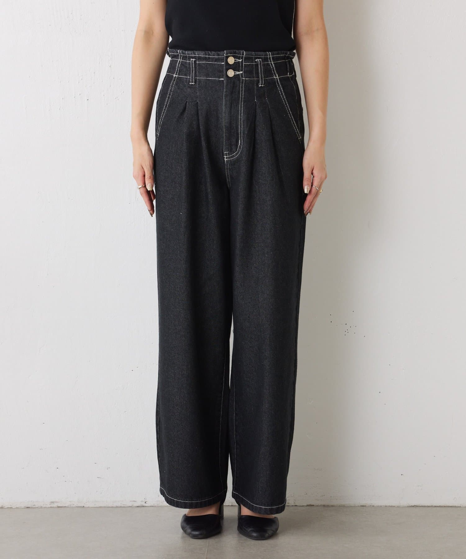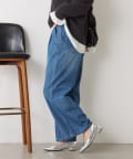 【2タック/やわからデニム】ウエストフリルデニムパンツ