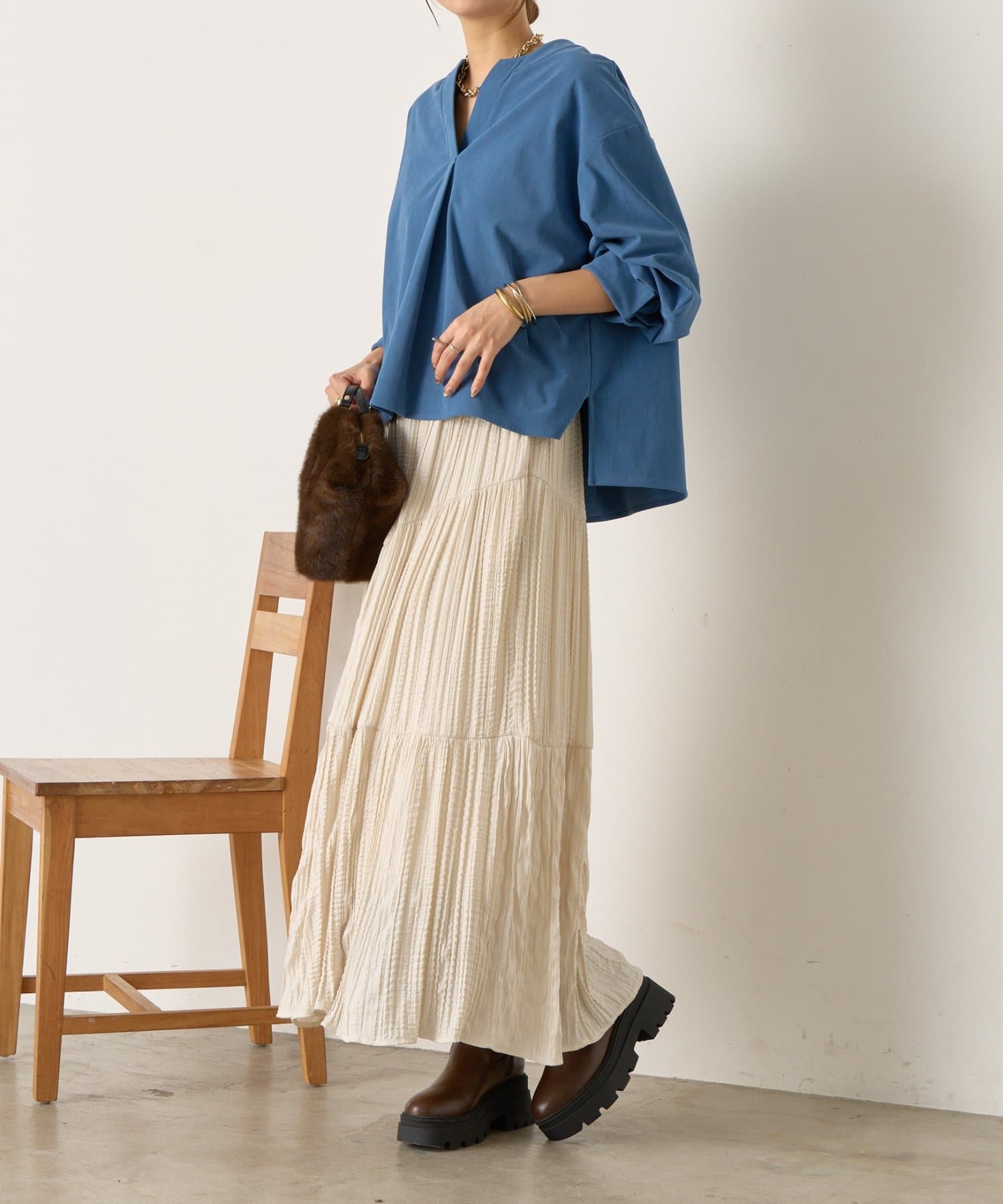 ・デニムを合わせてカジュアルに、きれいめボトムと合わせてオフィススタイルにもおすすめ。シーズンレスで使える万能トップスです。