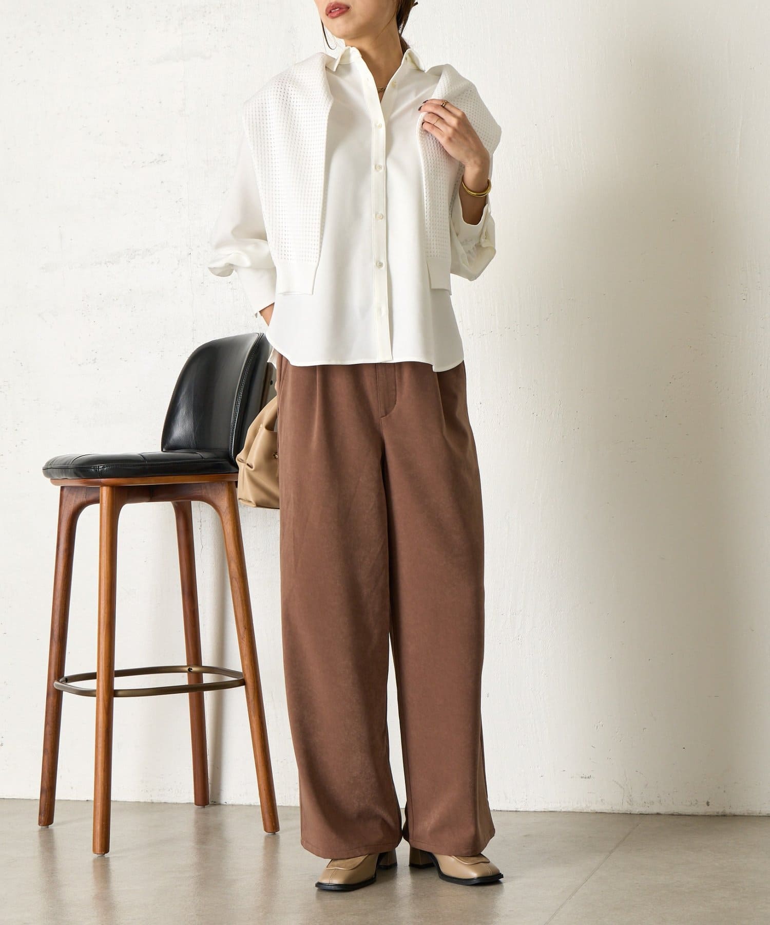 ・キレイめにもカジュアルにも合わせやすく、毎日のスタイリングに取り入れやすいブラウスです。
