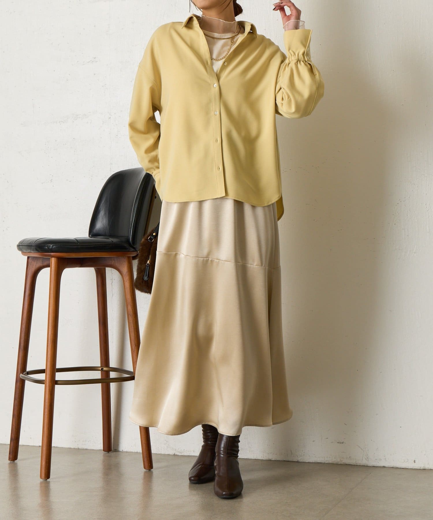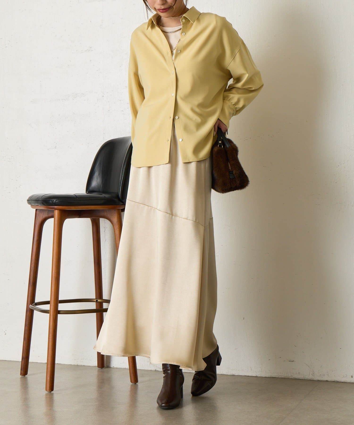 ・滑らかな生地とドロップショルダーで、リラックス感のある女性らしい着こなしに。